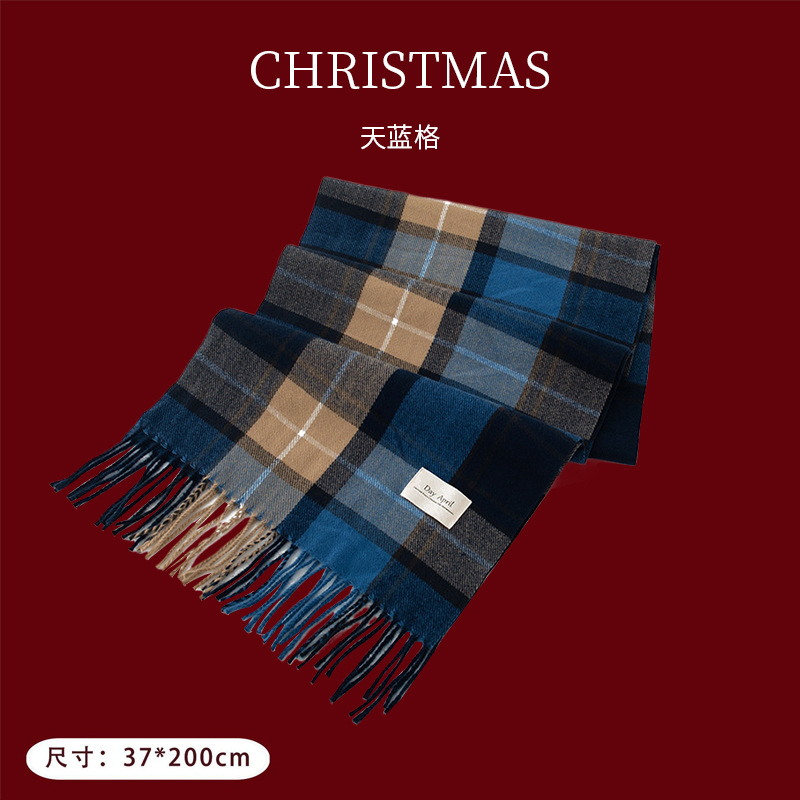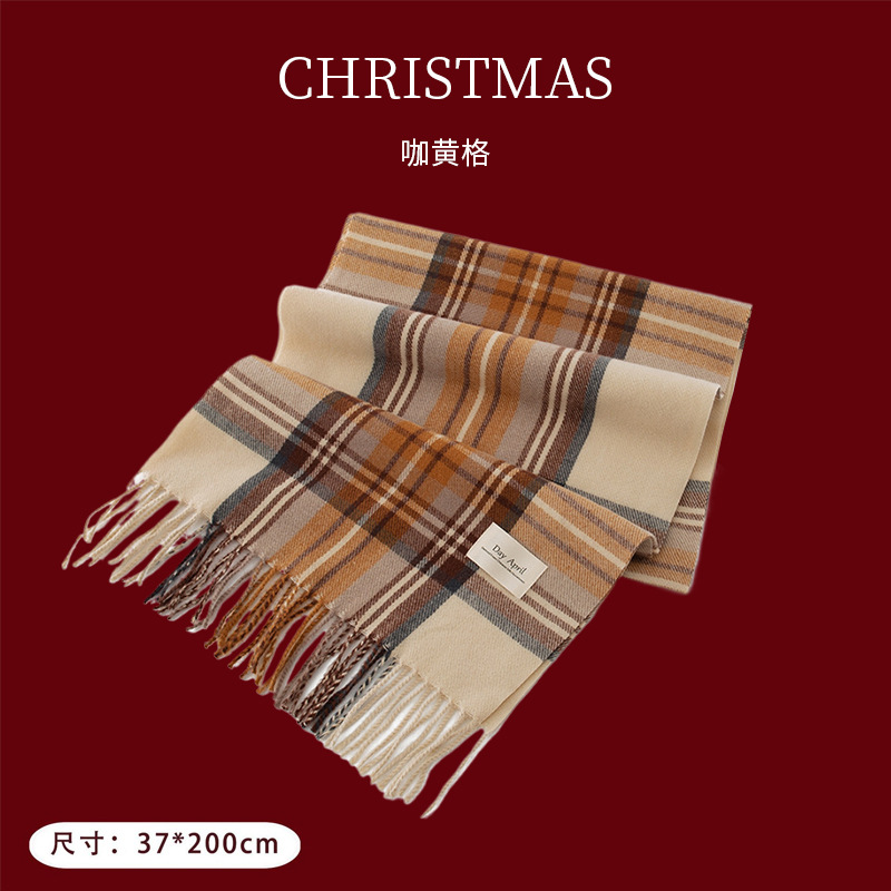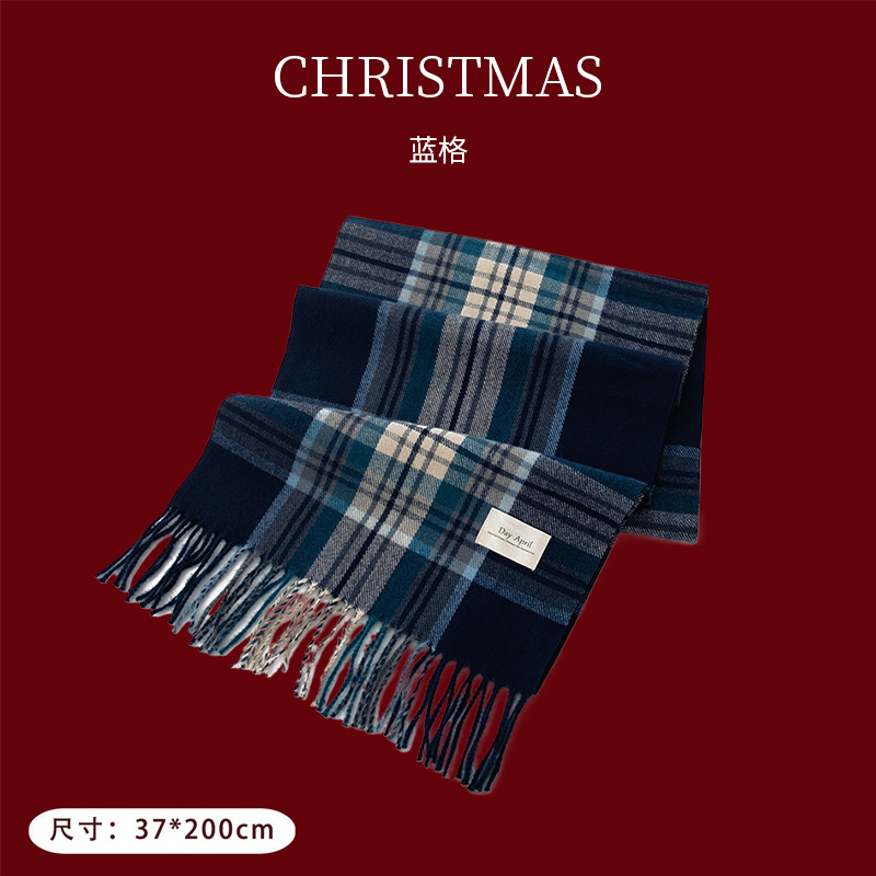 圣诞节安可拉红色格子围巾冬季氛围感百搭女羊绒手感围脖保暖披肩