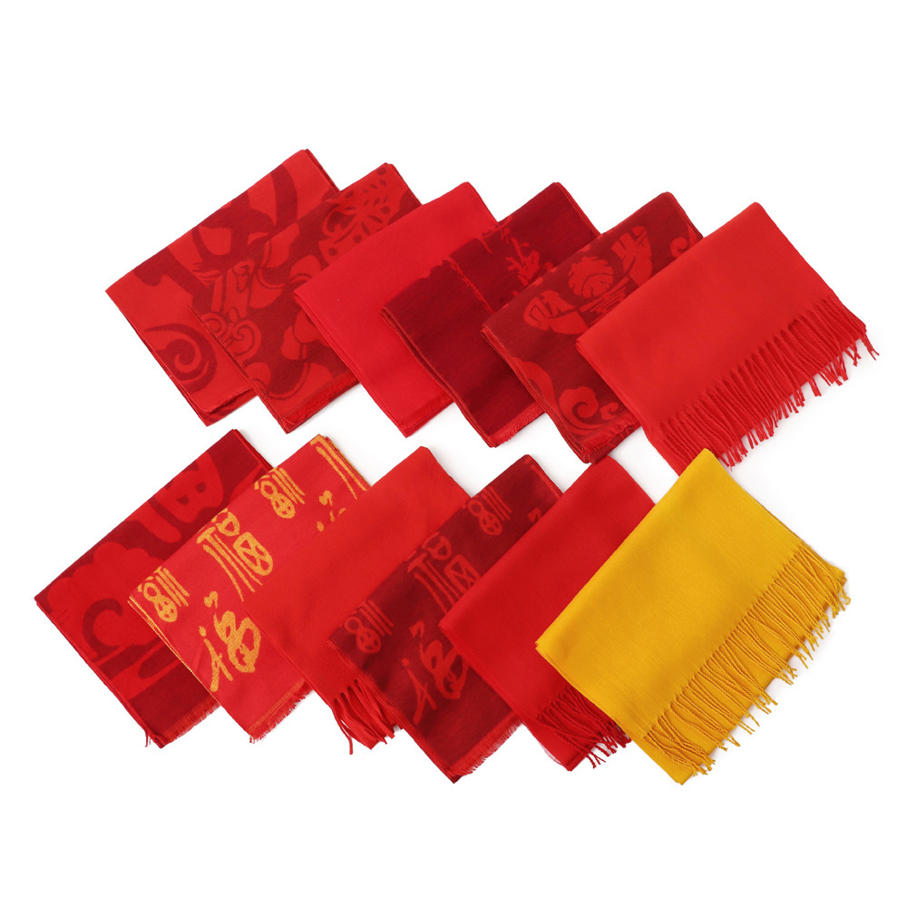 年会红围巾作定刺绣logo围巾印花开业活动礼品同学聚会纯色披肩