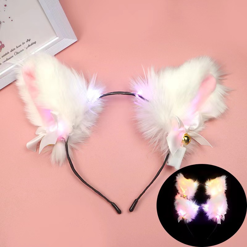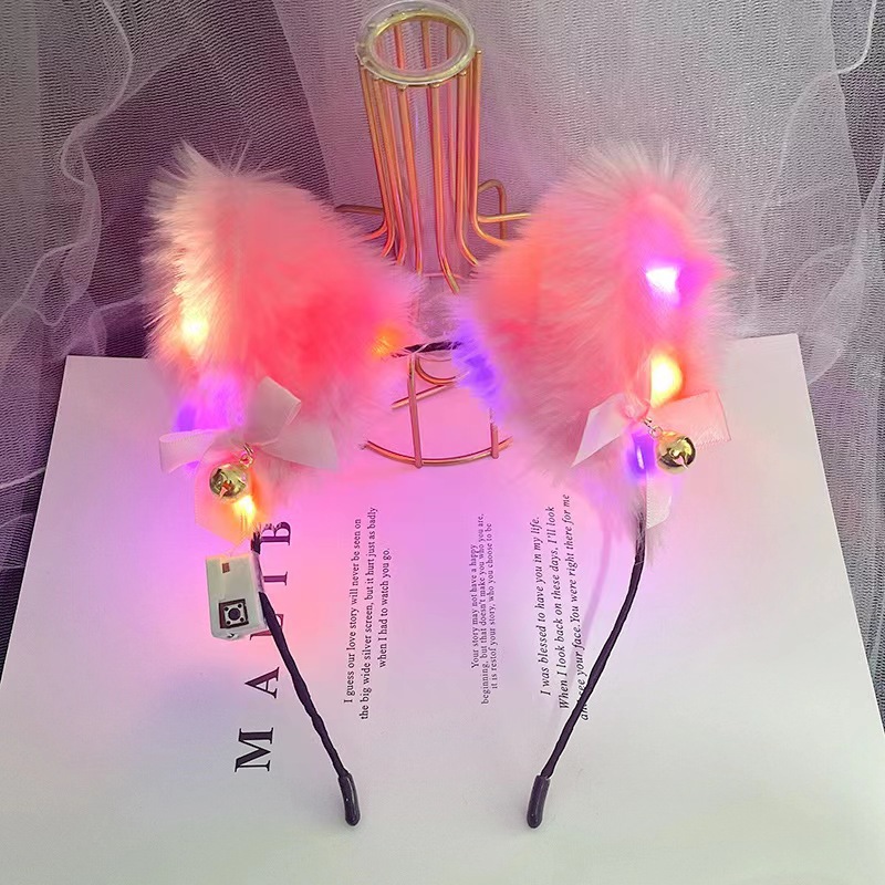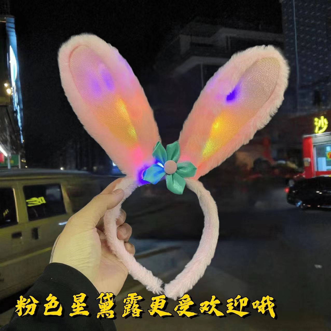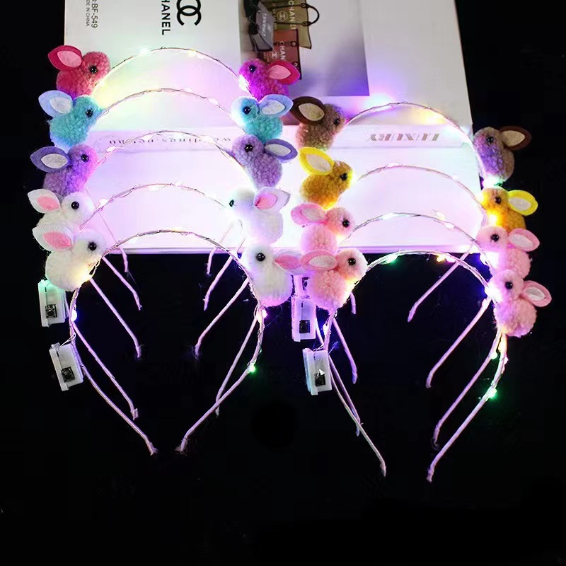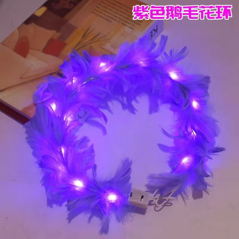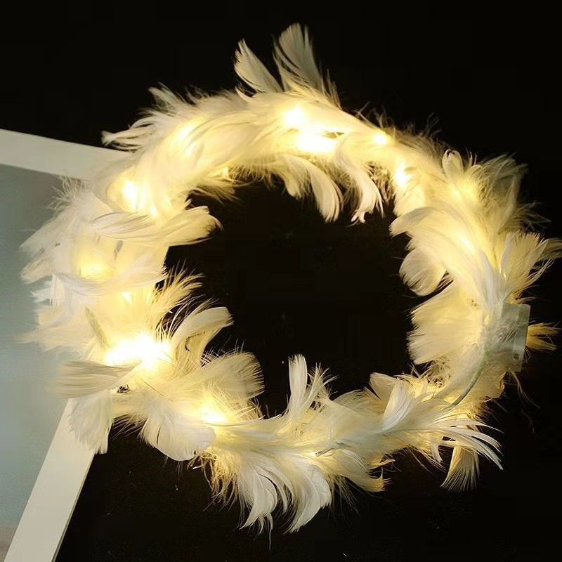 发光发箍女式羽毛仙女风发箍可爱发饰天使花环头箍带灯毛绒兔耳朵