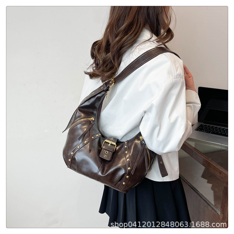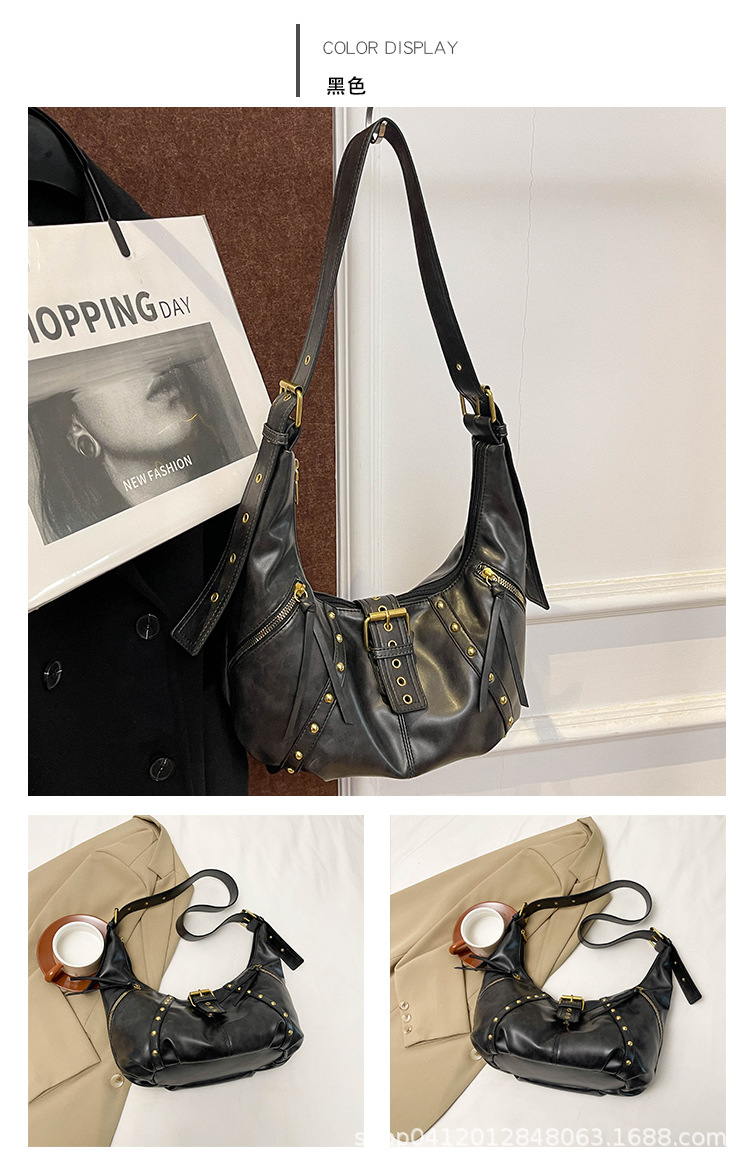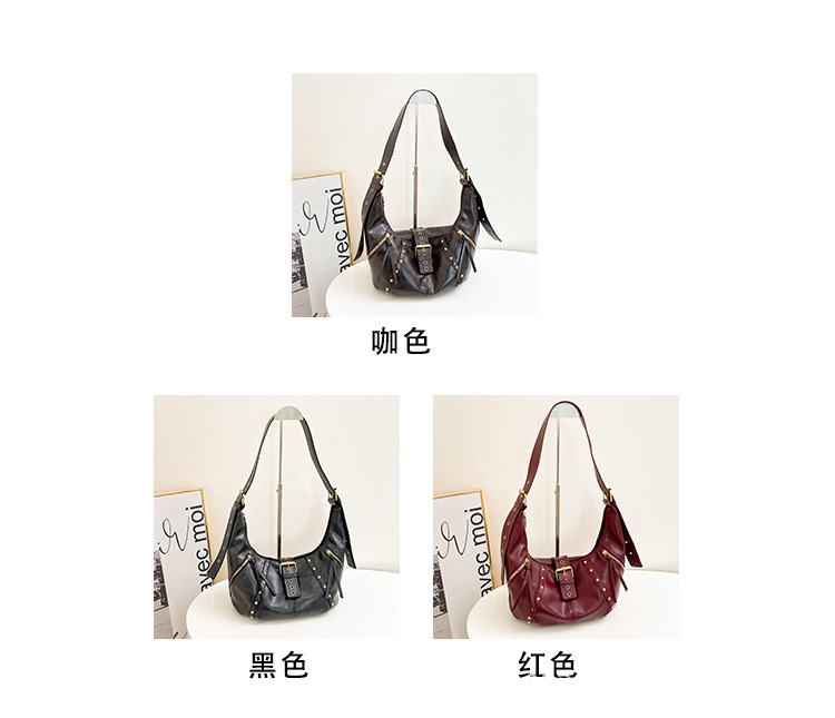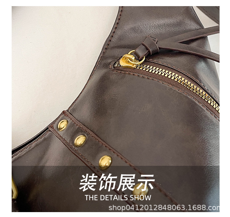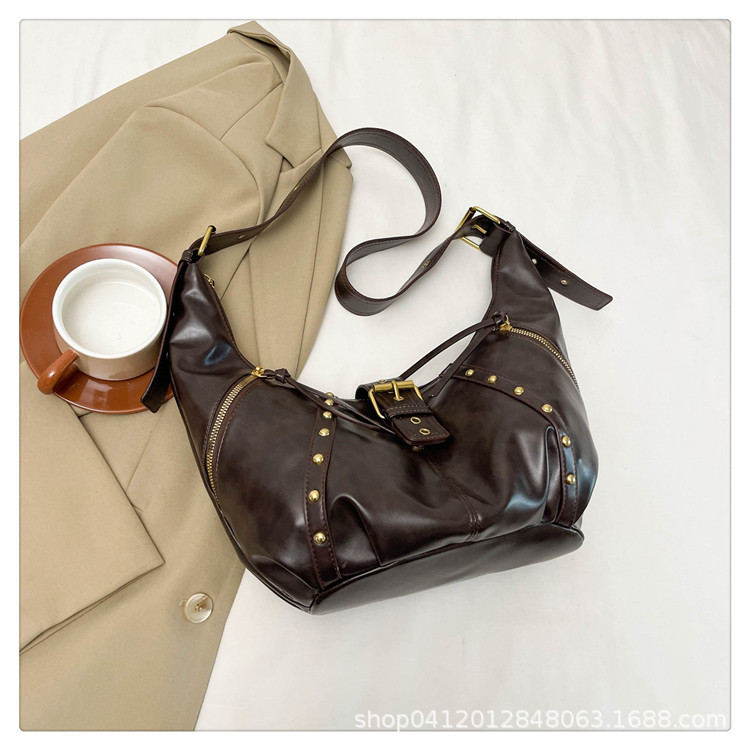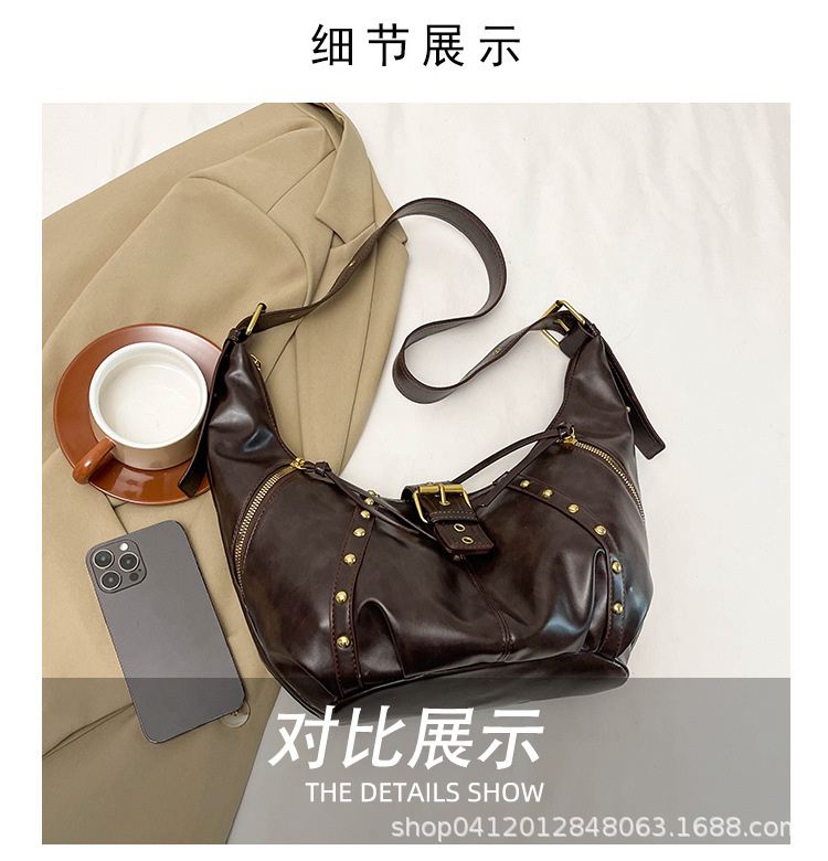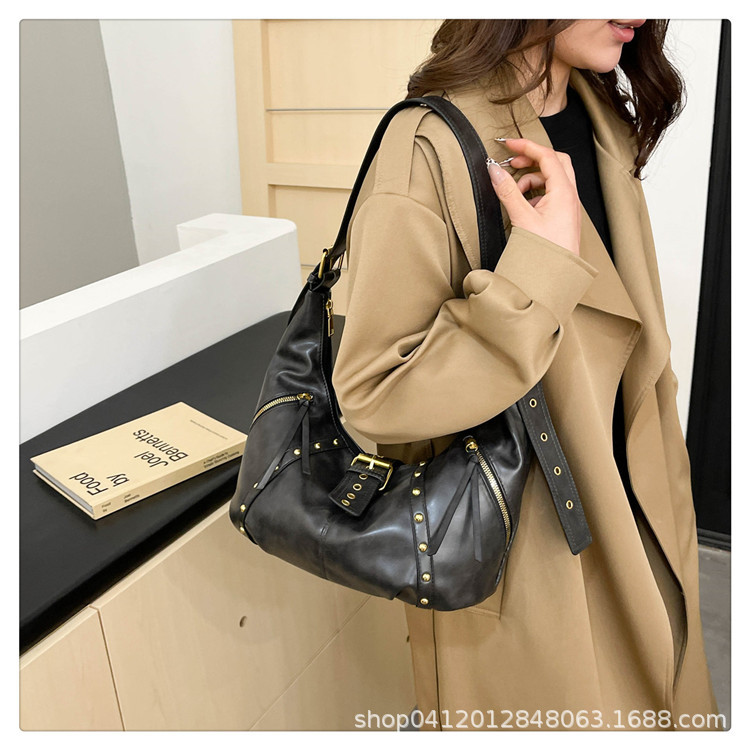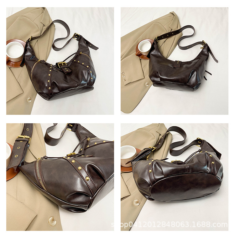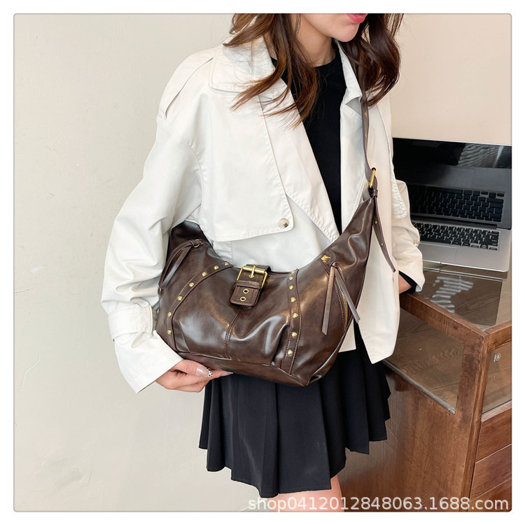 2024新款小众复古单肩包铆钉通勤斜挎包