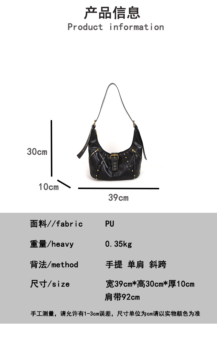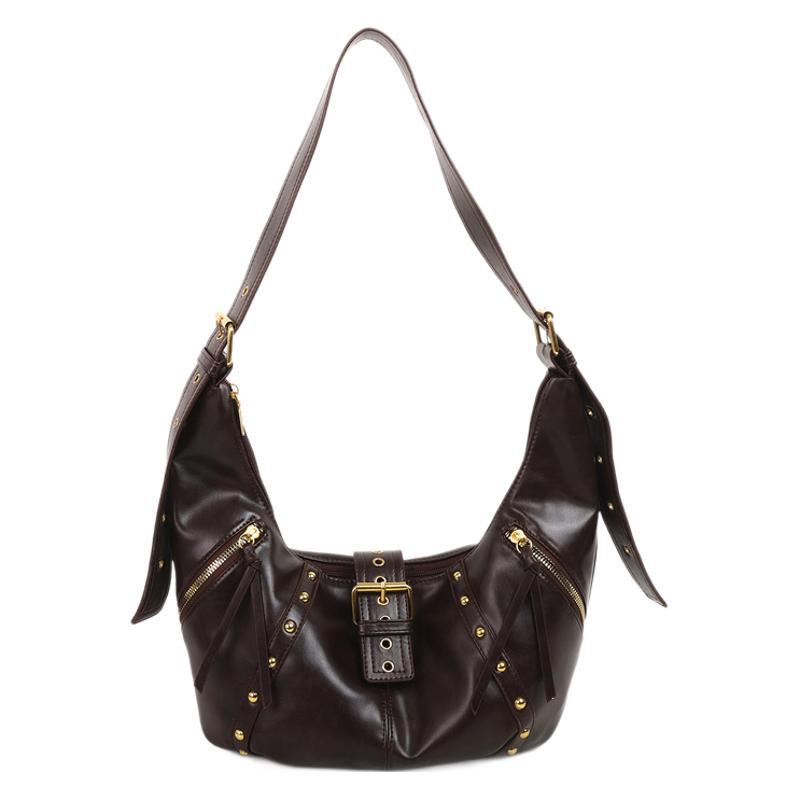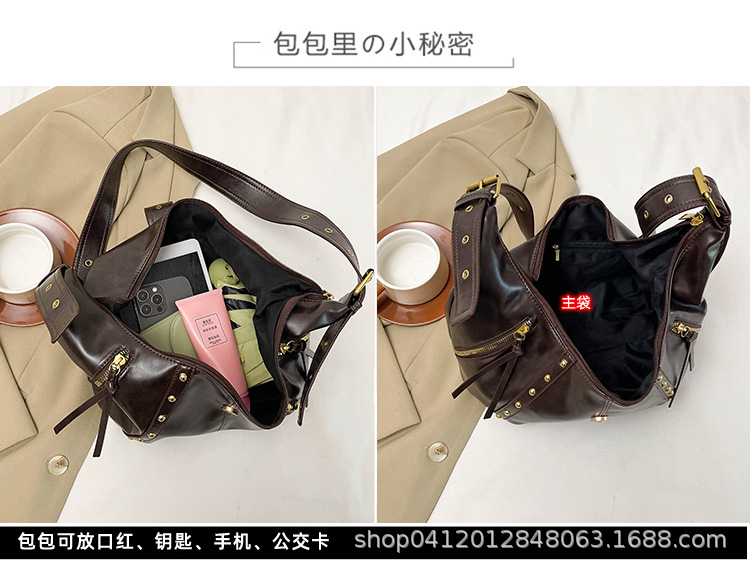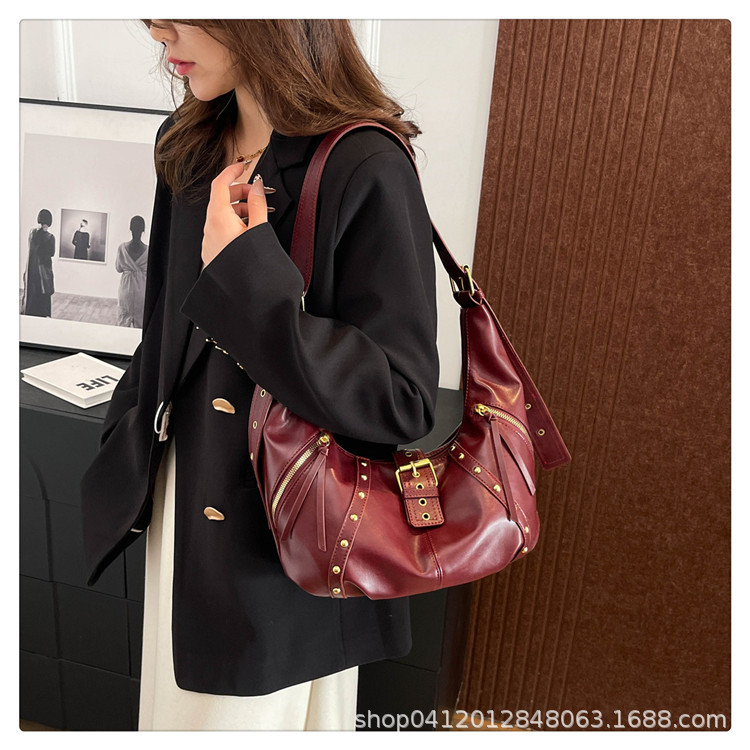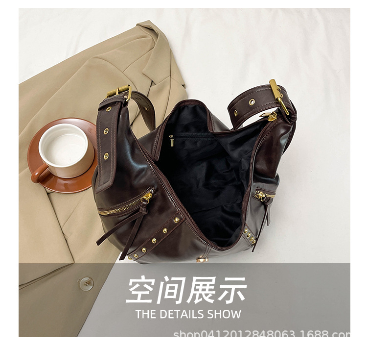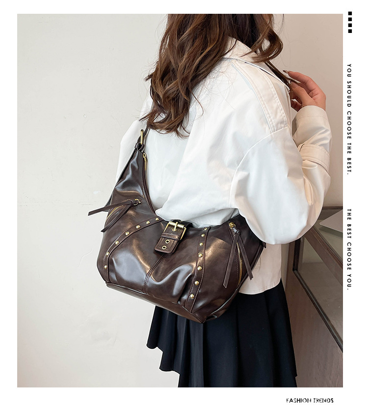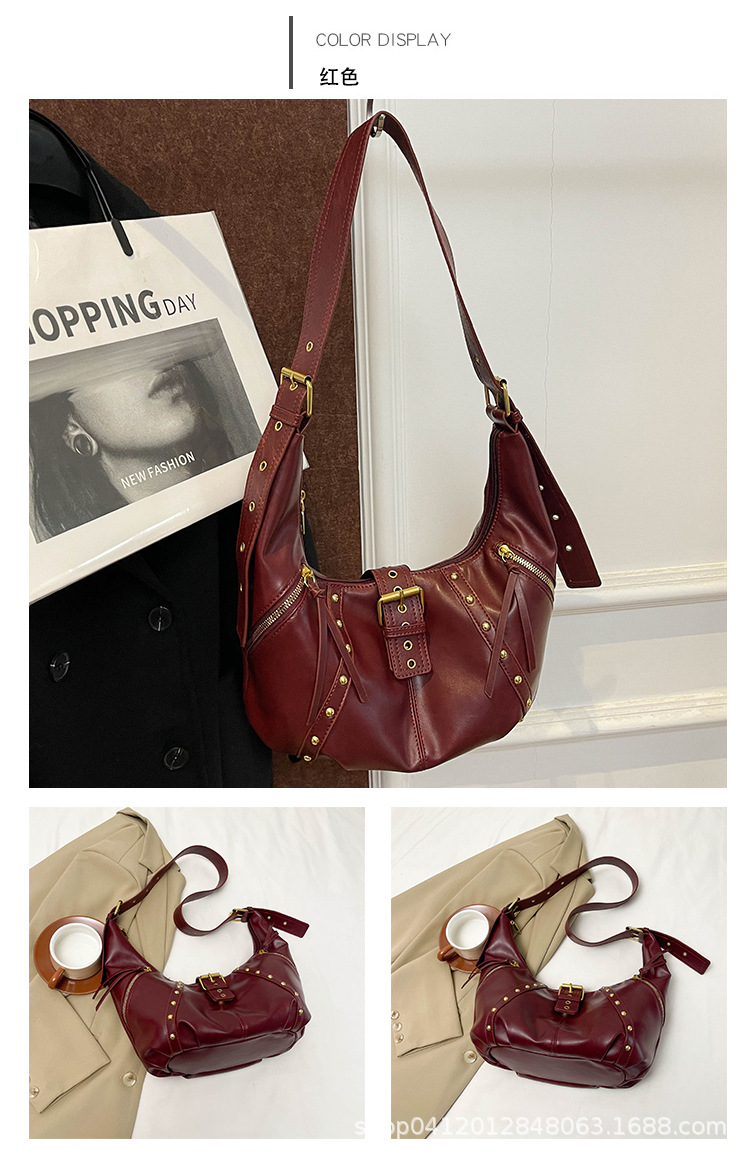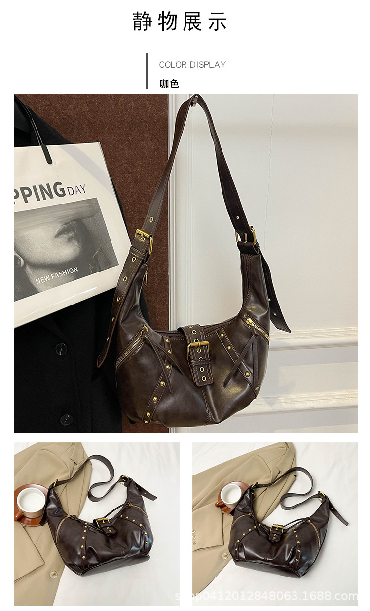 2024新款小众复古单肩包铆钉通勤斜挎包