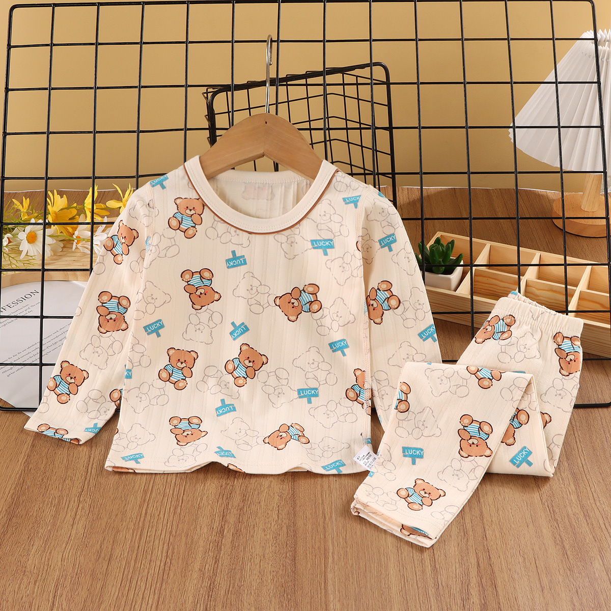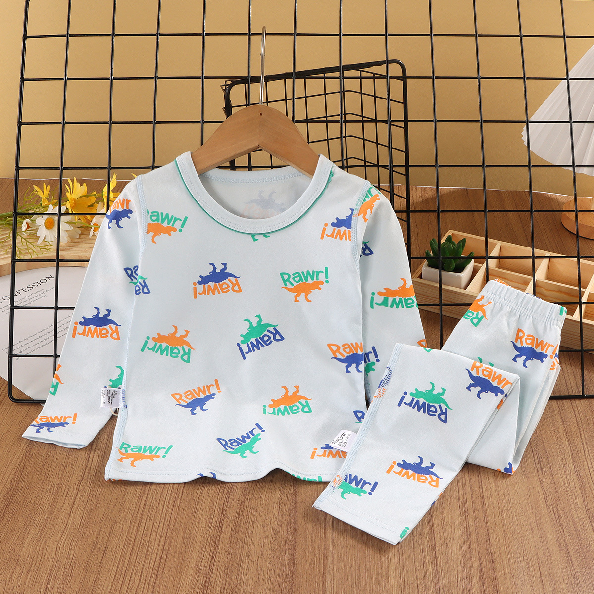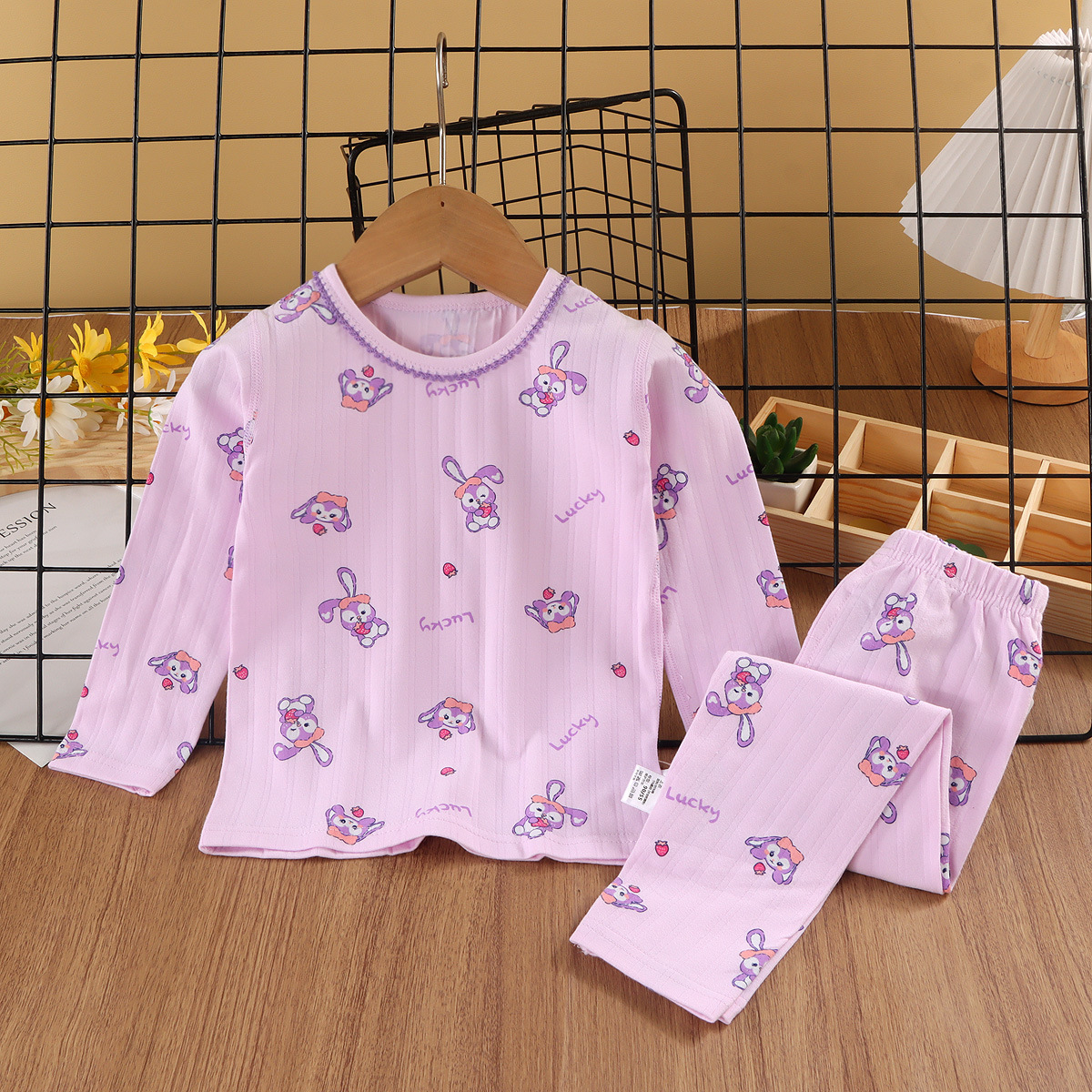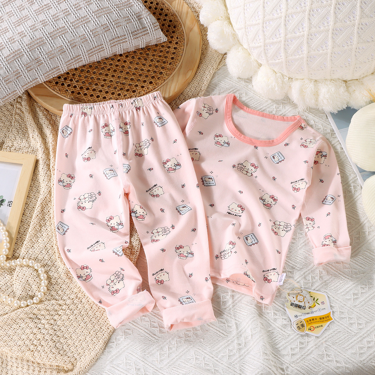 24新款莱卡家居服中小童A类纯棉无骨秋衣秋裤套装男女童卡通睡衣