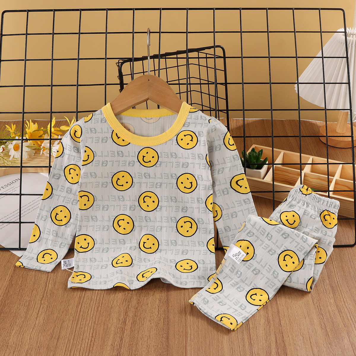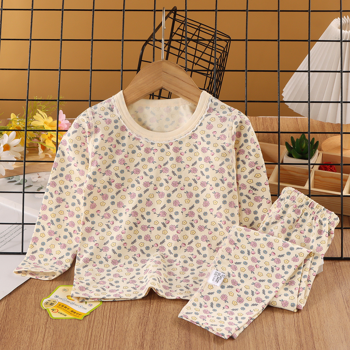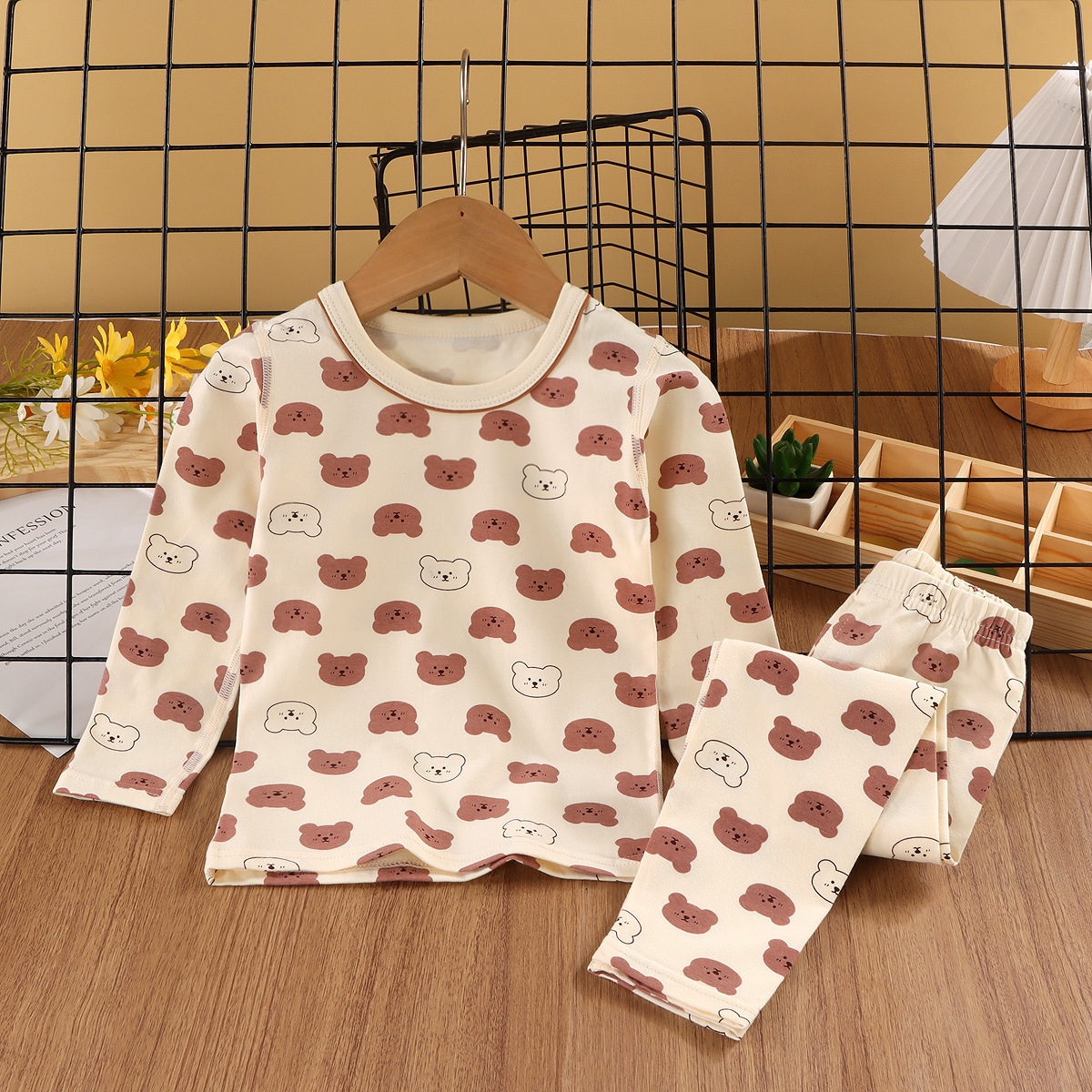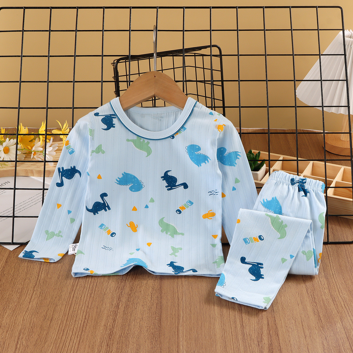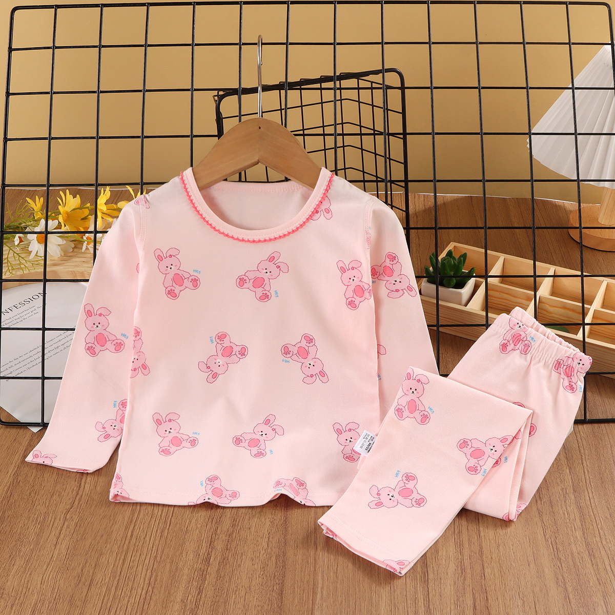 24新款莱卡家居服中小童A类纯棉无骨秋衣秋裤套装男女童卡通睡衣