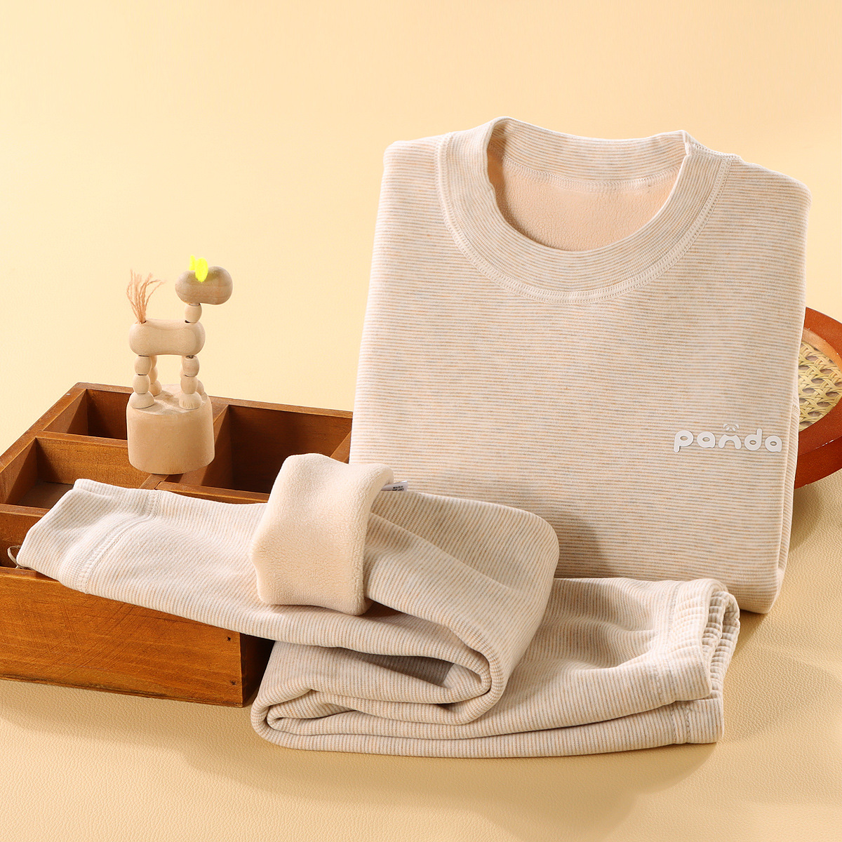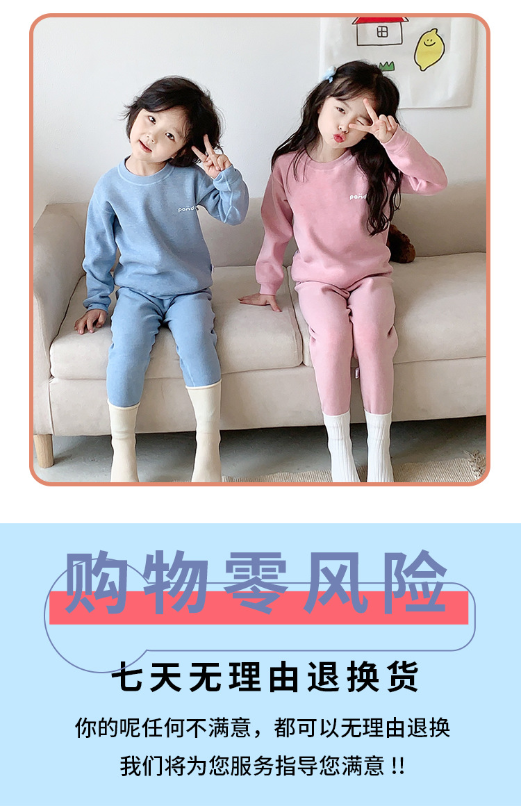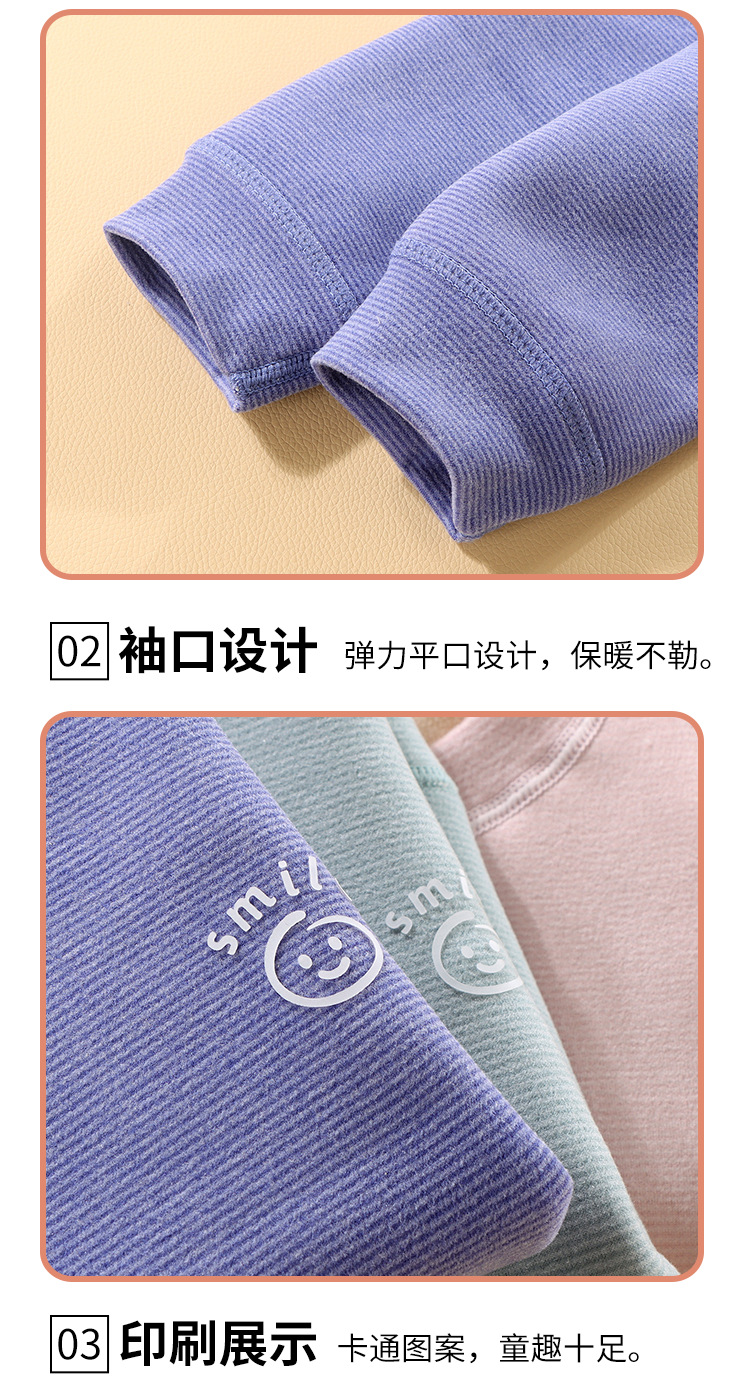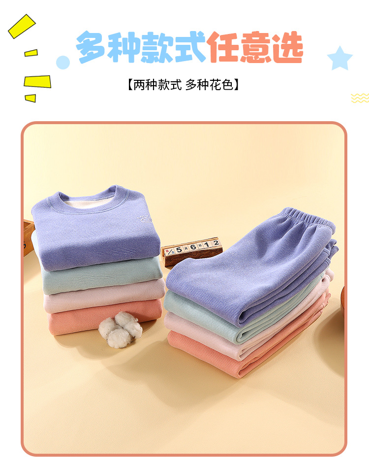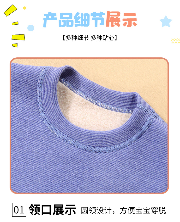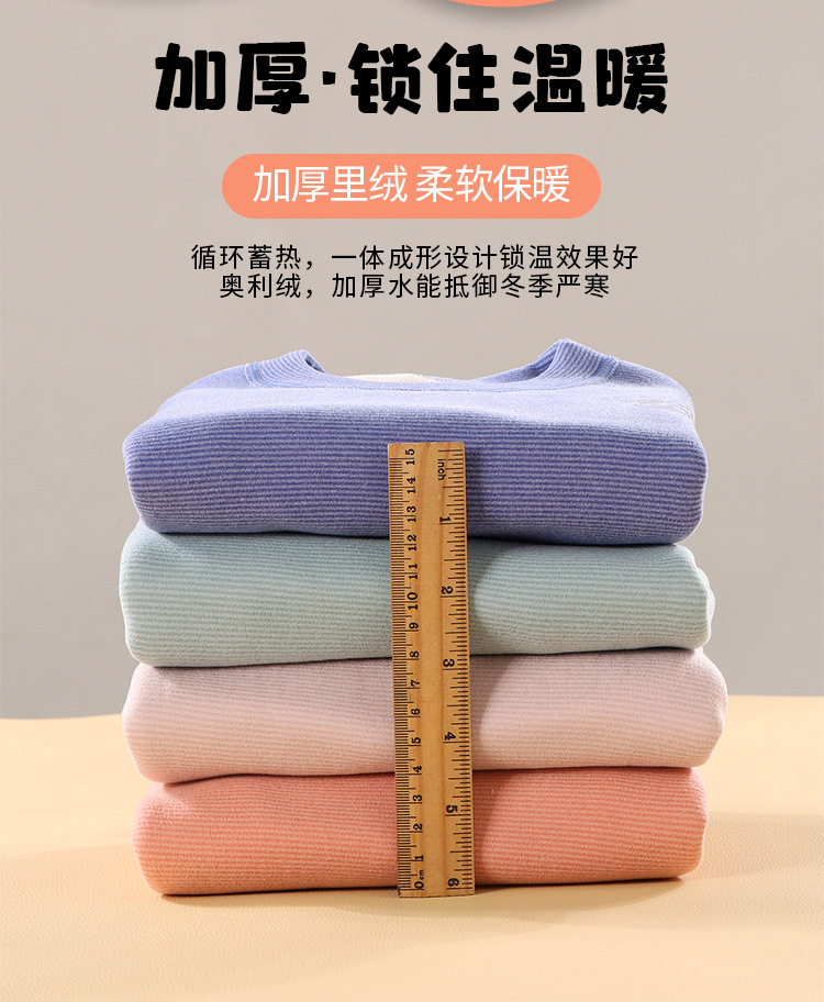 儿童冬季简约加绒奥利绒条纹加厚宝宝保暖秋衣秋裤家居服条纹套装