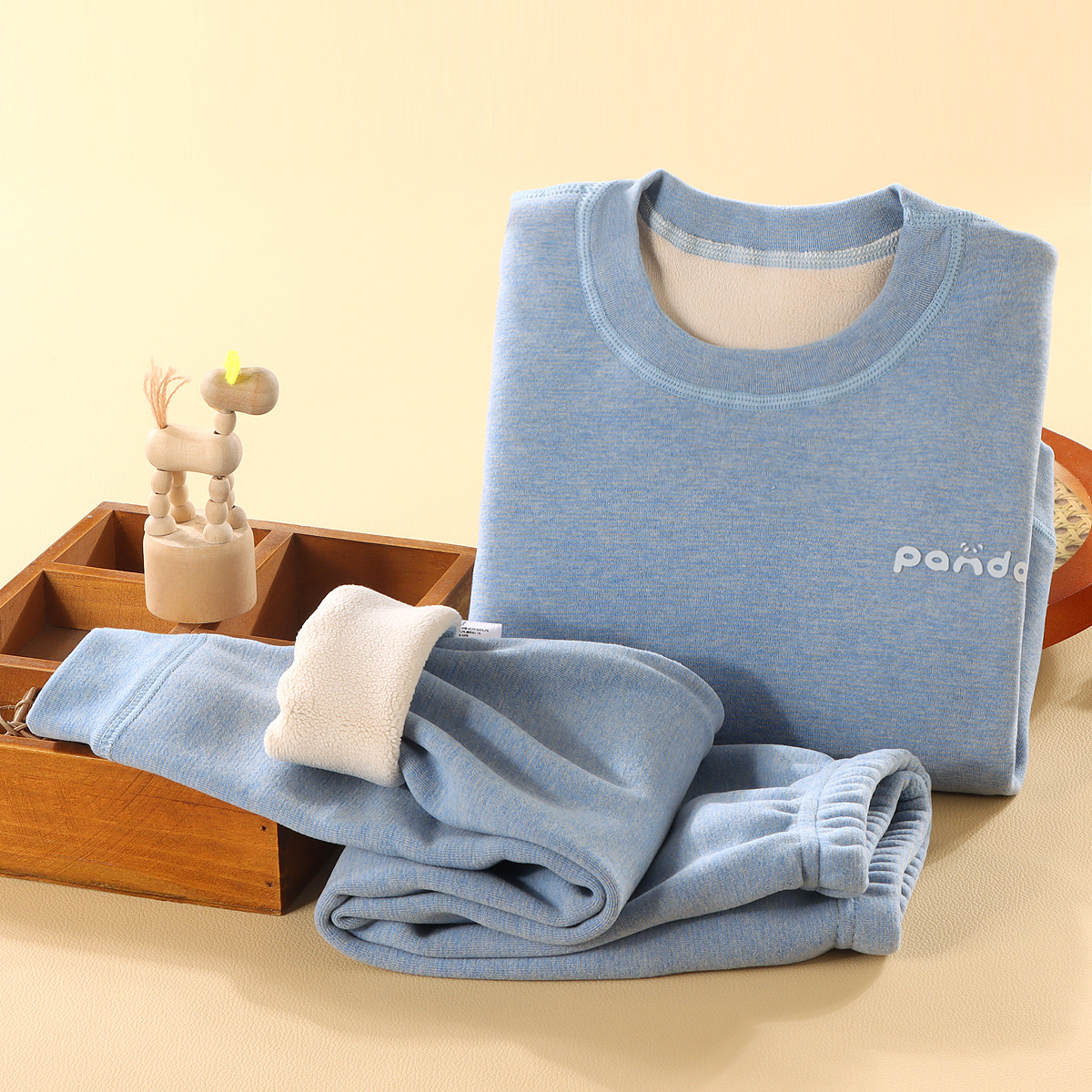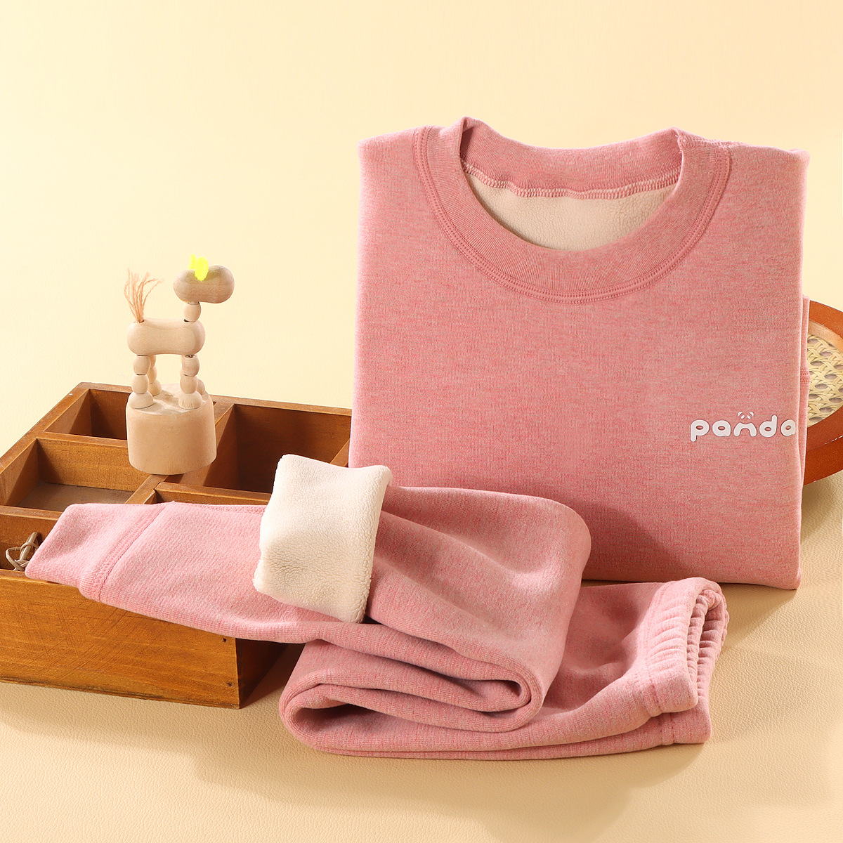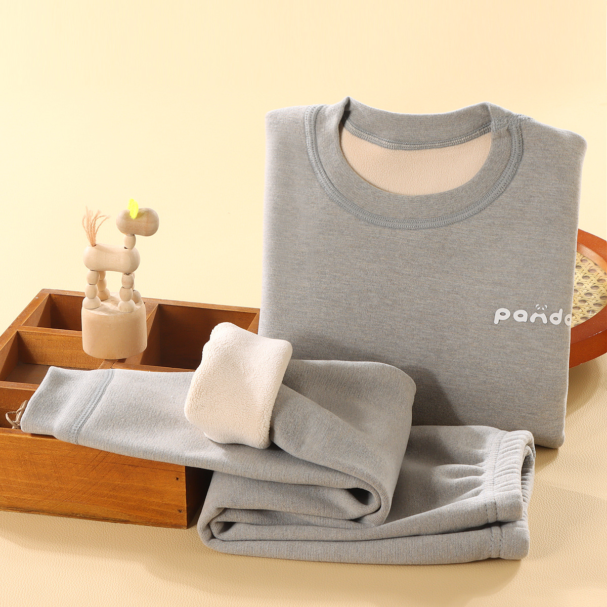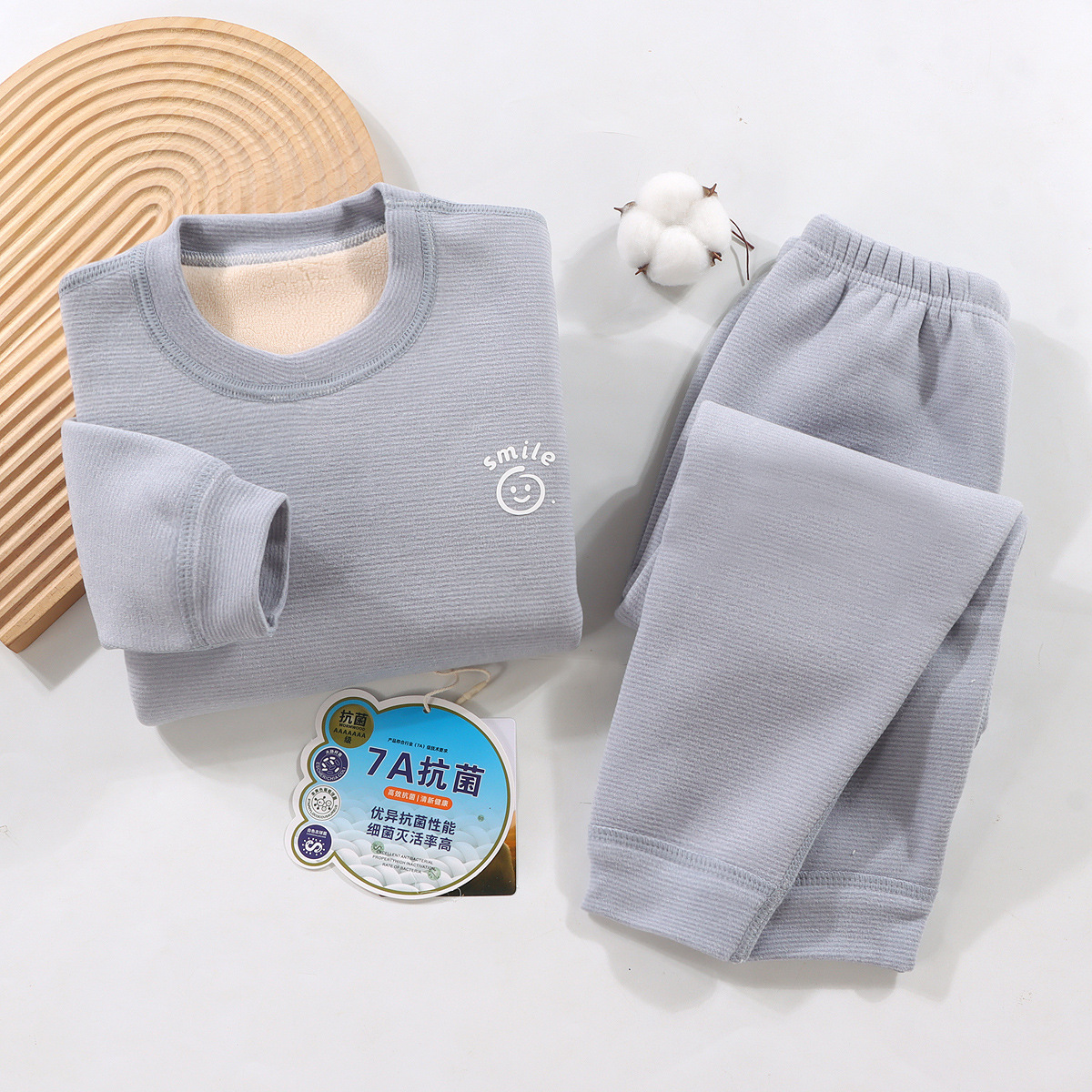 儿童冬季简约加绒奥利绒条纹加厚宝宝保暖秋衣秋裤家居服条纹套装