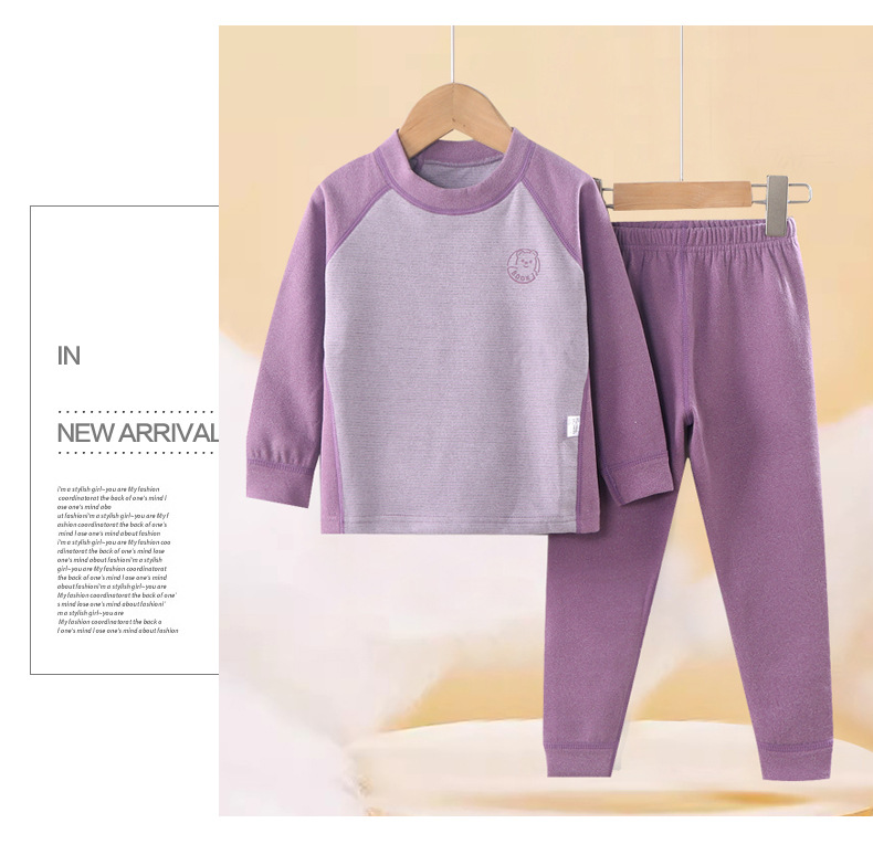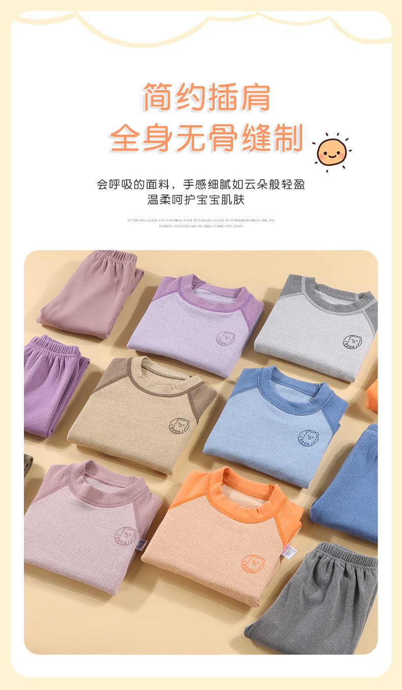 其其宝宝儿童保暖内衣男女宝宝秋衣裤德绒插肩2024新款家居服睡衣