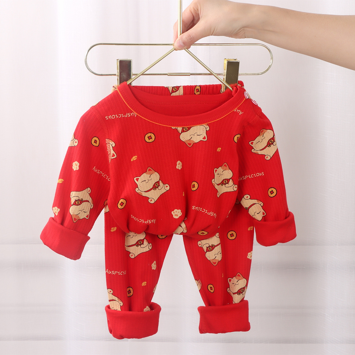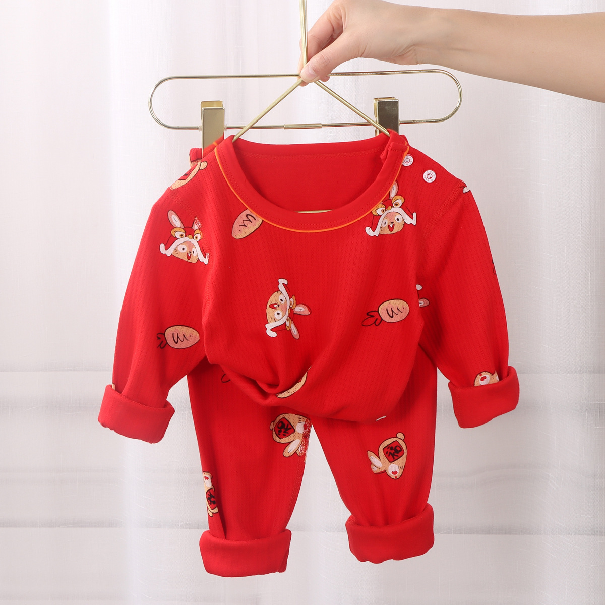 儿童本命年内衣套装龙年大红纯棉秋衣秋裤12岁男大童保暖女童睡衣