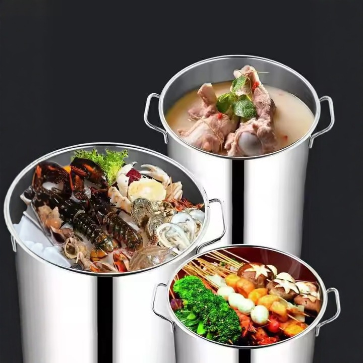 201不锈钢桶圆桶带盖 商用汤桶烧水桶燃气卤桶大容量加厚复底汤锅