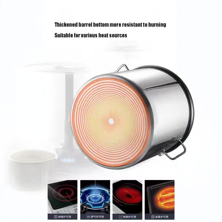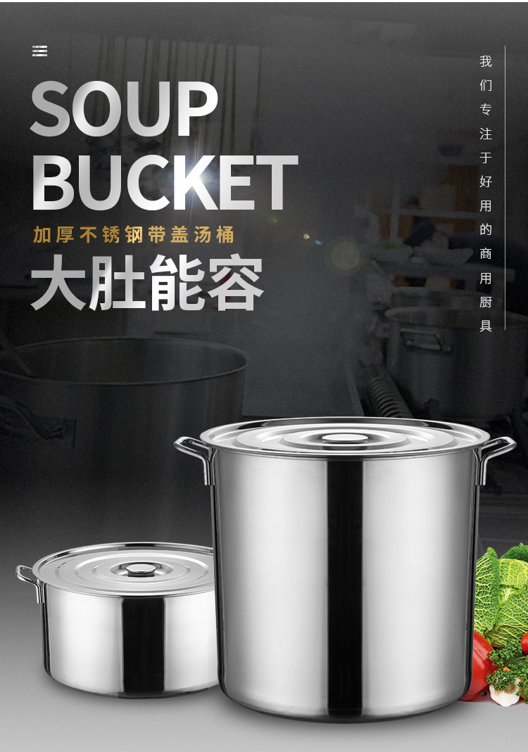 不锈钢加厚汤锅食堂汤桶商用卤肉桶圆通带盖大容量烧水桶炖锅家用