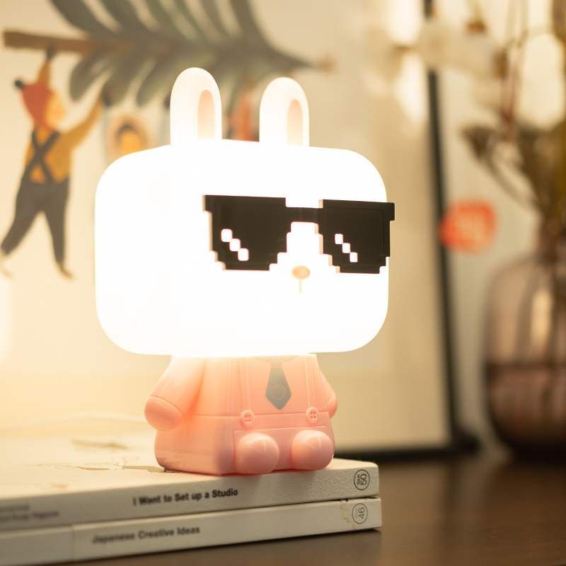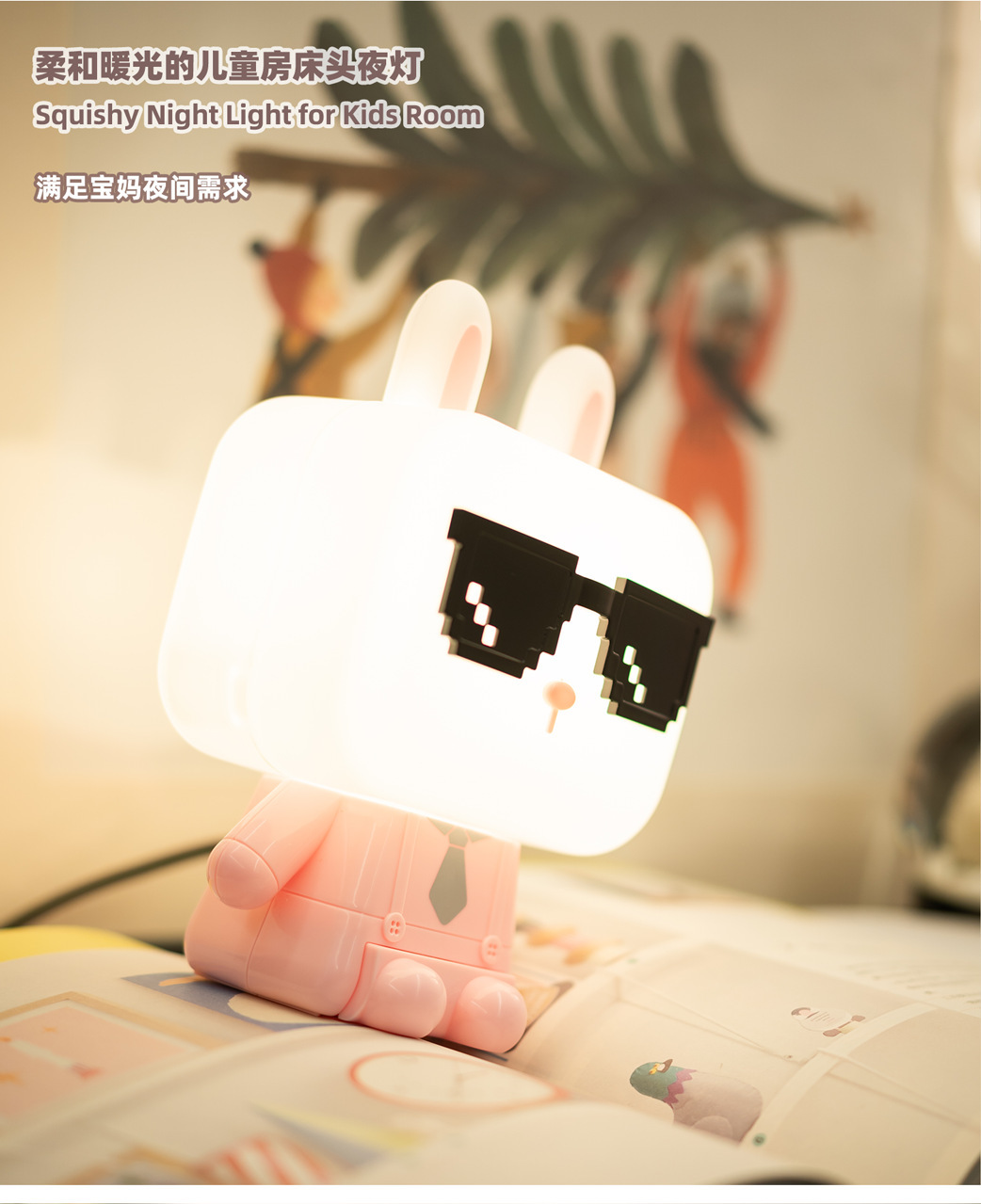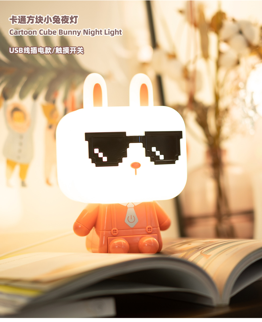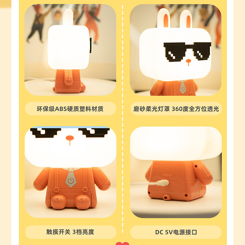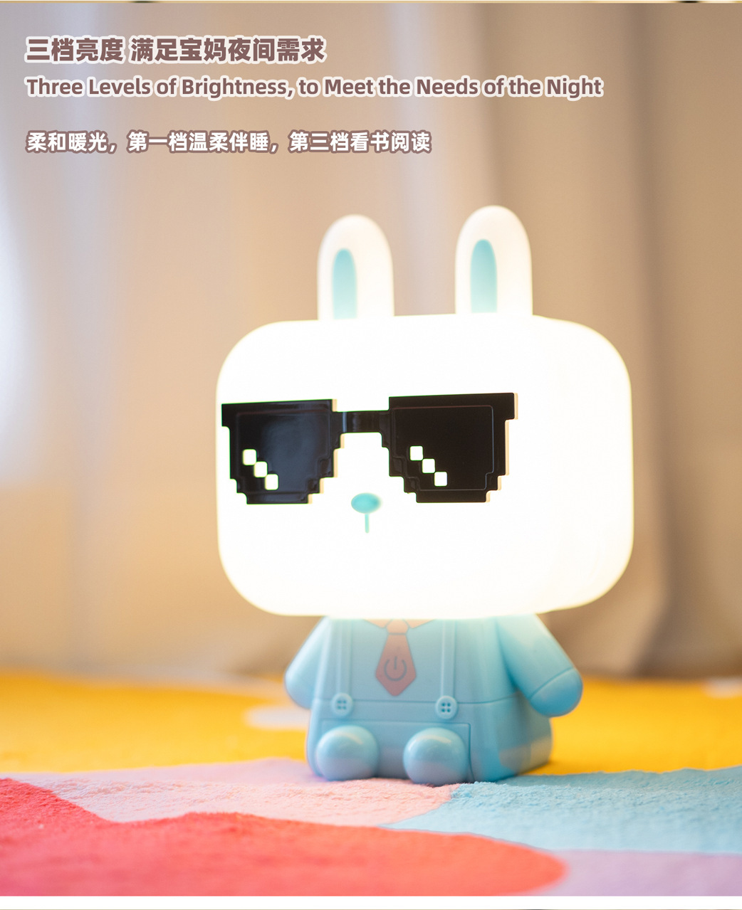 方块小兔动物夜灯 婴儿喂奶护眼台灯床头灯卧室睡眠灯3档触摸调光