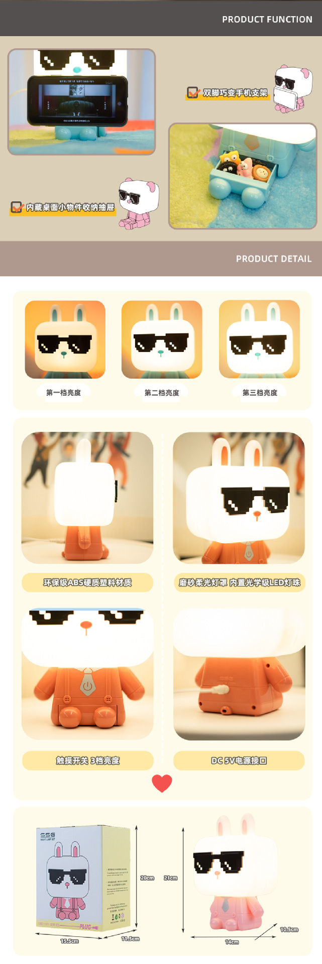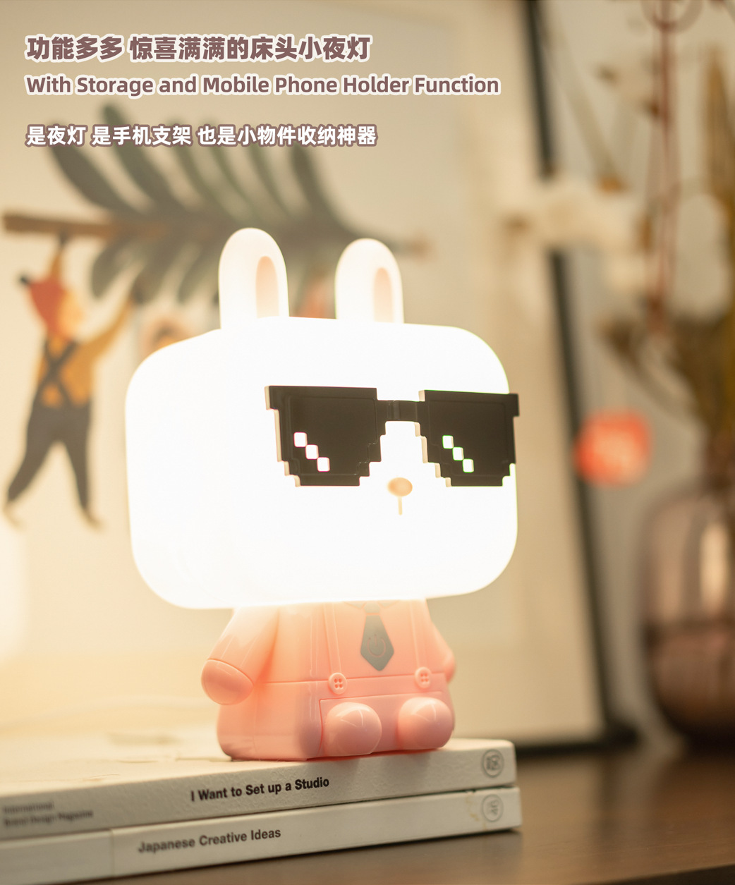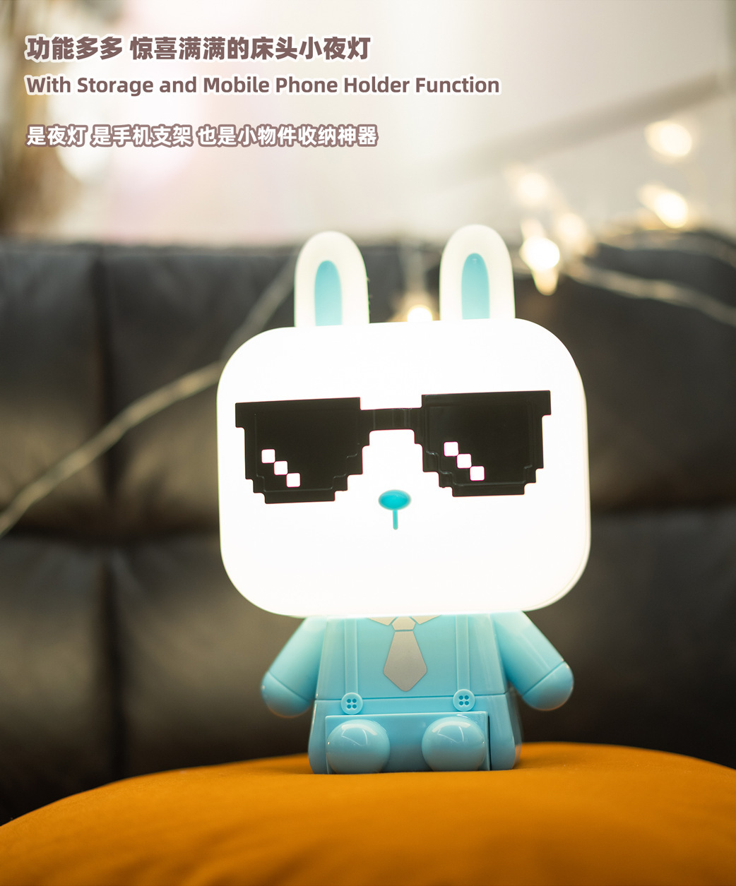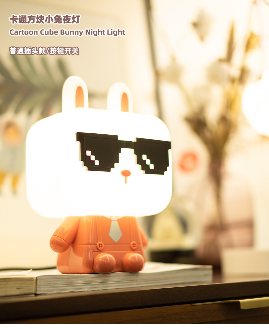 方块小兔动物夜灯 婴儿喂奶护眼台灯床头灯卧室睡眠灯3档触摸调光