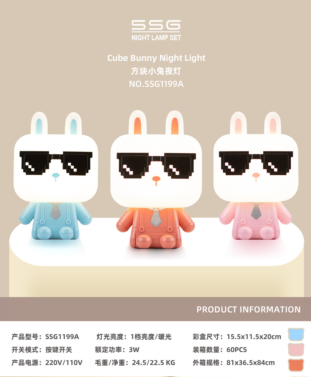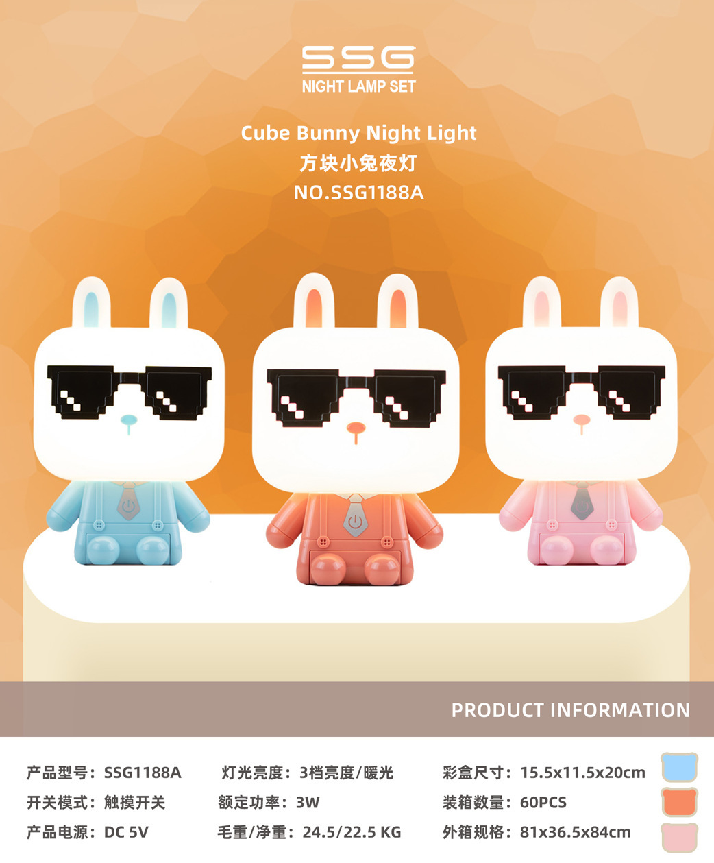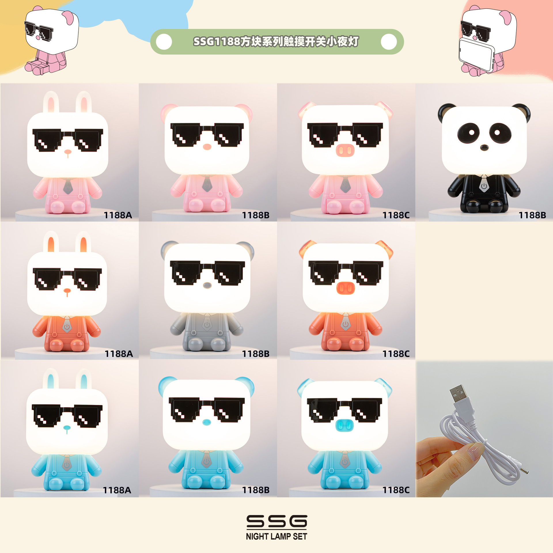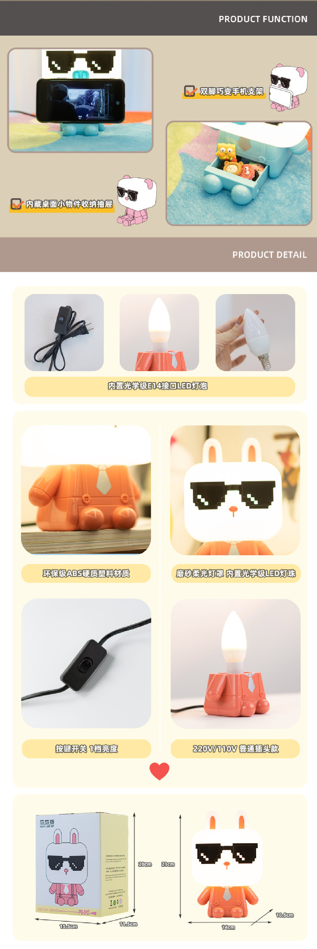 方块小兔动物夜灯 婴儿喂奶护眼台灯床头灯卧室睡眠灯3档触摸调光