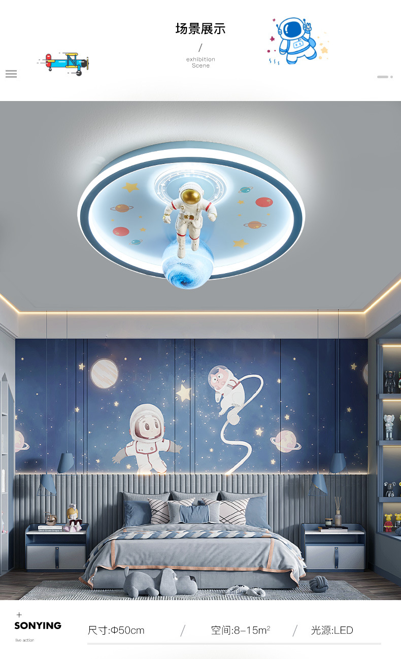 外贸专供吸顶灯创意卡通太空人宇航员星球系列全光谱护眼儿童房灯