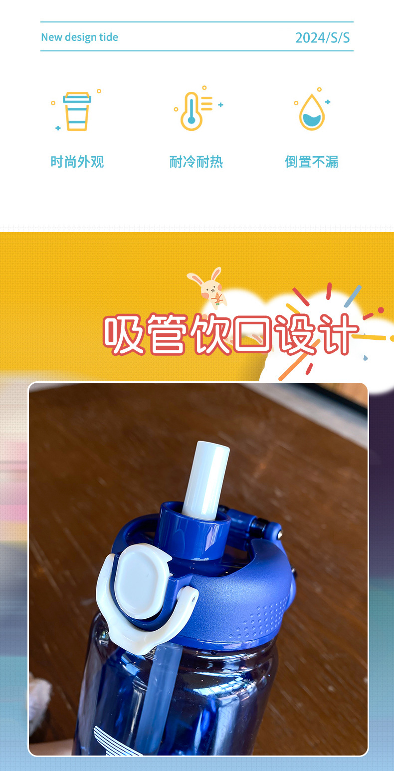 大容量塑料杯高颜值时尚运动水壶弹盖吸管便携耐高温塑料水杯批发