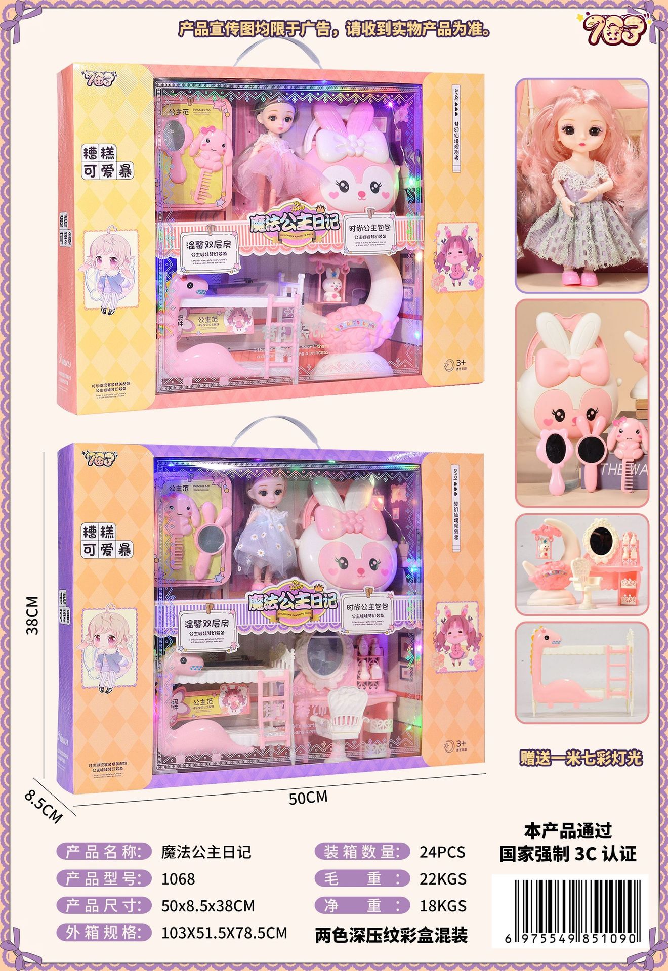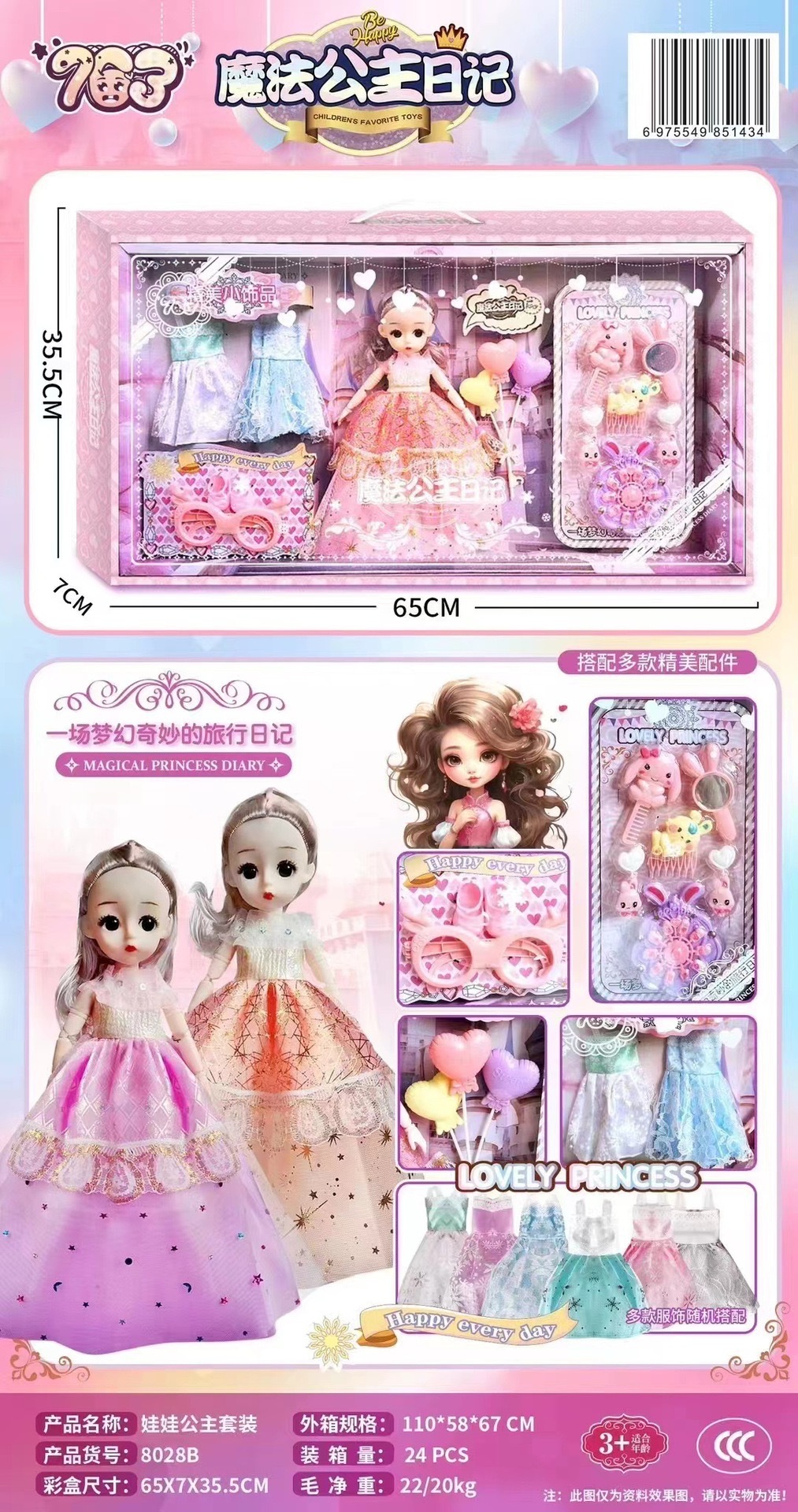 女孩儿童玩具礼品60cm娃娃精美公主大号礼盒套装招生培训机构批发