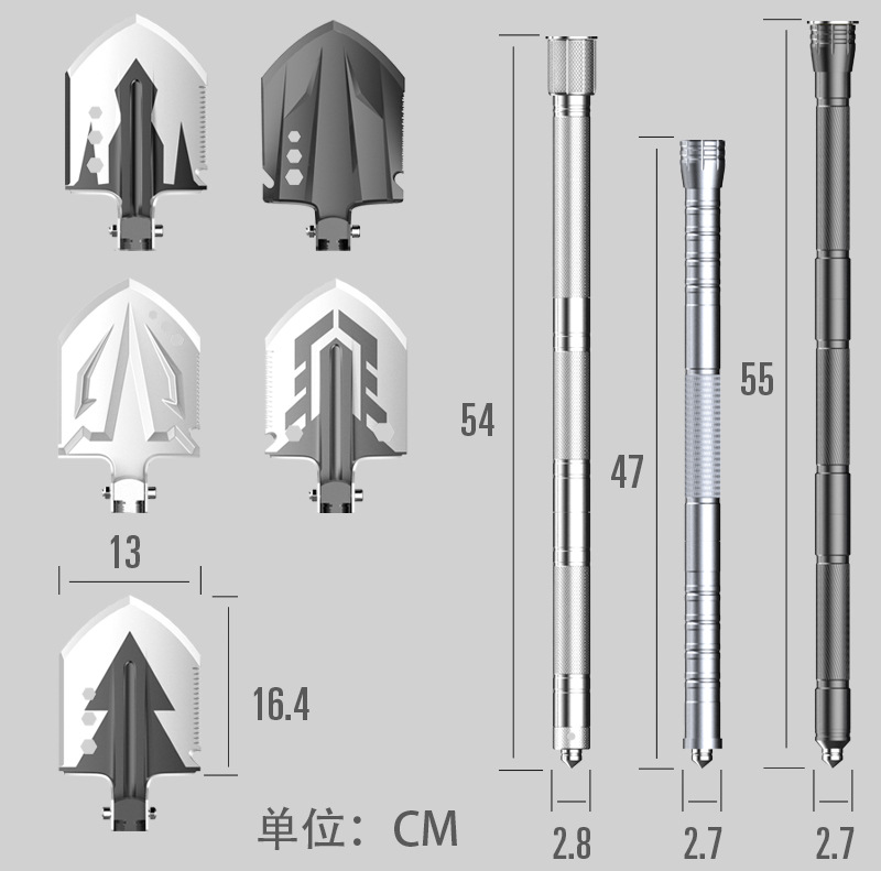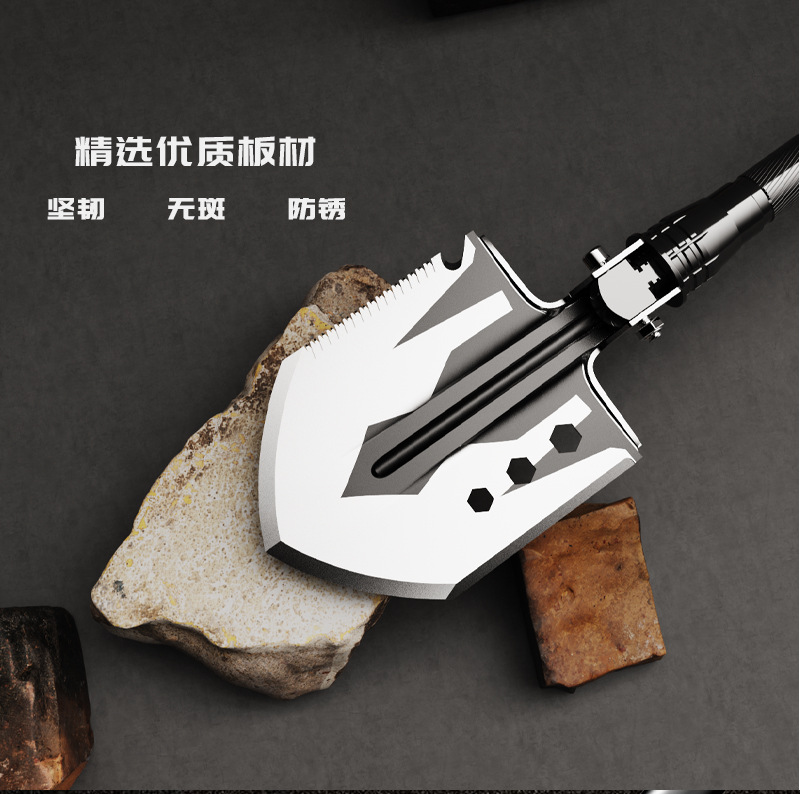 户外多功能兵工铲 野营露营求生车载高碳猛钢折叠多功能工兵铲子