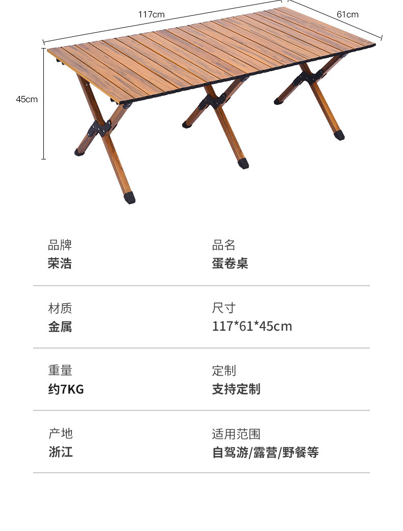 现货折叠蛋卷桌露营桌子便携式野餐桌野营装备桌椅户外折叠桌批发