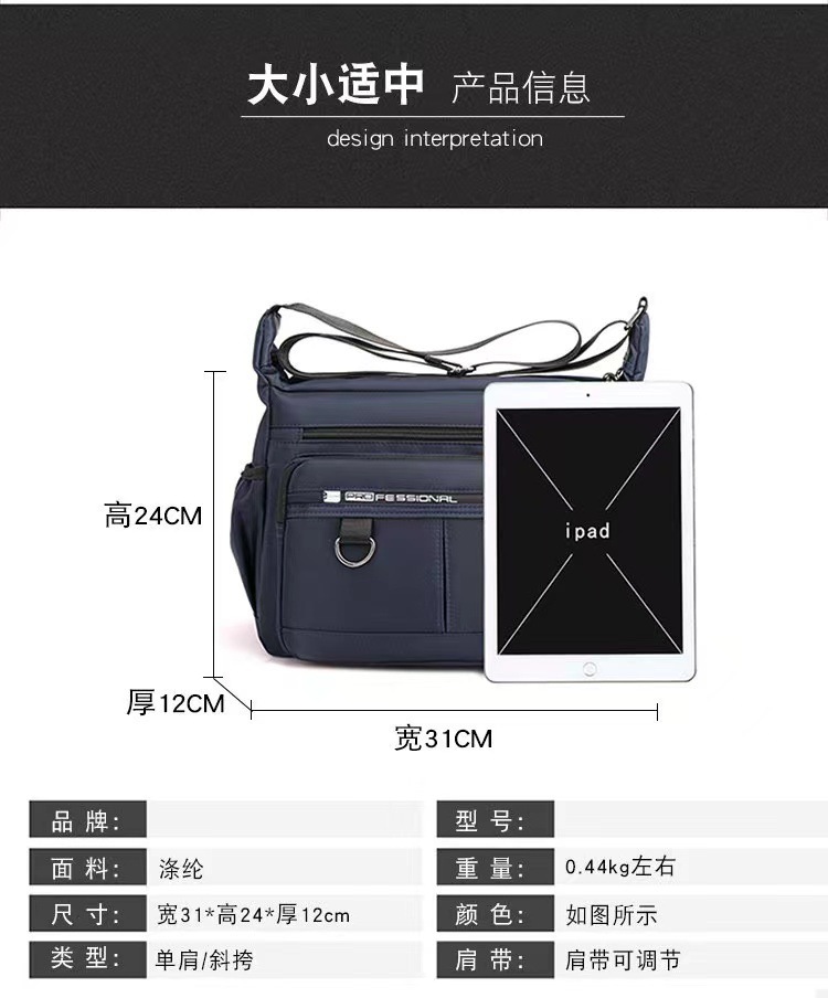 五层多层男士斜挎包大容量多口袋做生意包男包单肩包防水耐磨背包