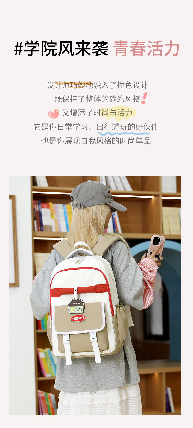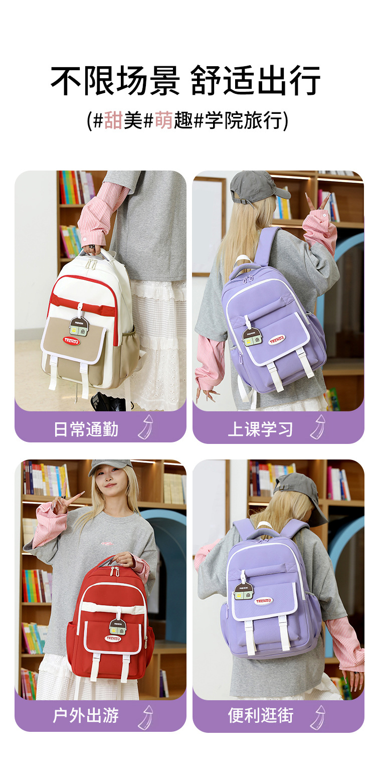 初中生书包女轻便双肩包撞色可爱小学生三到六年级双肩包