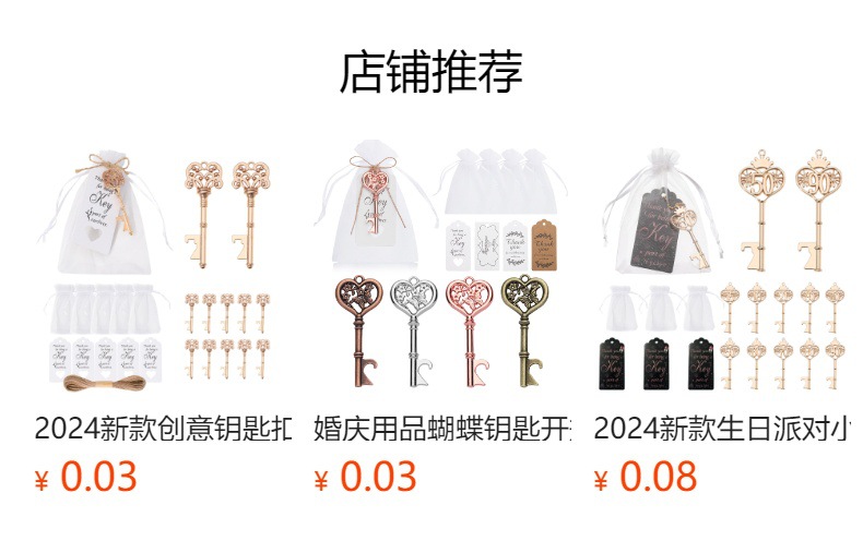 跨境派对婚庆钥匙开瓶器挂件小礼品酒店婚礼装饰啤酒起盖器瓶