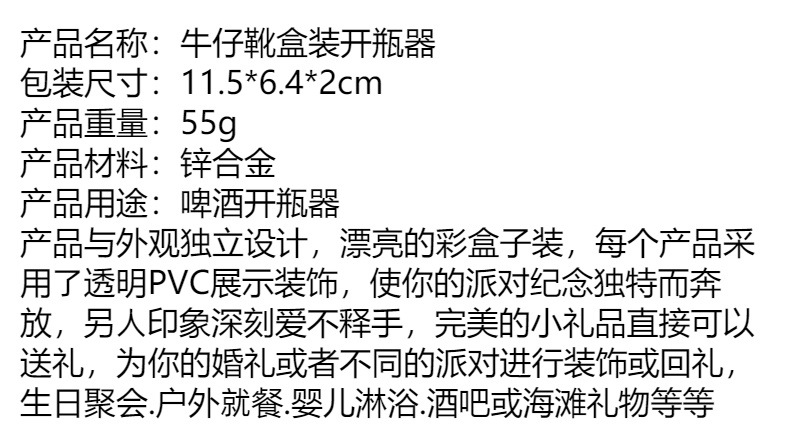 创意锌合金啤酒开瓶器 结婚回礼促销小礼物游戏奖品牛仔靴开瓶器