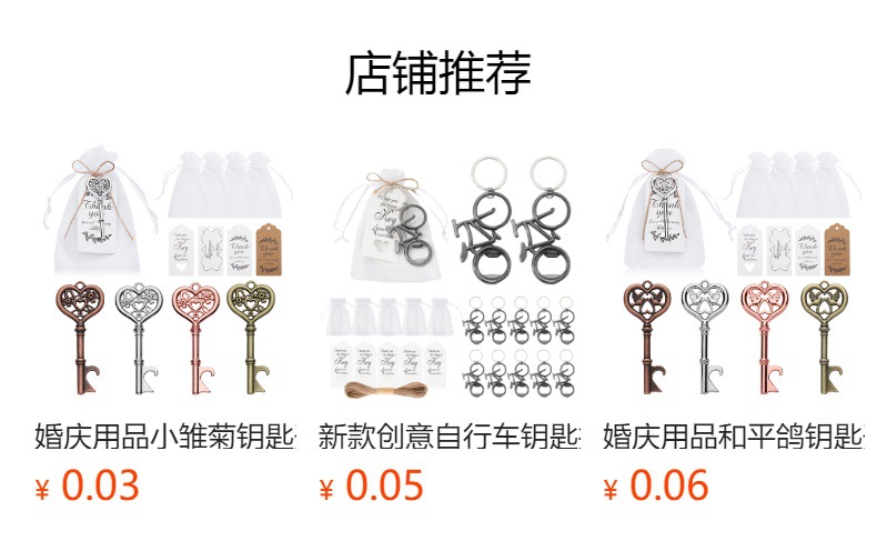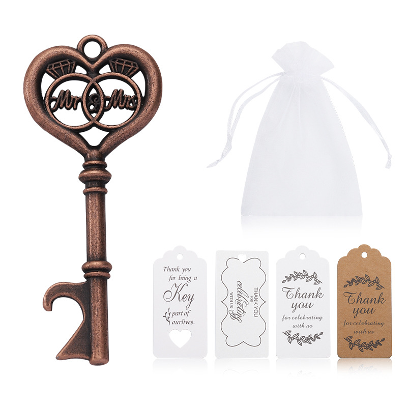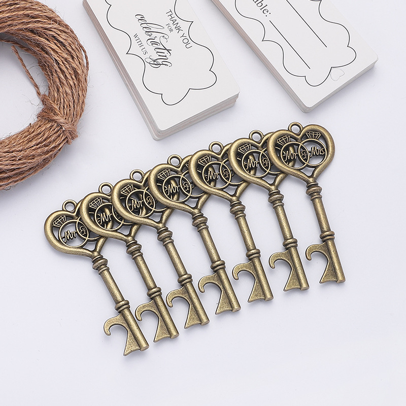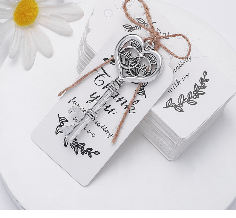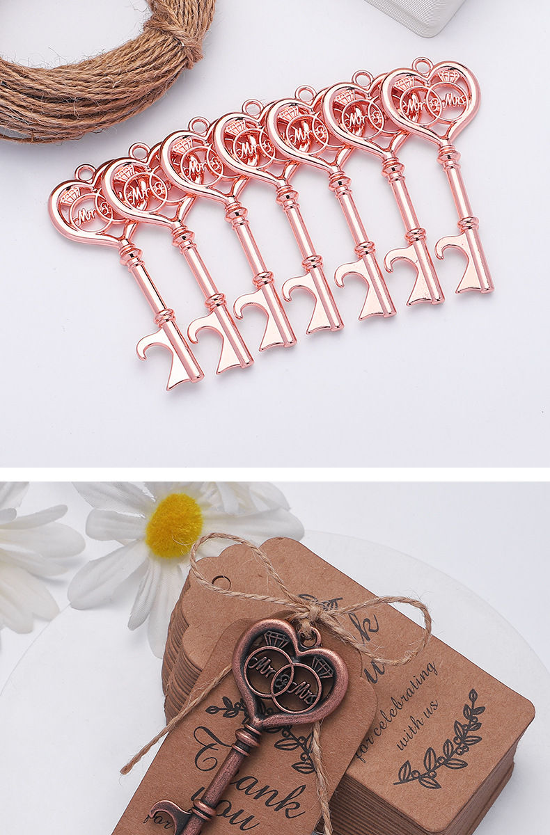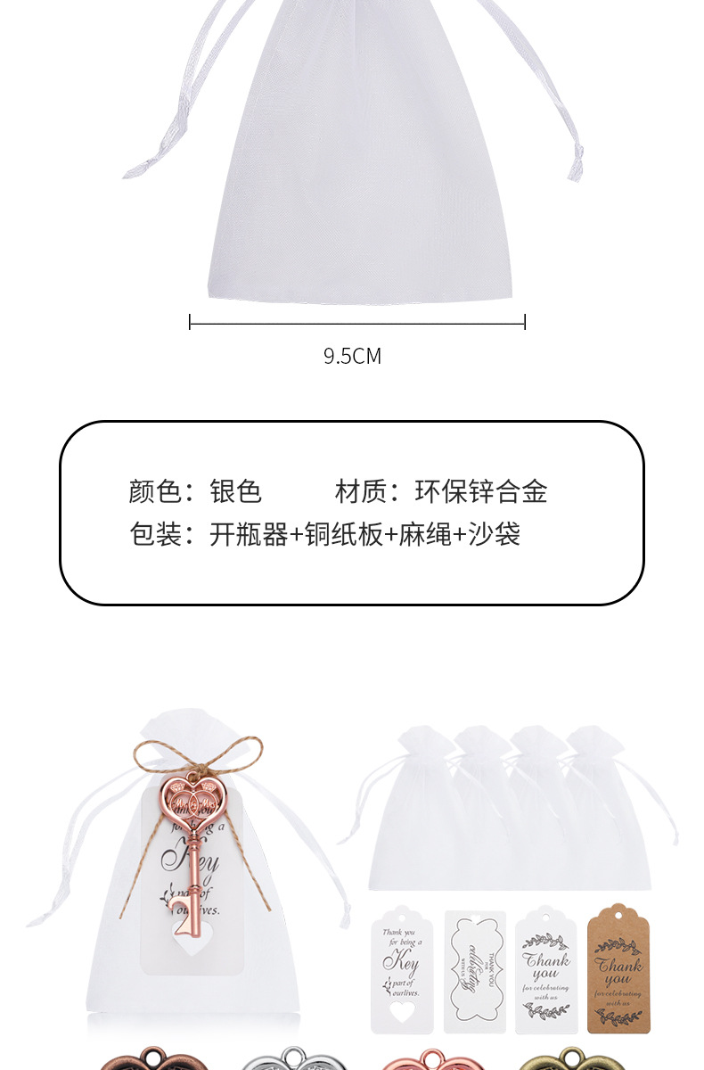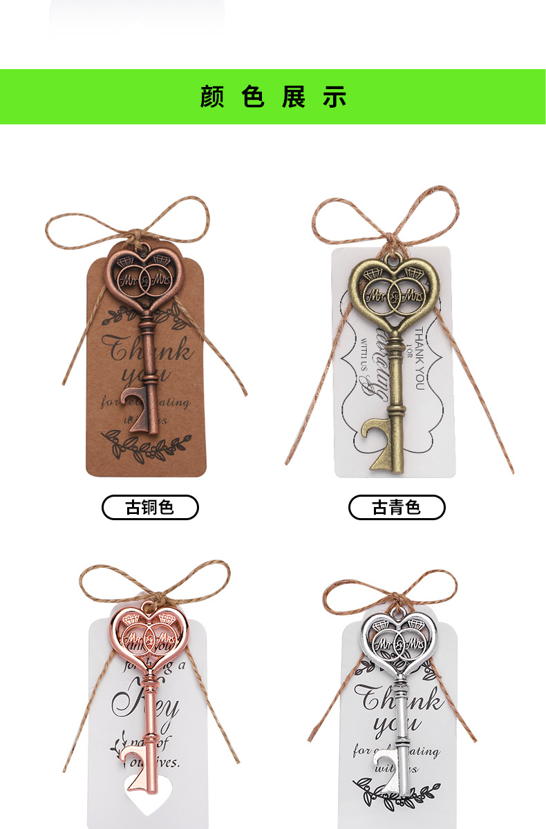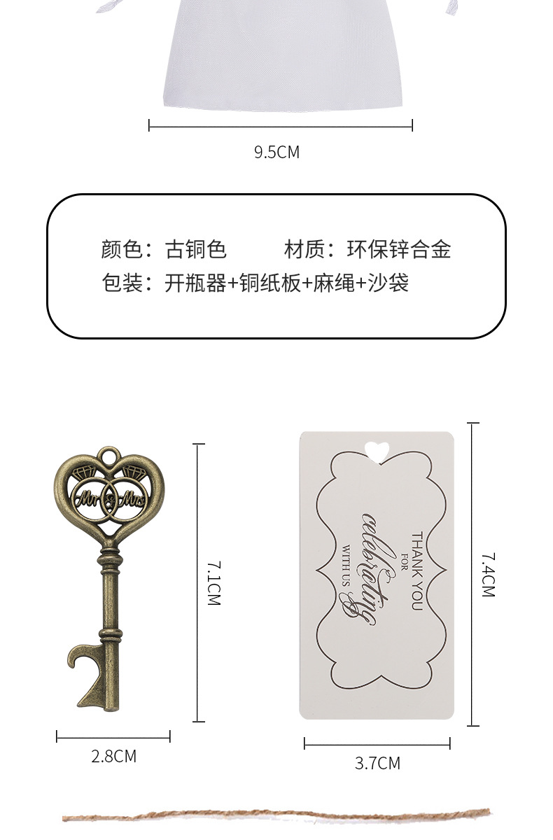 品名:婚庆创意回礼礼品复古钥匙开瓶器配麻绳卡片