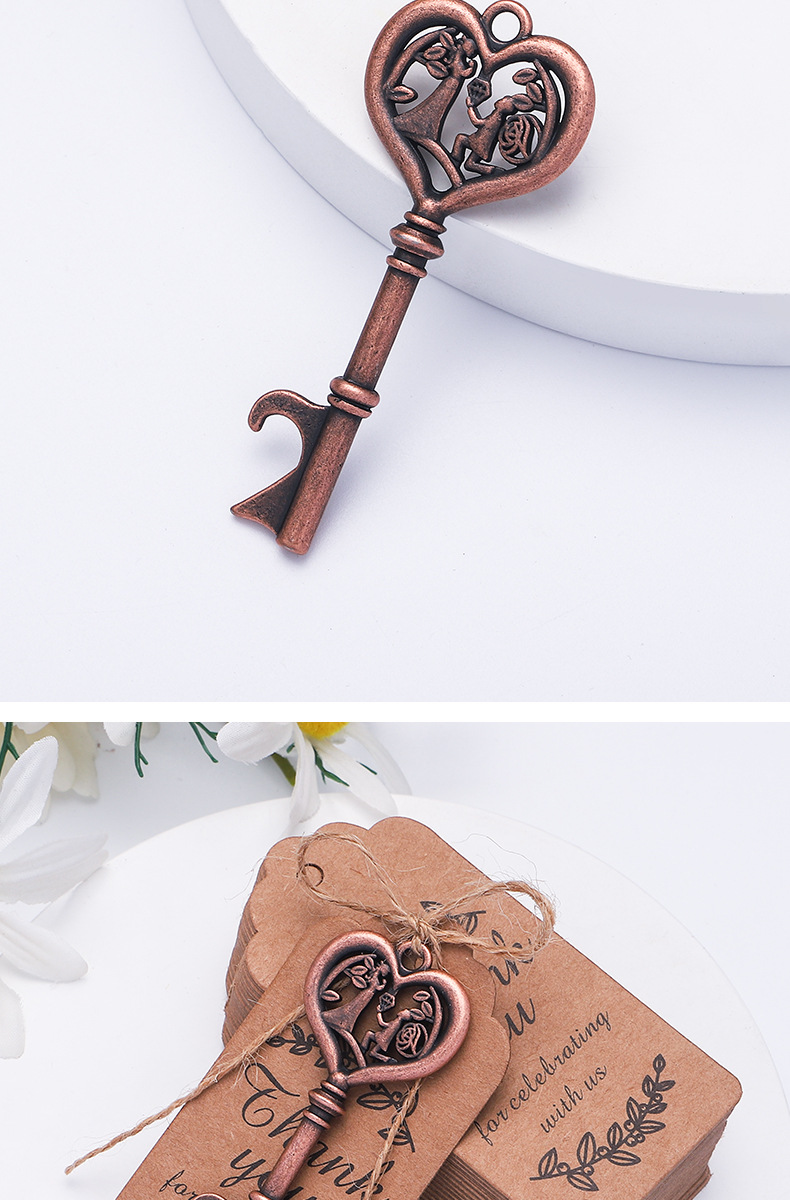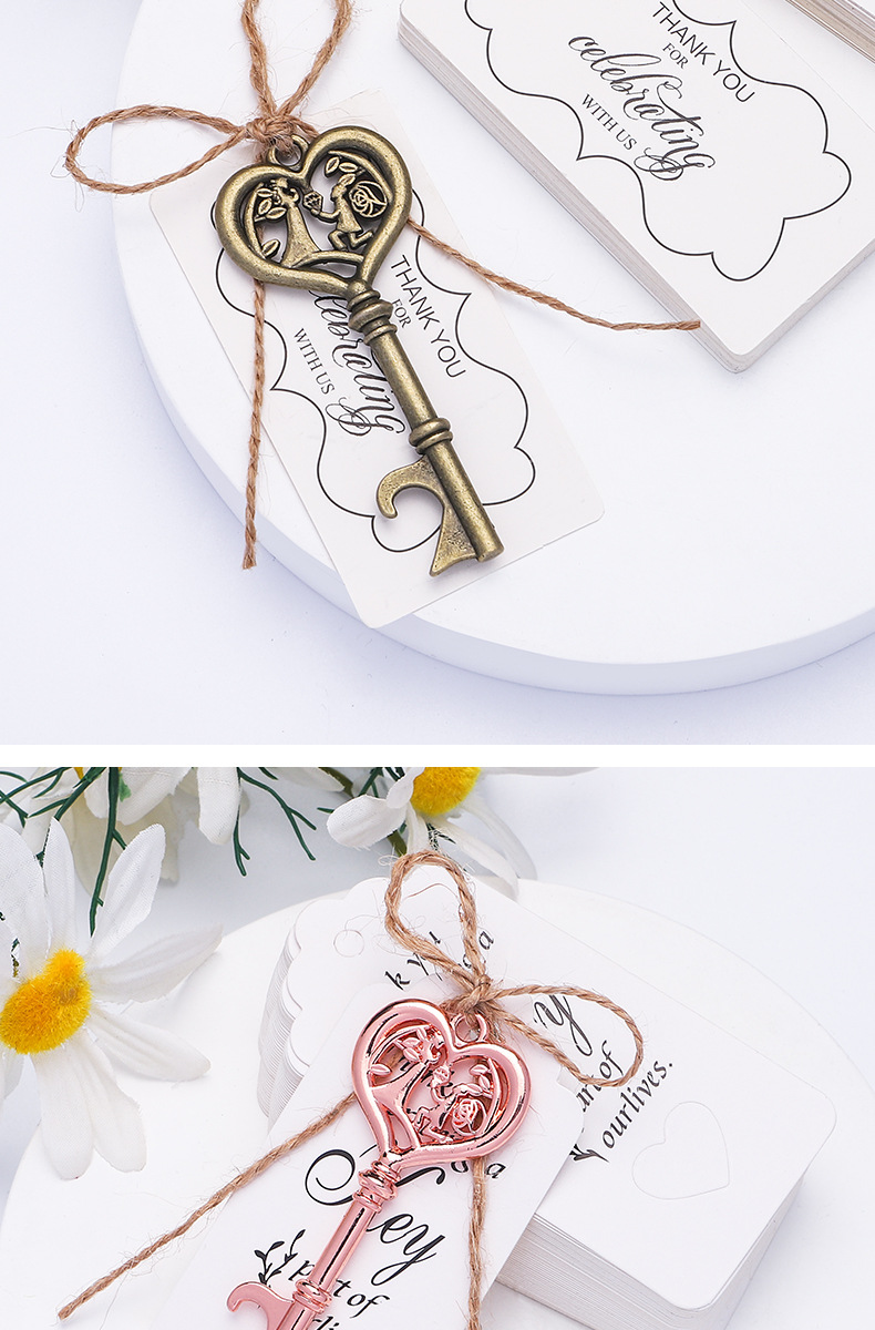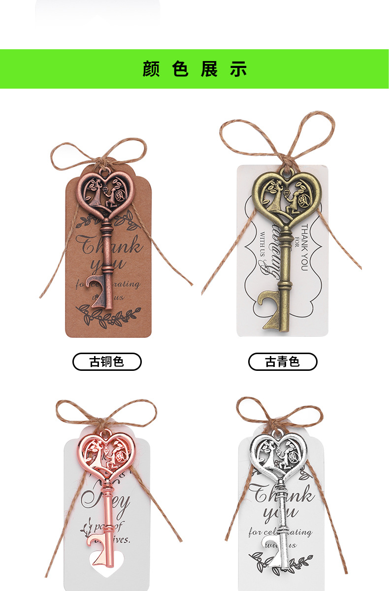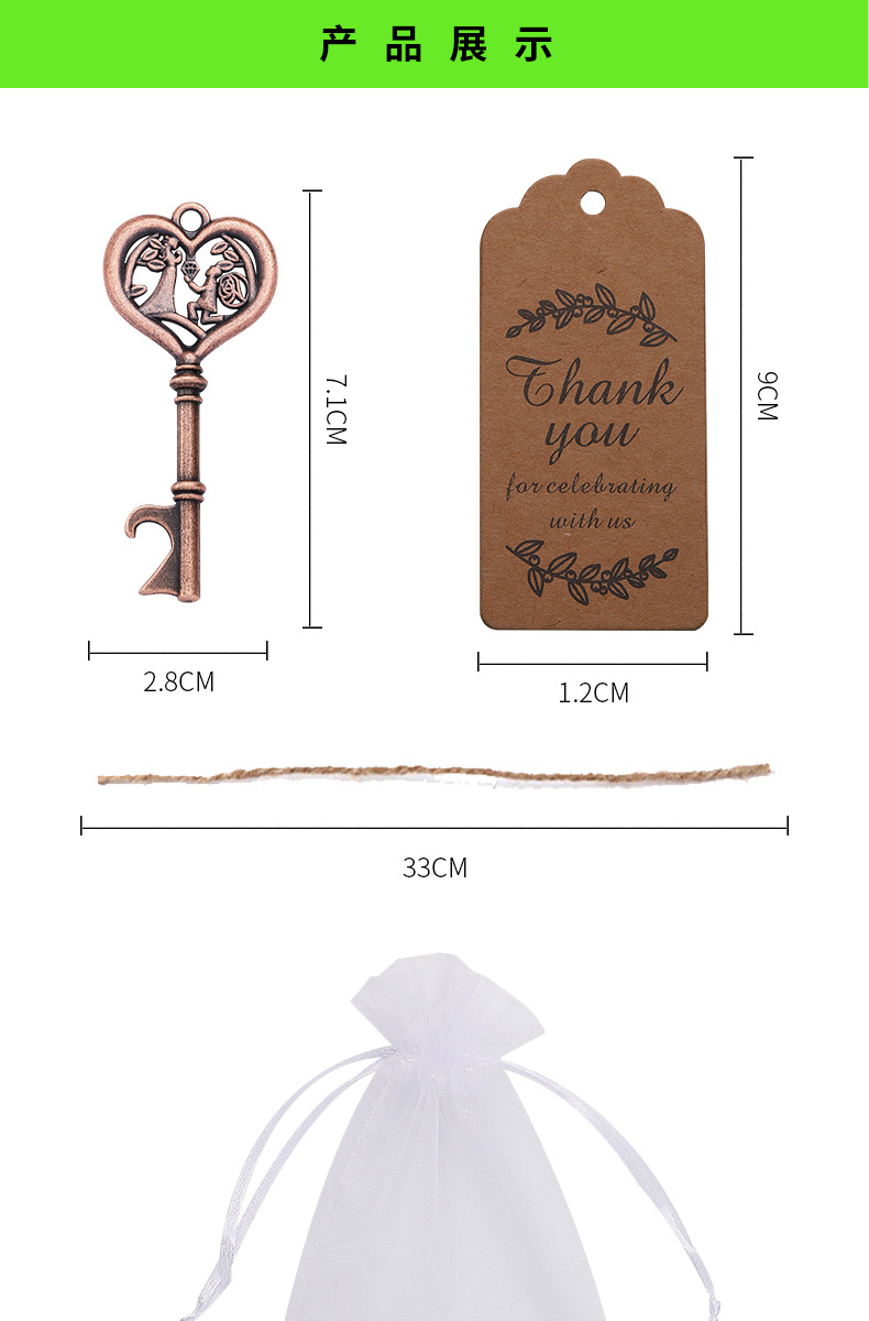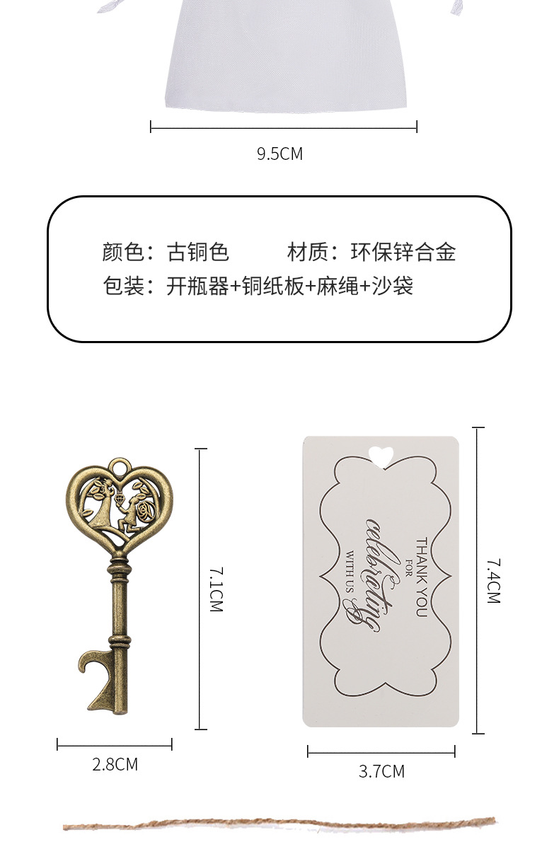 品名:婚庆创意回礼礼品复古钥匙开瓶器配麻绳卡片