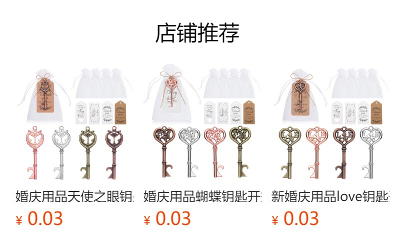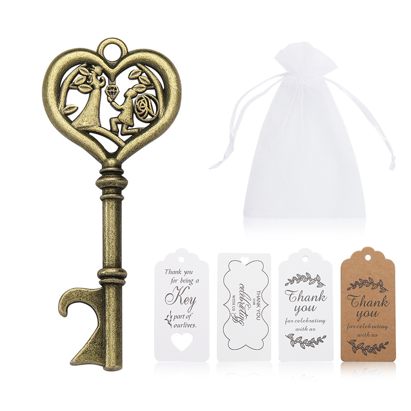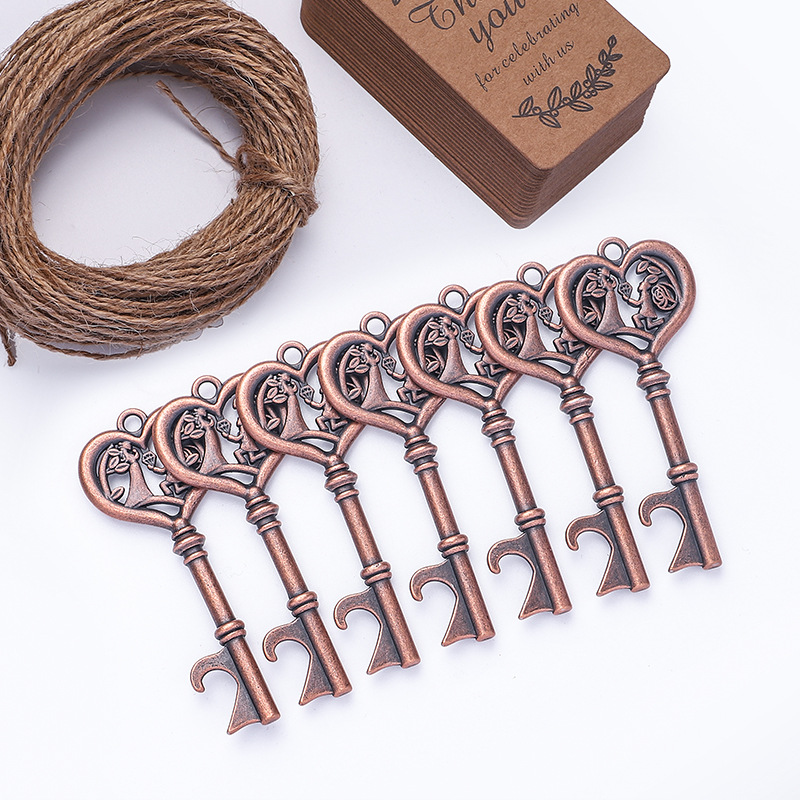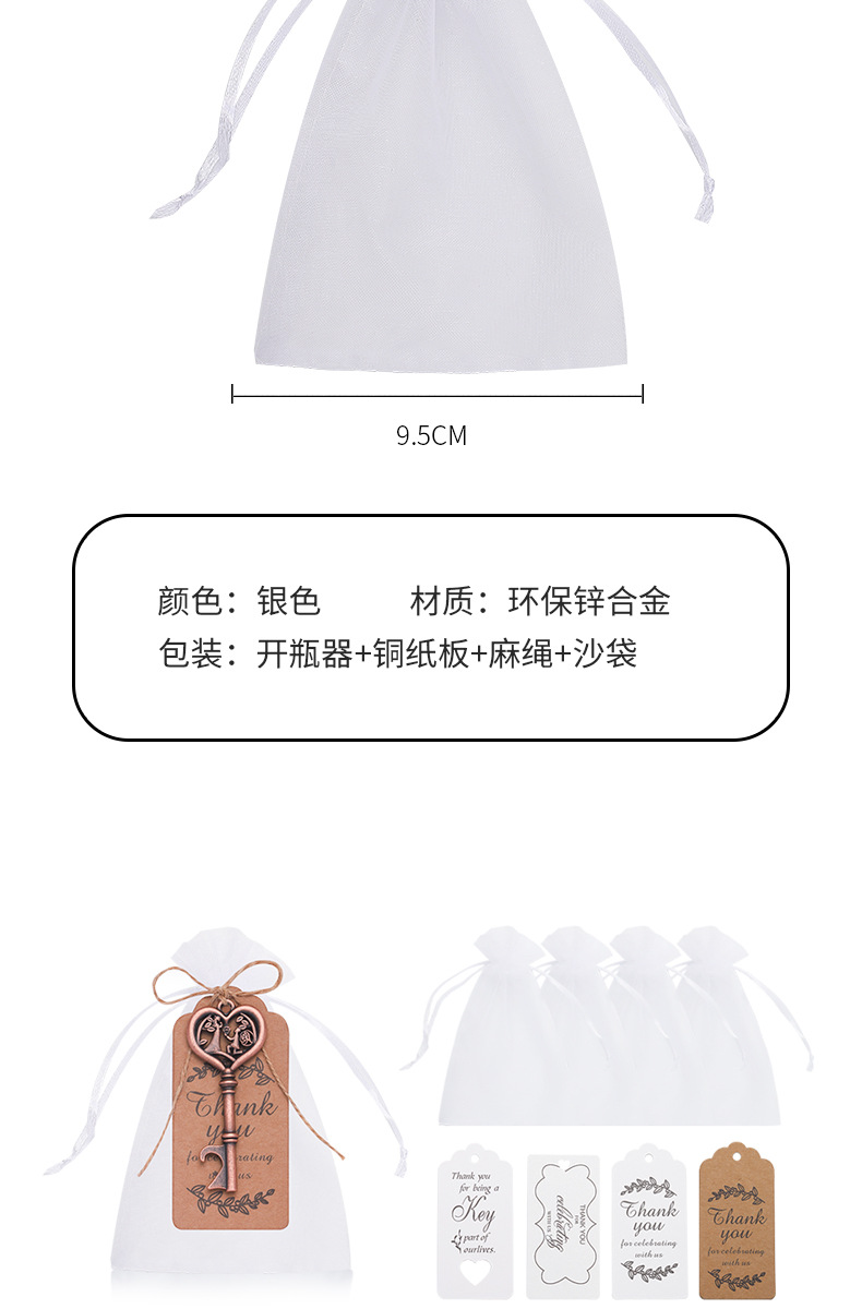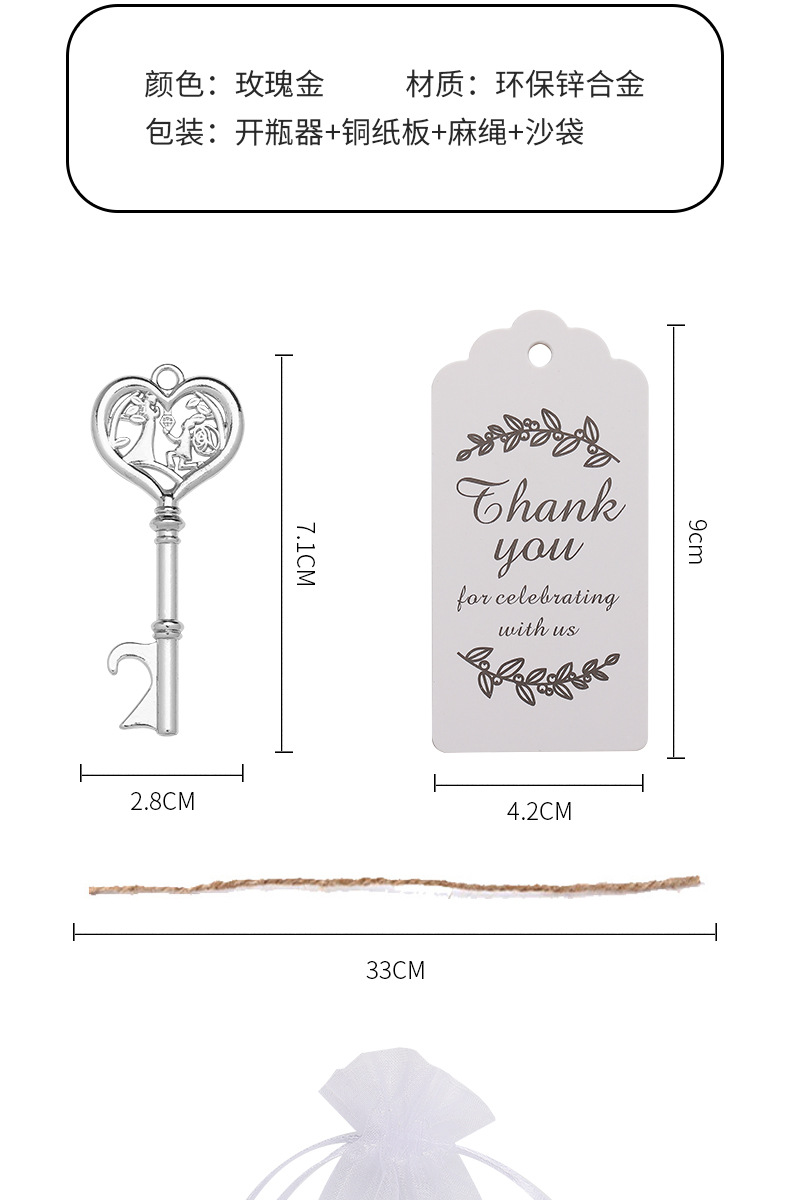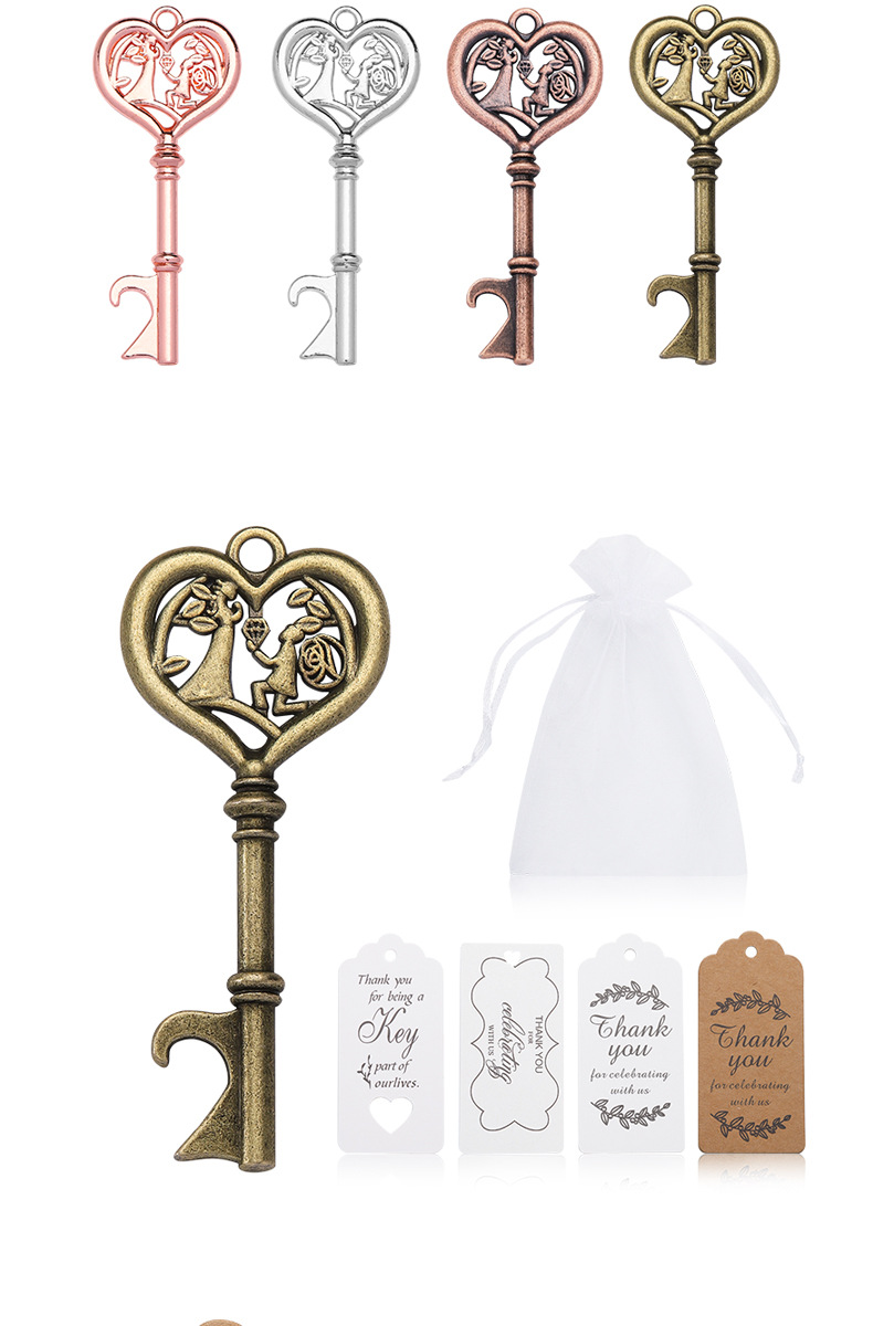 品名:婚庆创意回礼礼品复古钥匙开瓶器配麻绳卡片