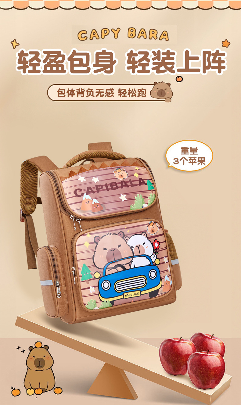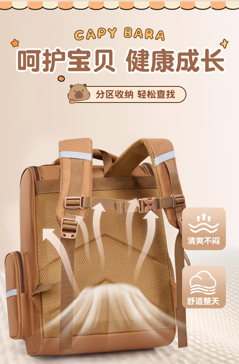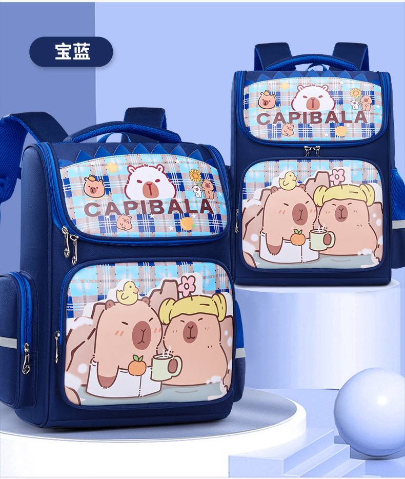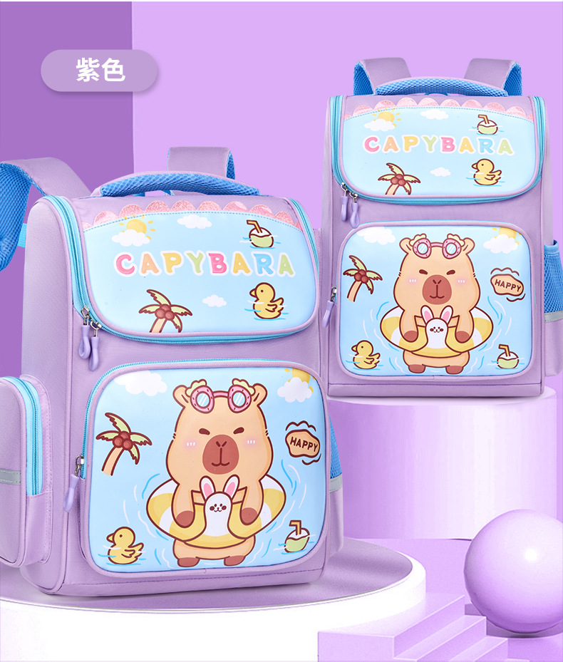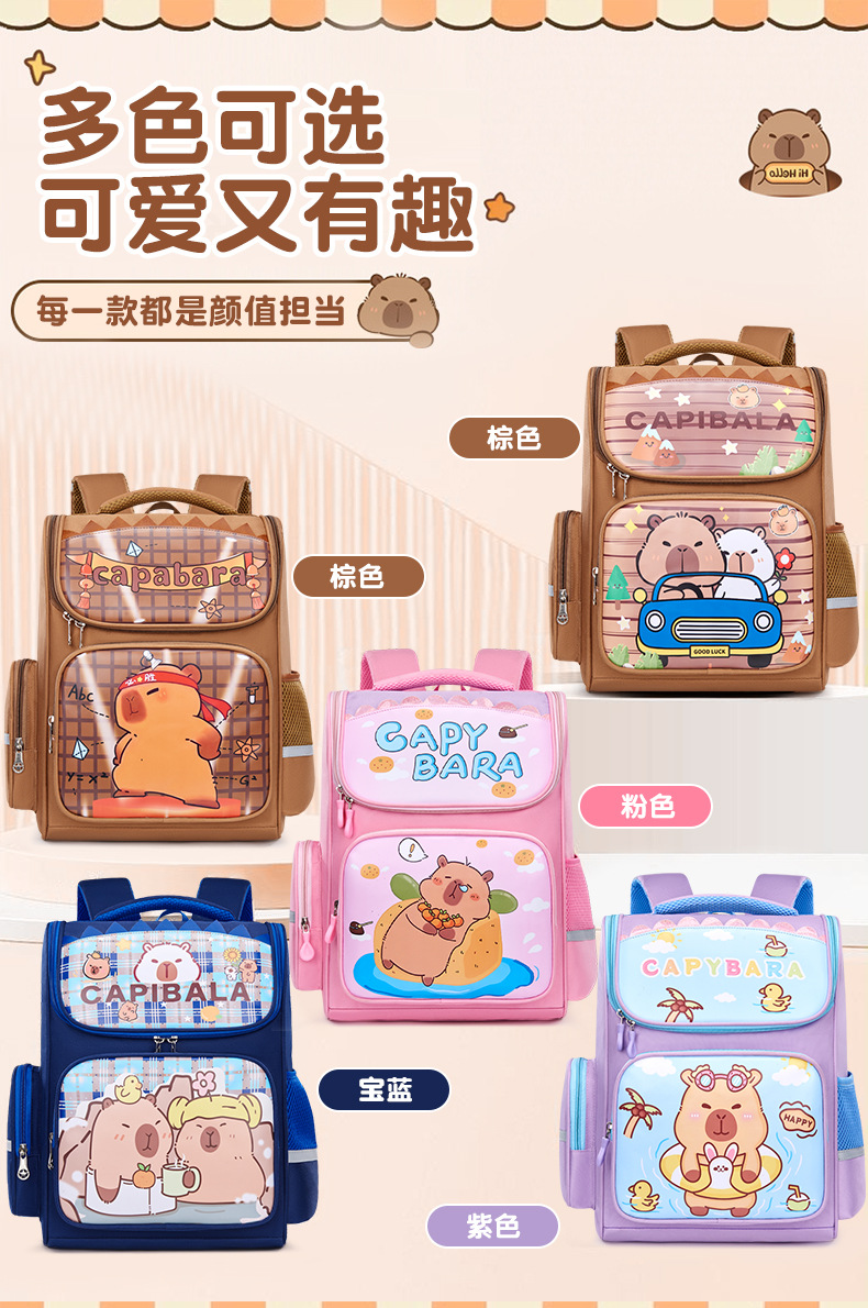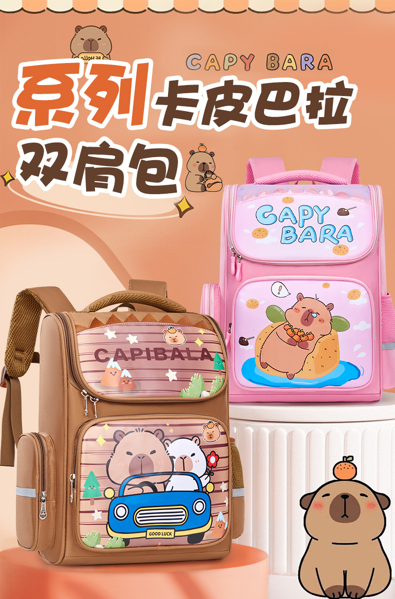 卡皮巴拉萌趣儿童双肩包小学生必备书包结实耐用卡通大容量反光条