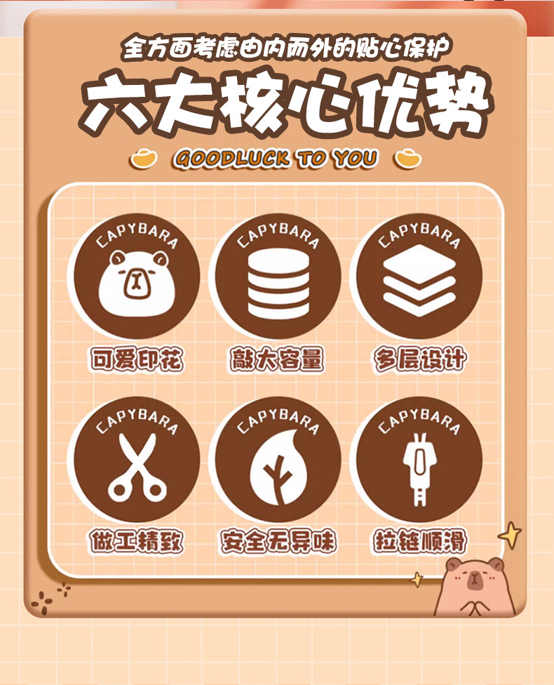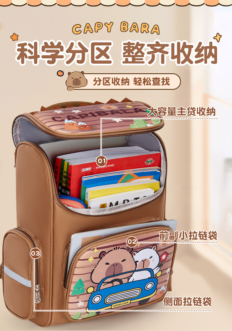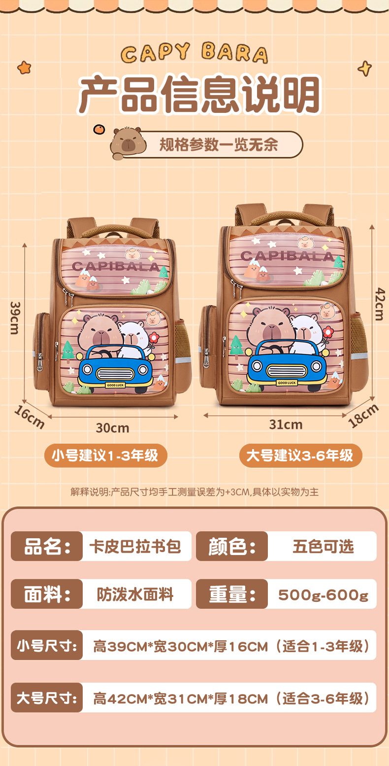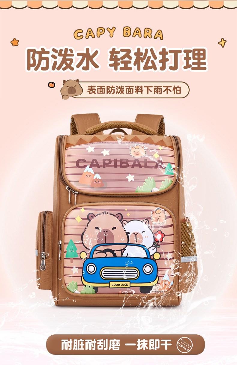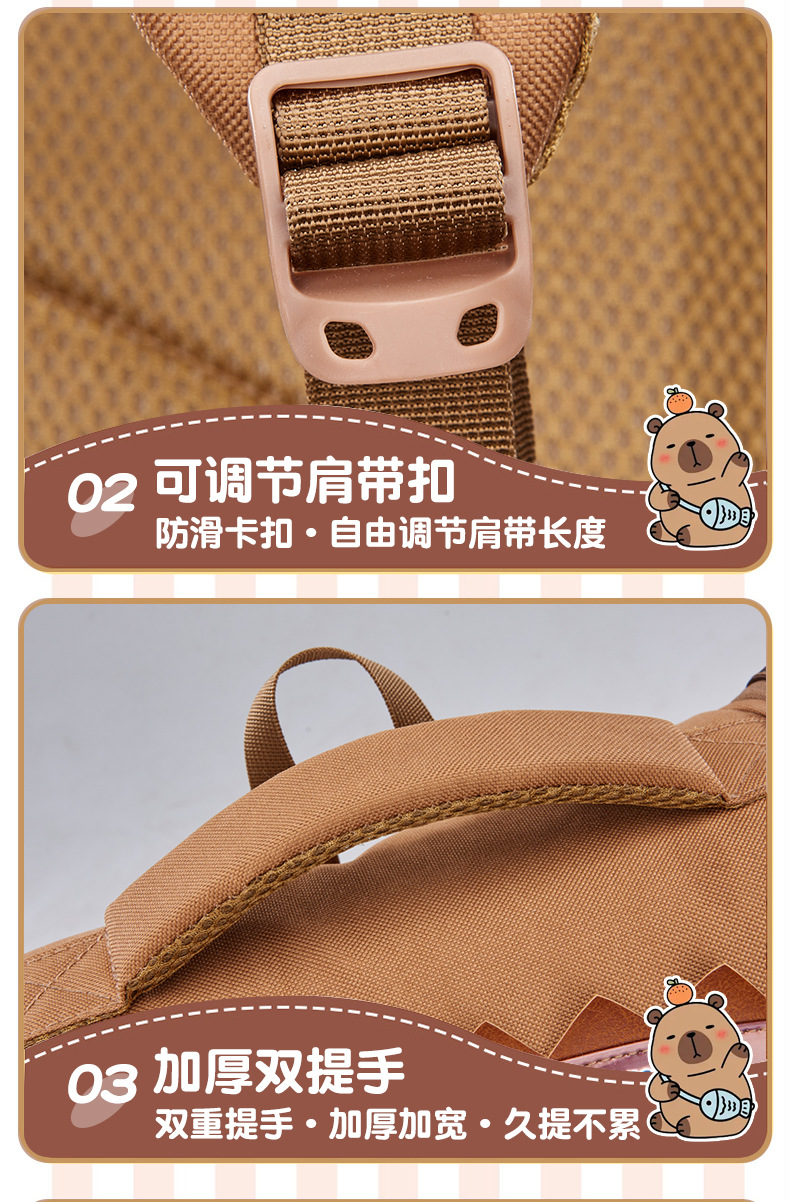 卡皮巴拉萌趣儿童双肩包小学生必备书包结实耐用卡通大容量反光条