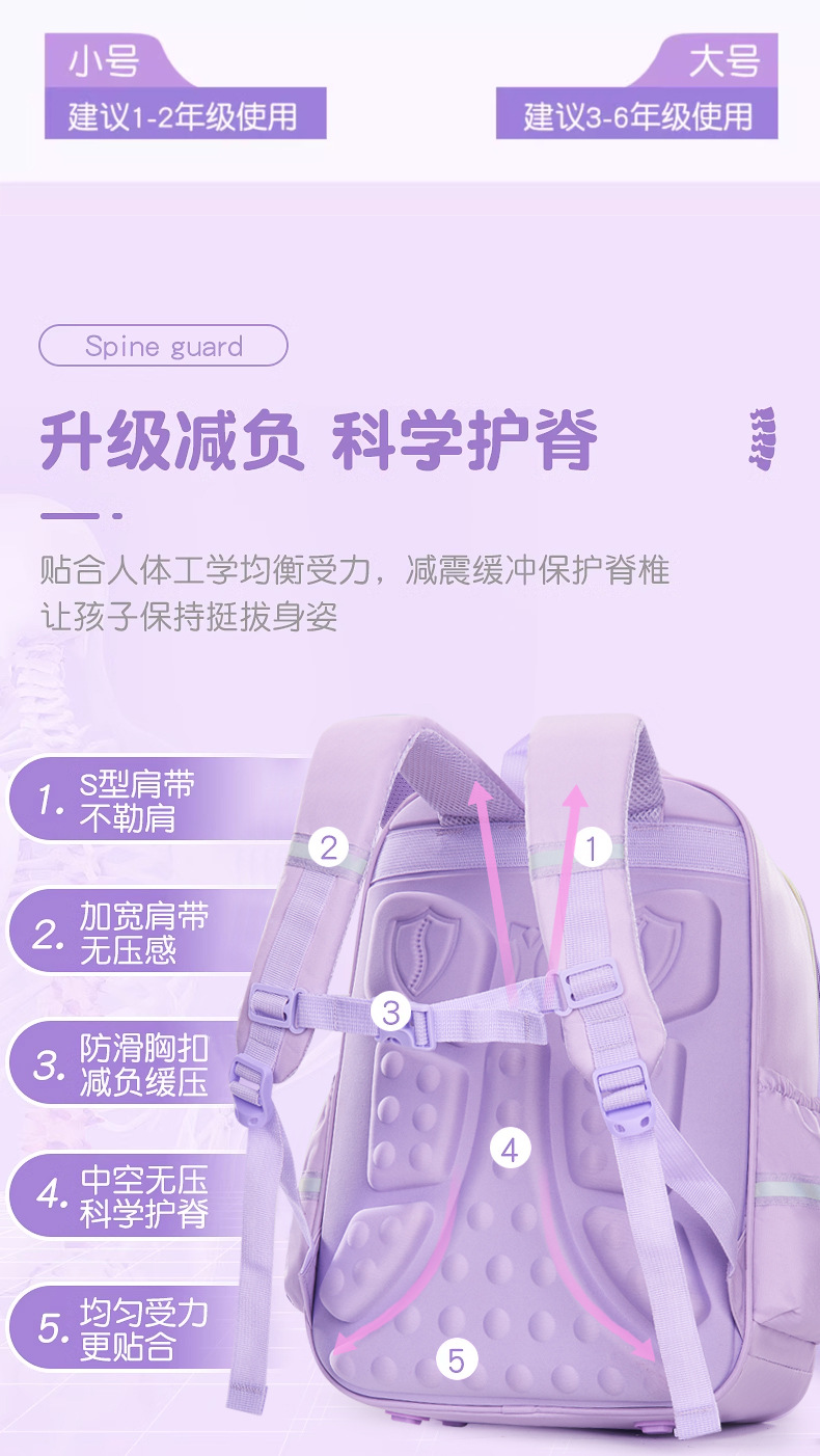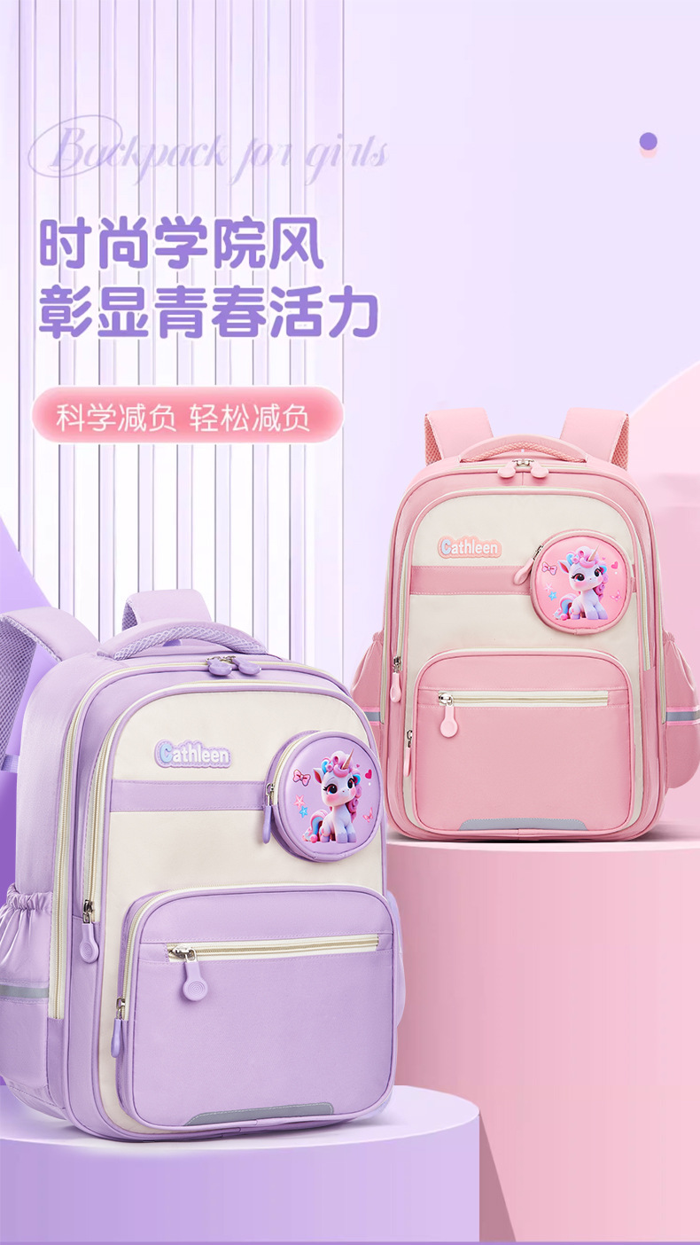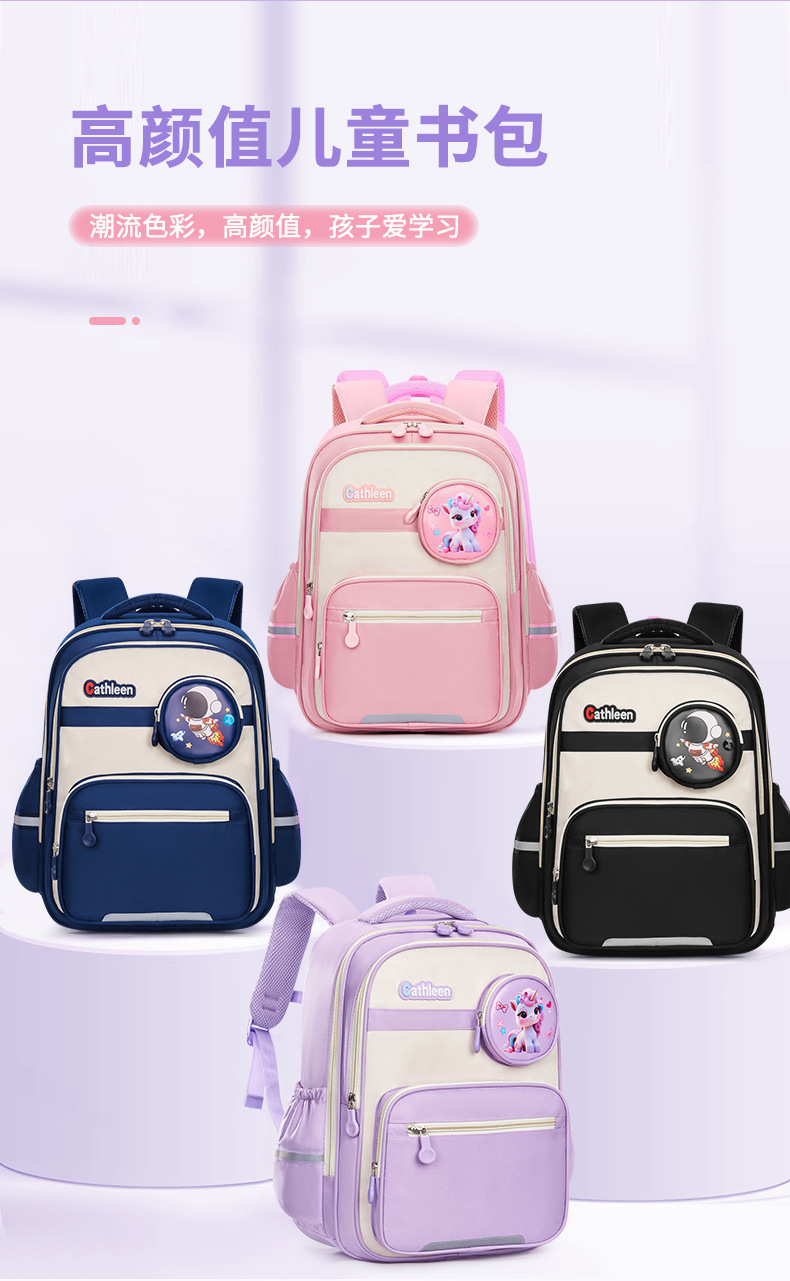 卡通小学生书包6-12岁减负护脊学院风男女款宝莉太空人儿童双肩包