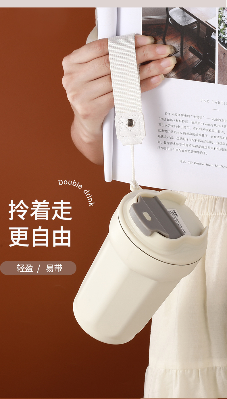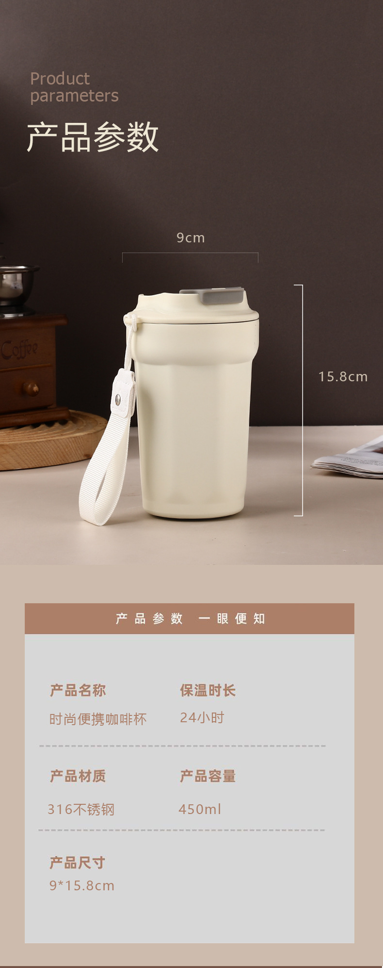 礼盒装316不锈钢保温杯高颜值八角咖啡杯户外便携提绳车载随手杯