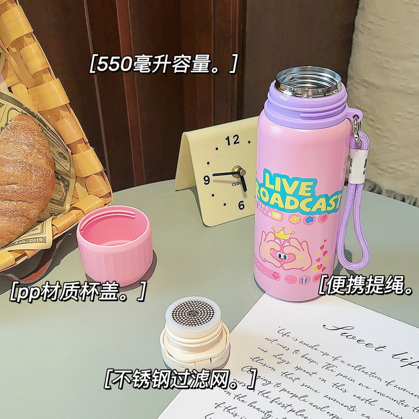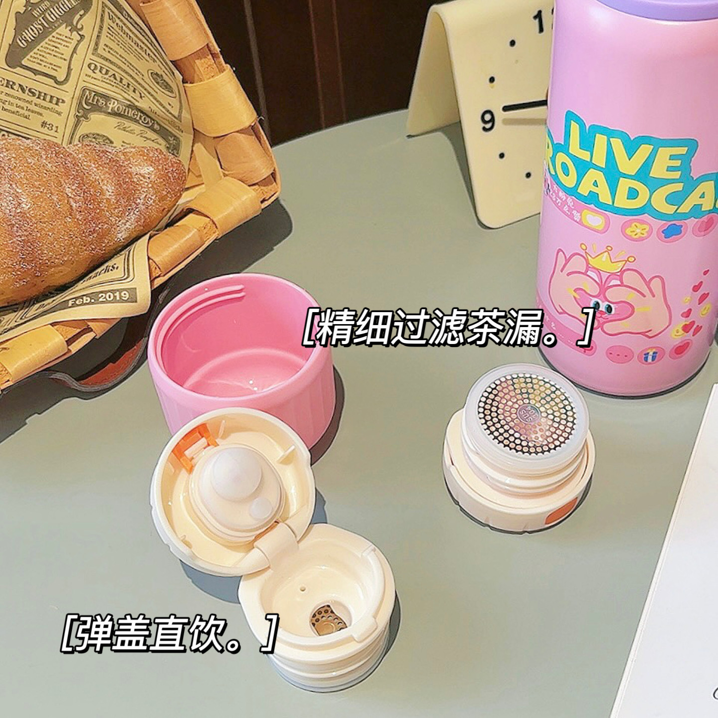 多巴胺保温杯女生高颜值过滤茶水杯不锈钢涂鸦杯子可爱便携水杯