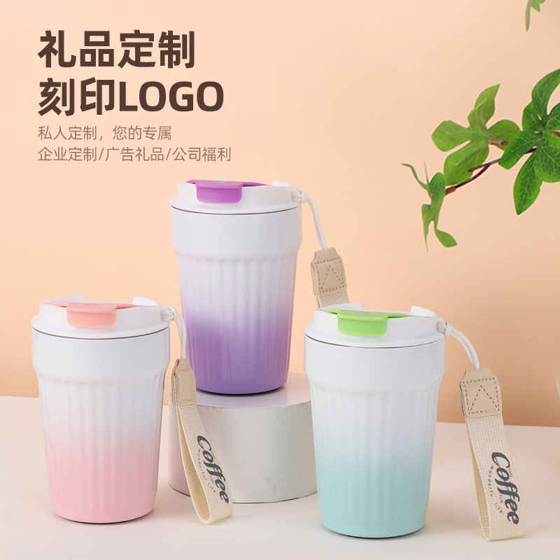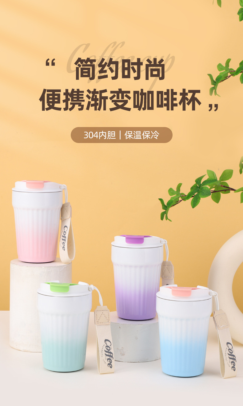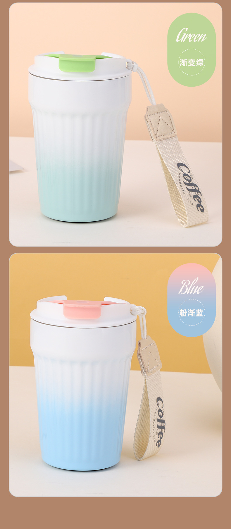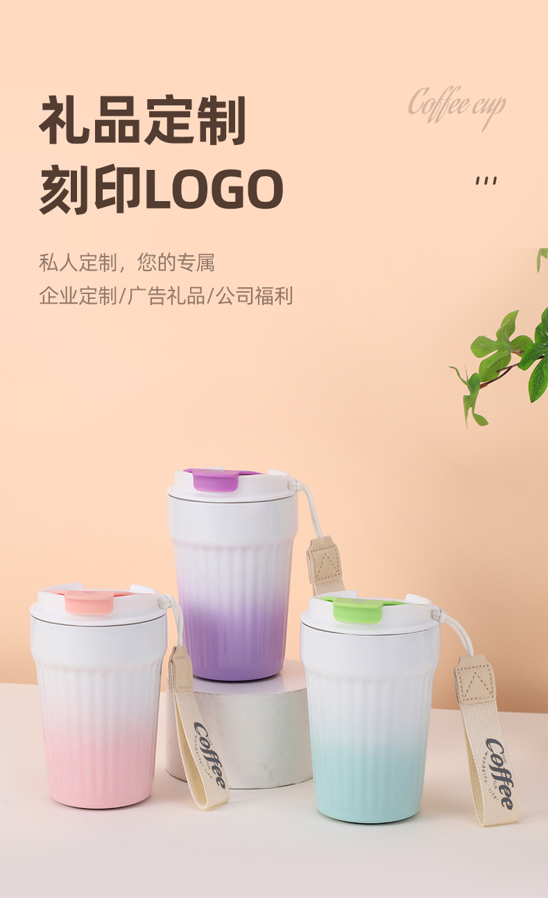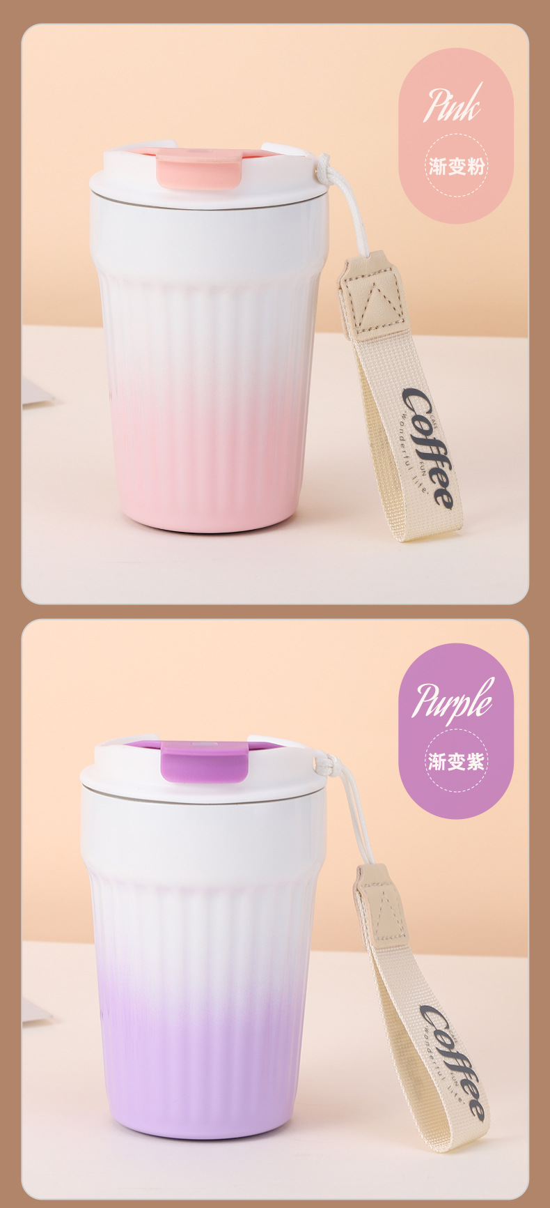 新款渐变高颜值咖啡杯保温杯保冷随行杯小巧带提绳便携女士汽车杯