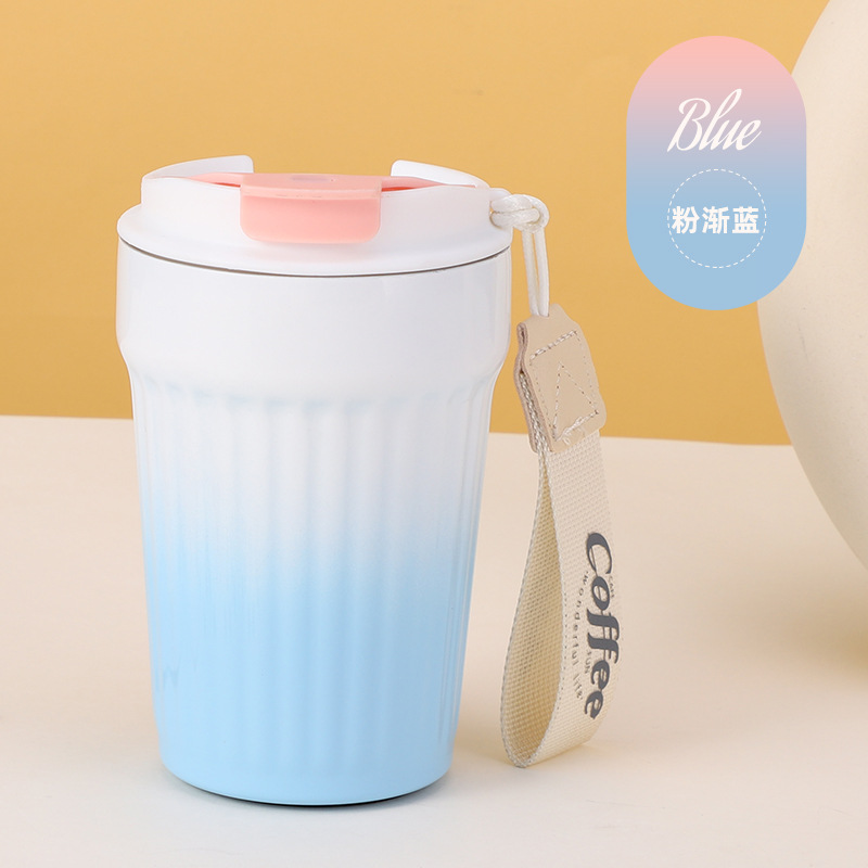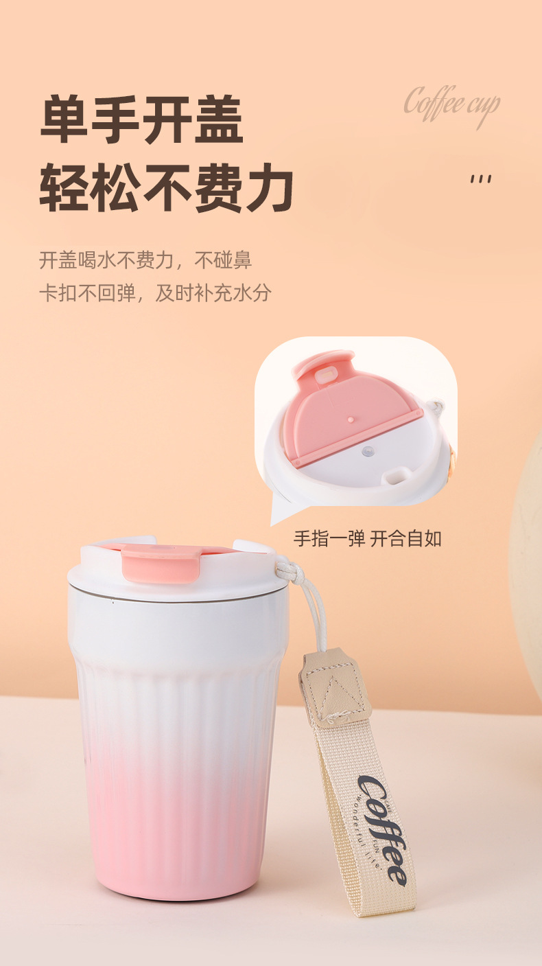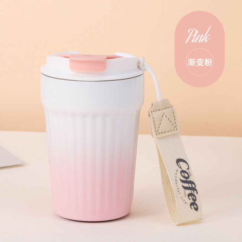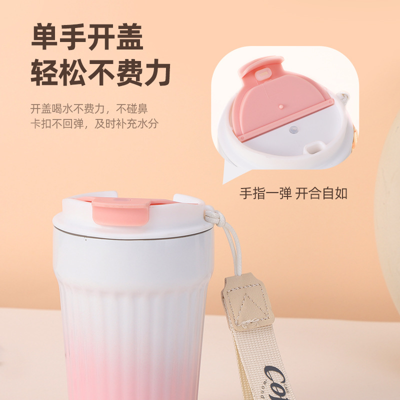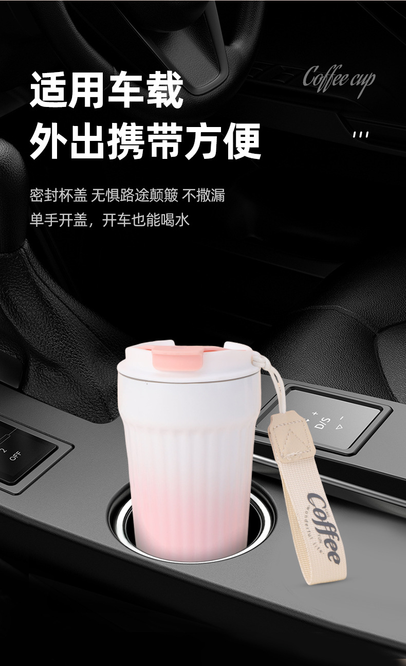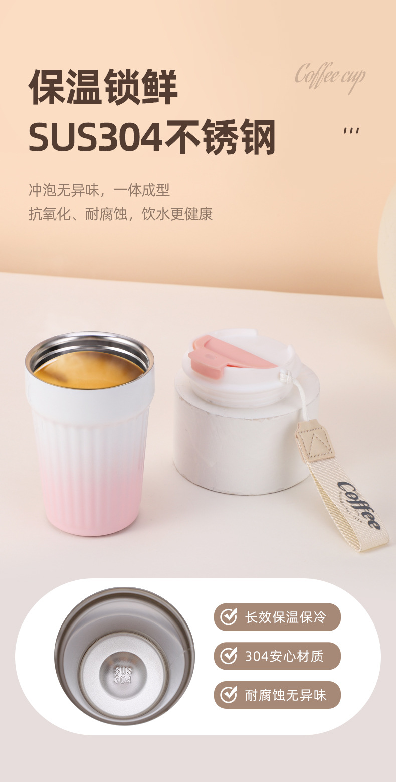 新款渐变高颜值咖啡杯保温杯保冷随行杯小巧带提绳便携女士汽车杯