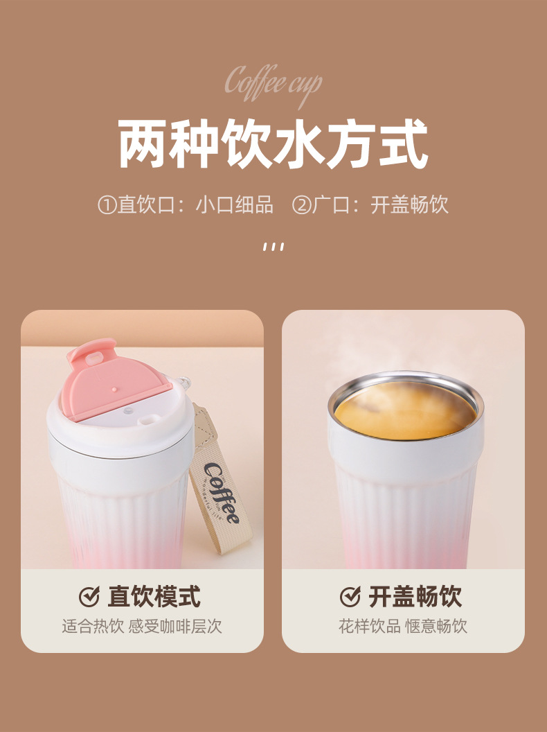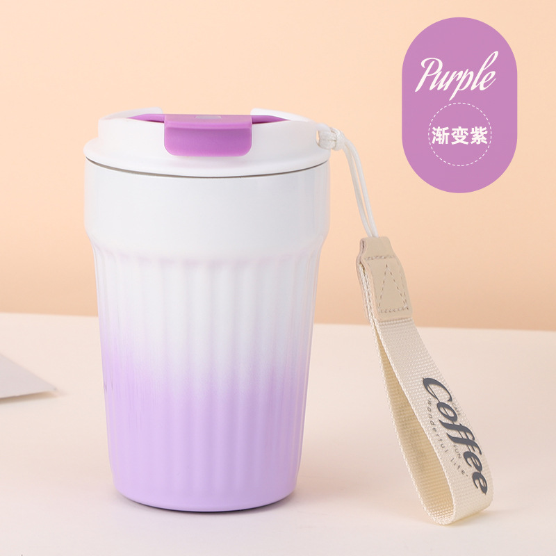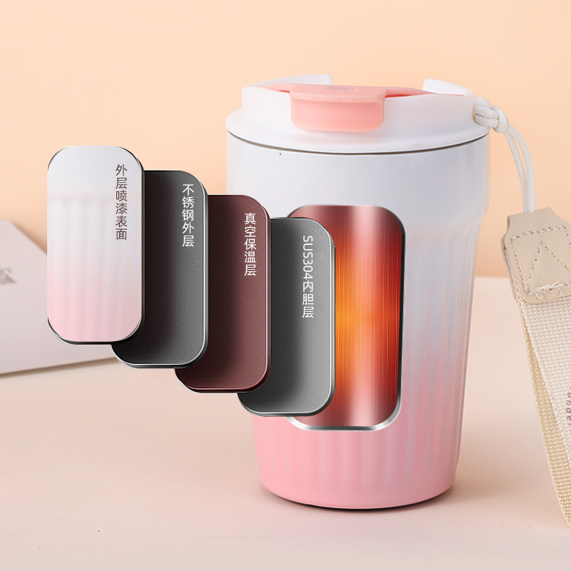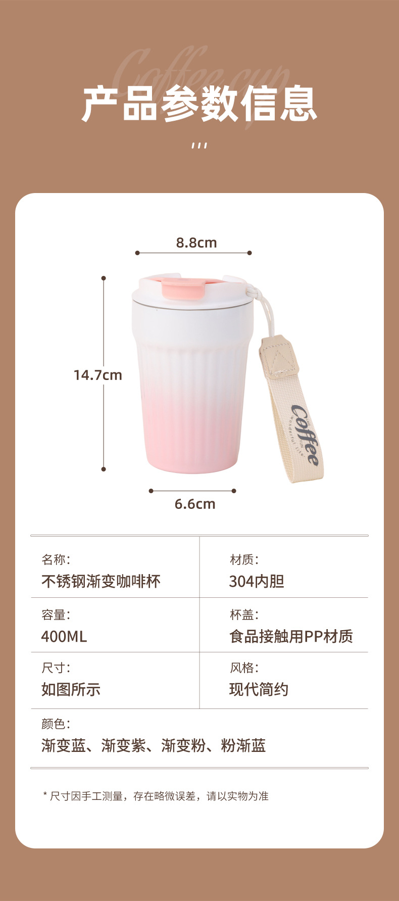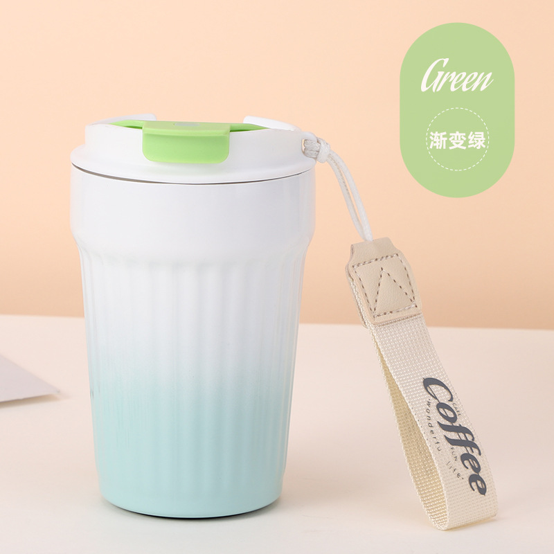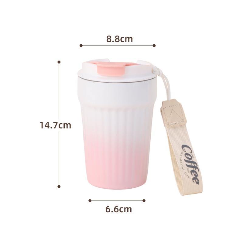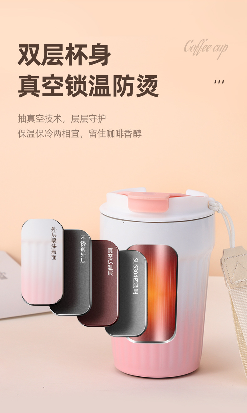 新款渐变高颜值咖啡杯保温杯保冷随行杯小巧带提绳便携女士汽车杯