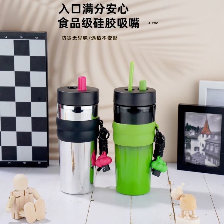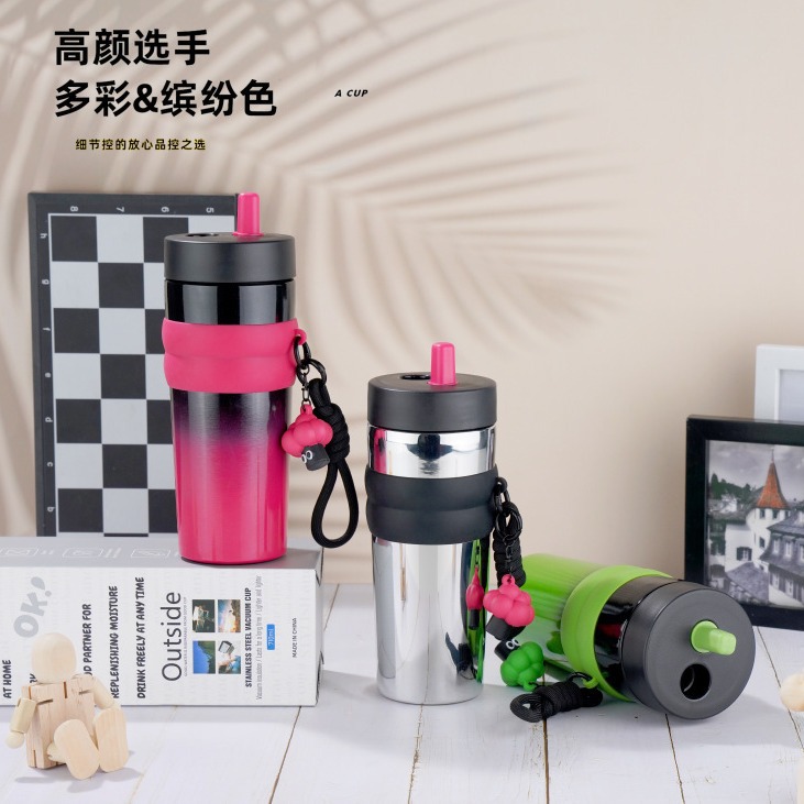 新款渐变吸管咖啡保温杯316不锈钢大容量高颜值户外旅行男女水杯