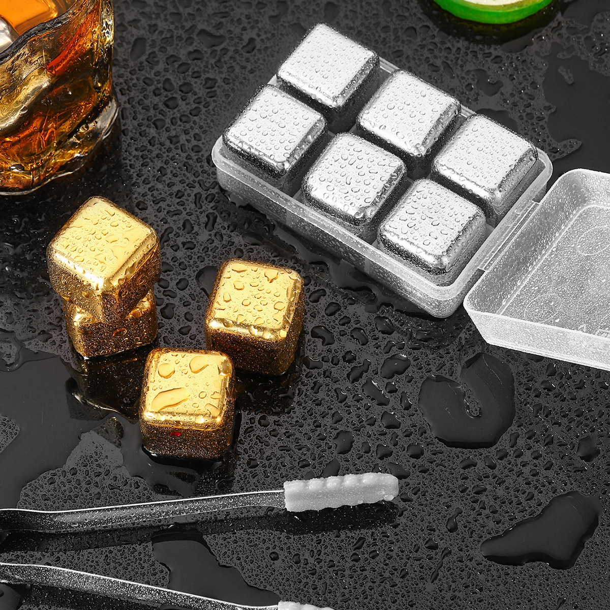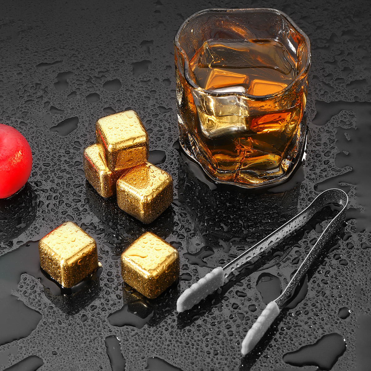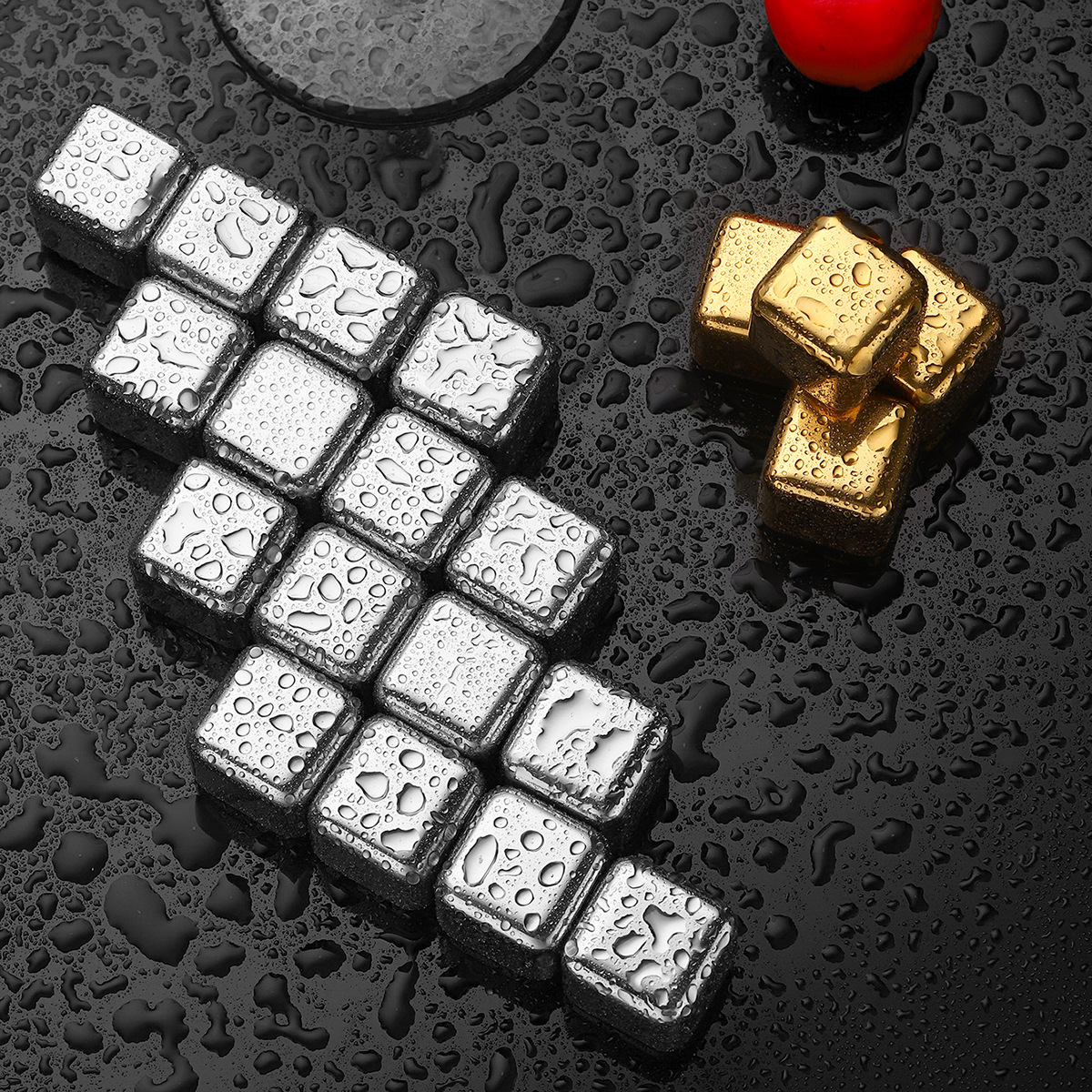 跨境不锈钢304冰块速冻冰酒石套装食品级金属冰粒红酒威士忌冰块