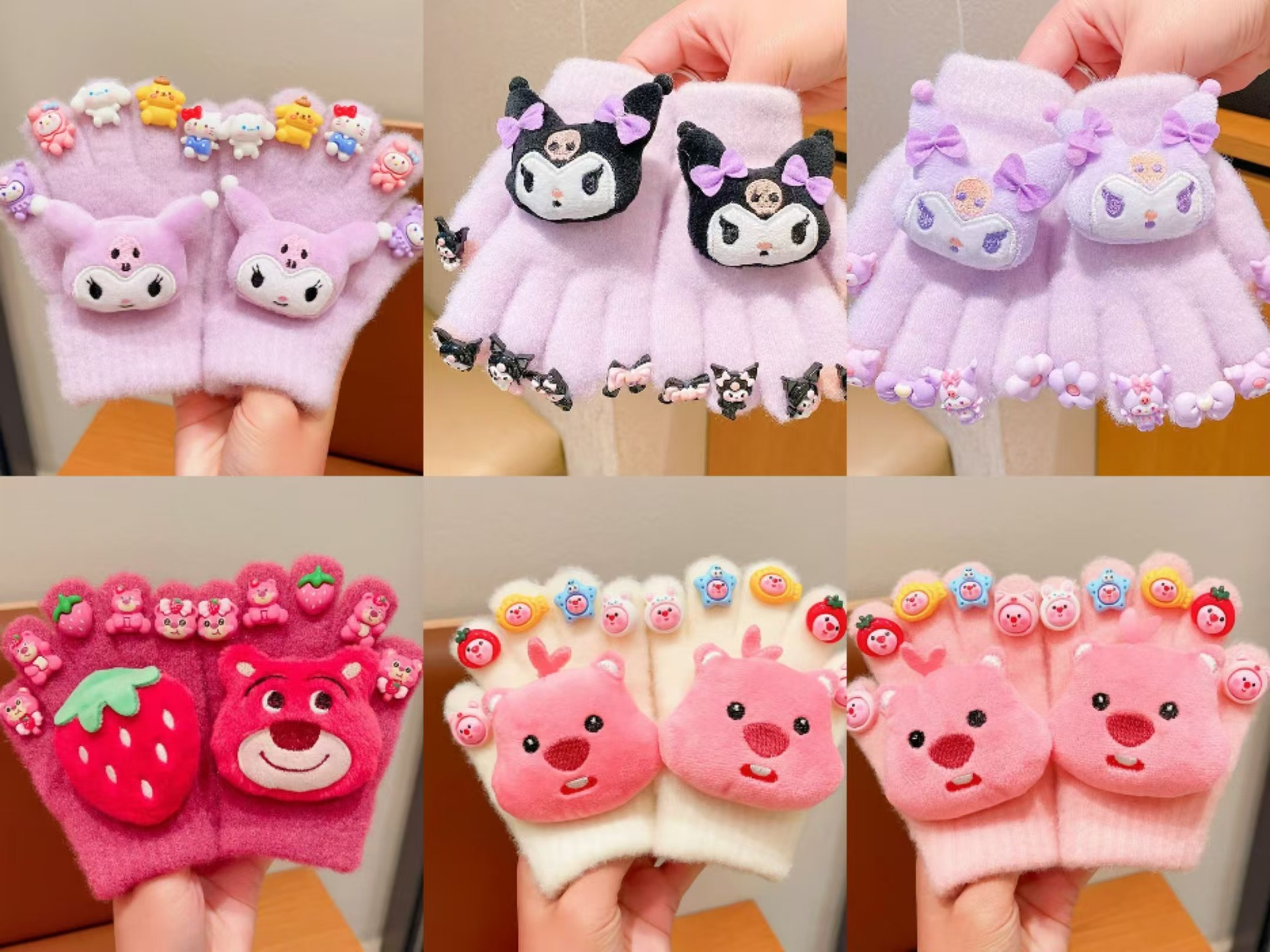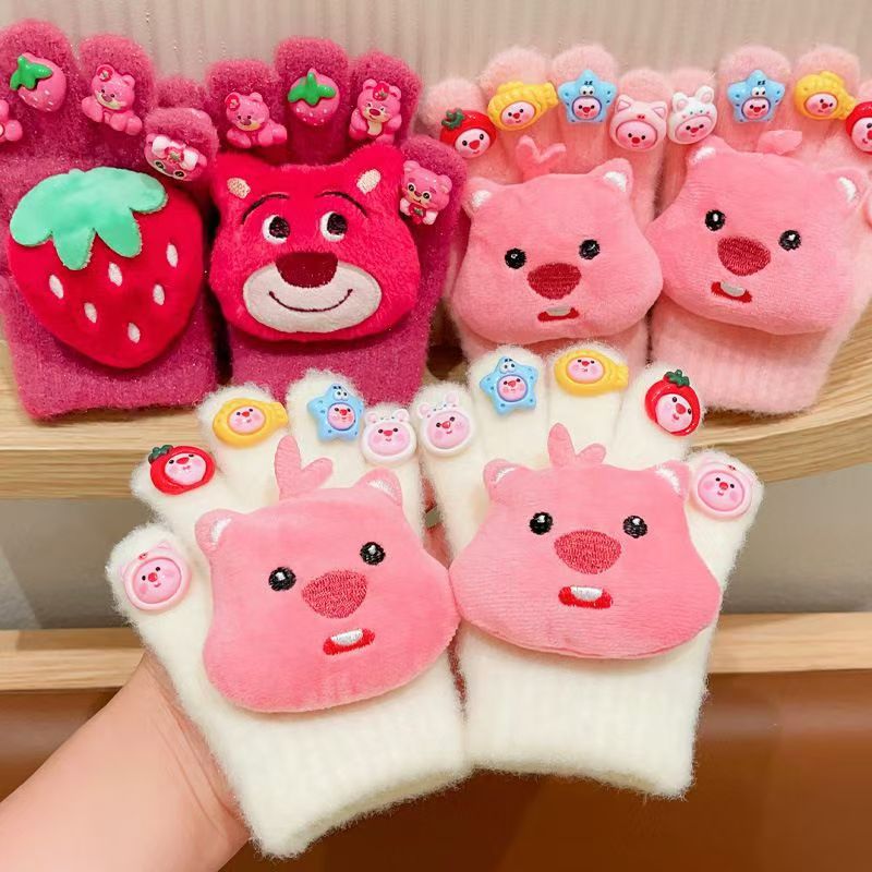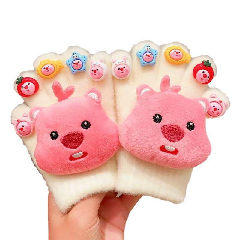 儿童手套秋冬可爱女童五指卡通毛绒五指手套小女孩防风保暖分指套