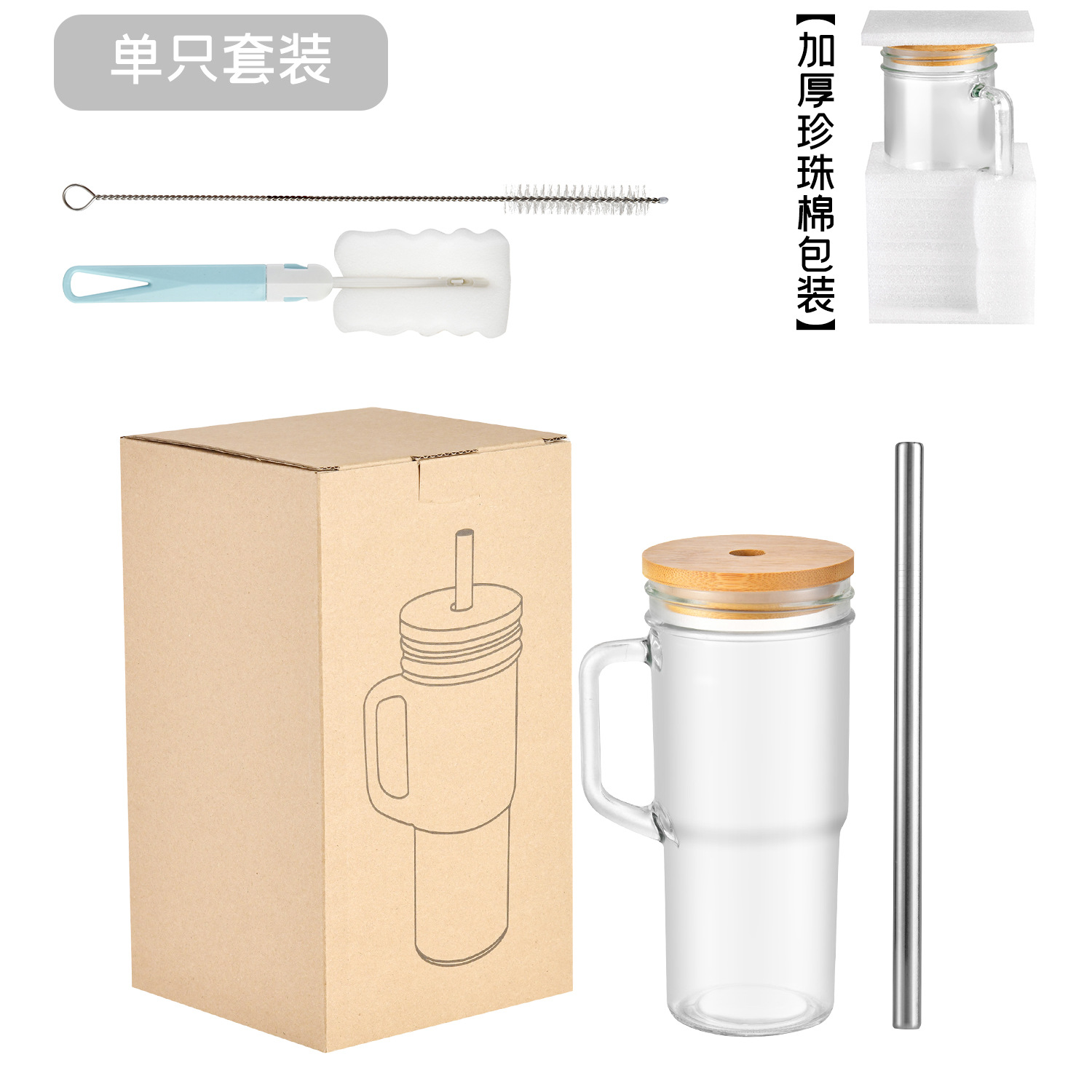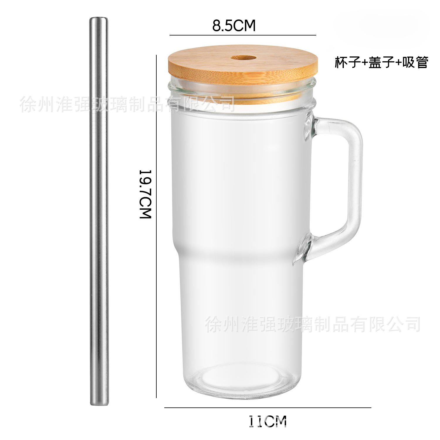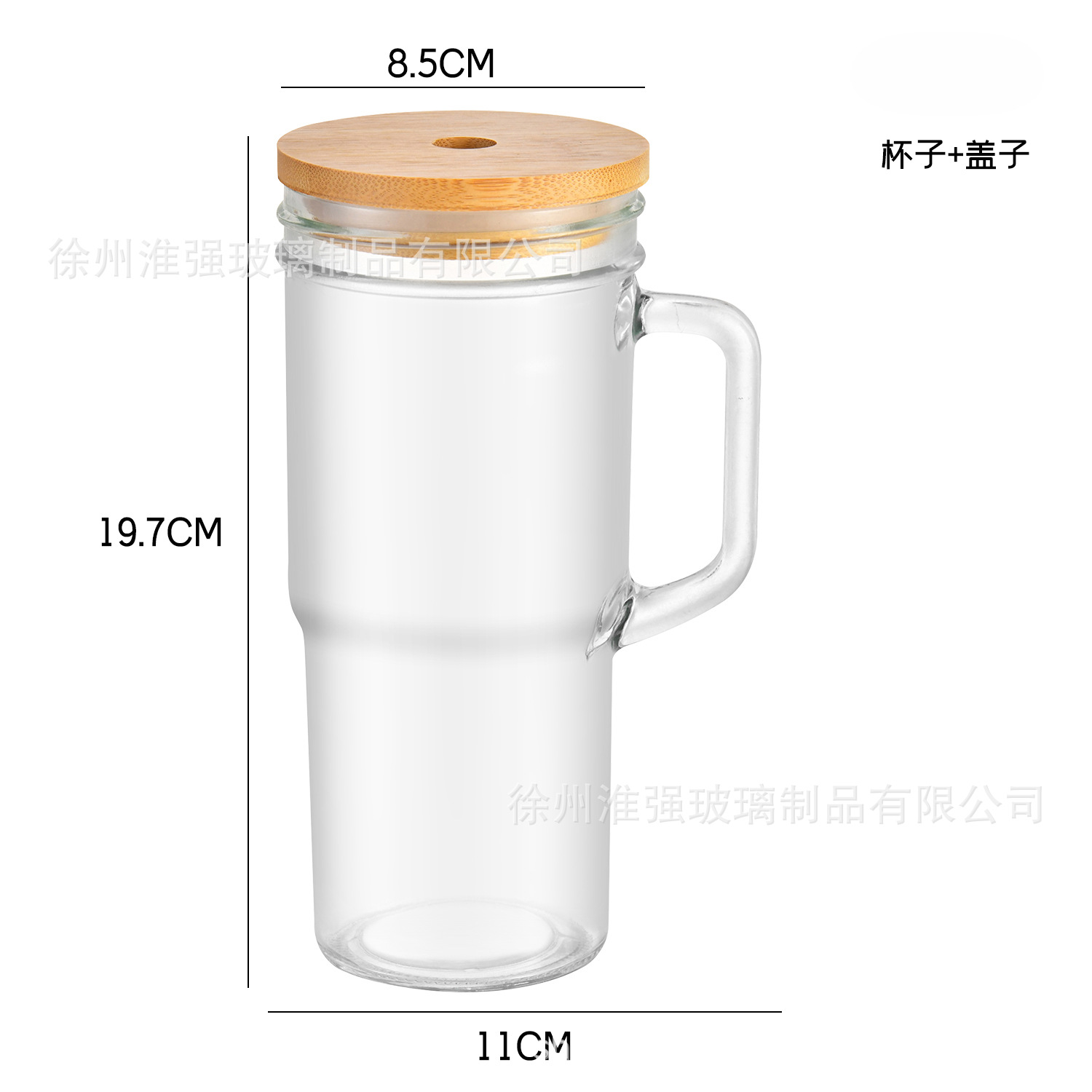 亚马逊热销24oz把手梅森杯车载冰霸杯木盖啤酒杯玻璃吸管杯奶茶杯