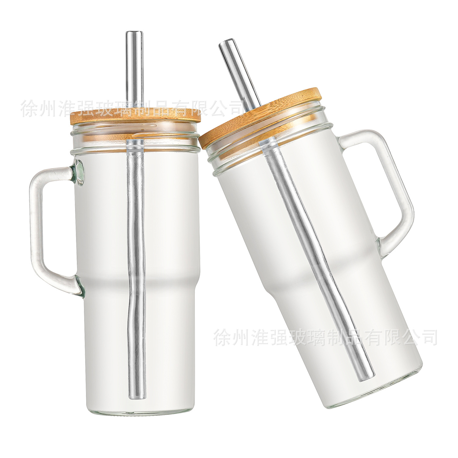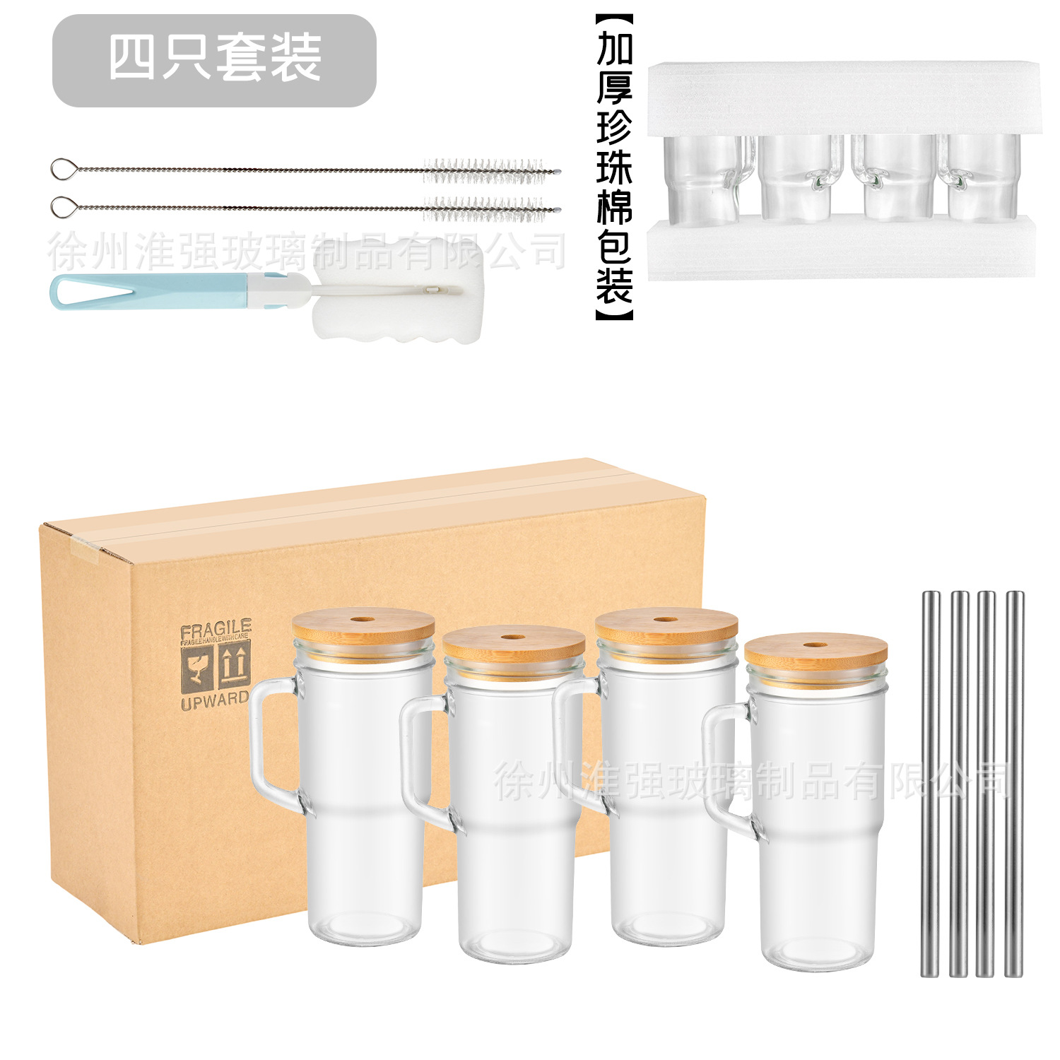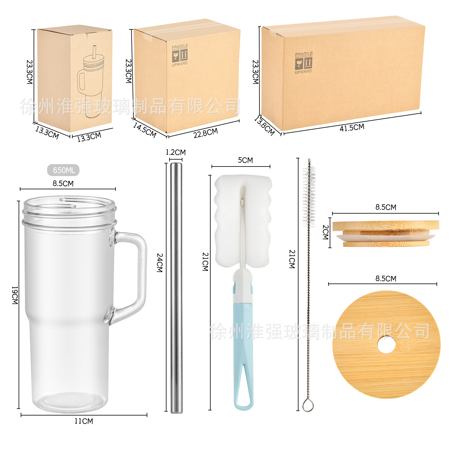 亚马逊热销24oz把手梅森杯车载冰霸杯木盖啤酒杯玻璃吸管杯奶茶杯