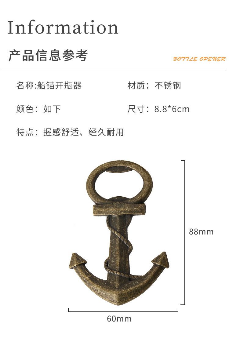 新款创意船锚开瓶器欧美婚庆派对生日聚会小礼品锌合金啤酒瓶起子