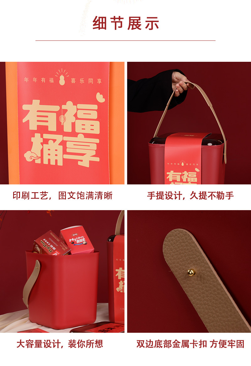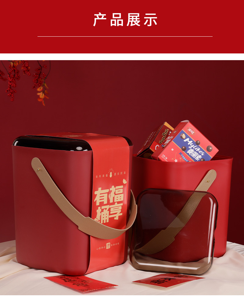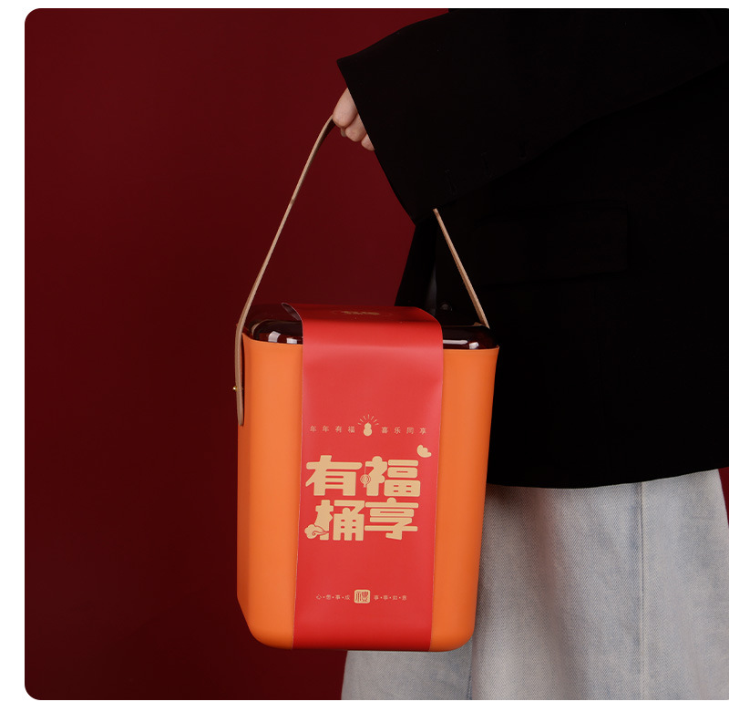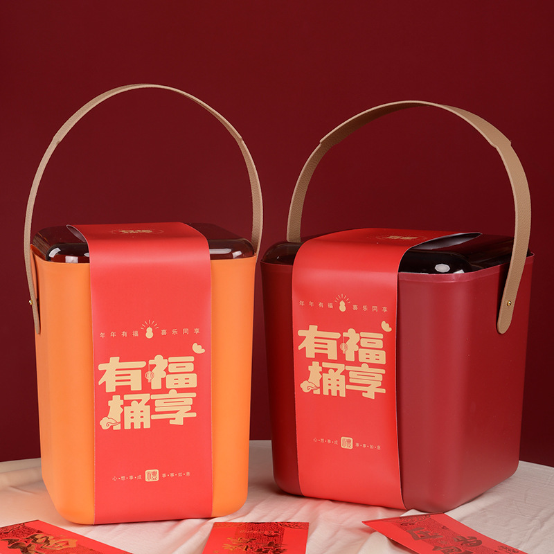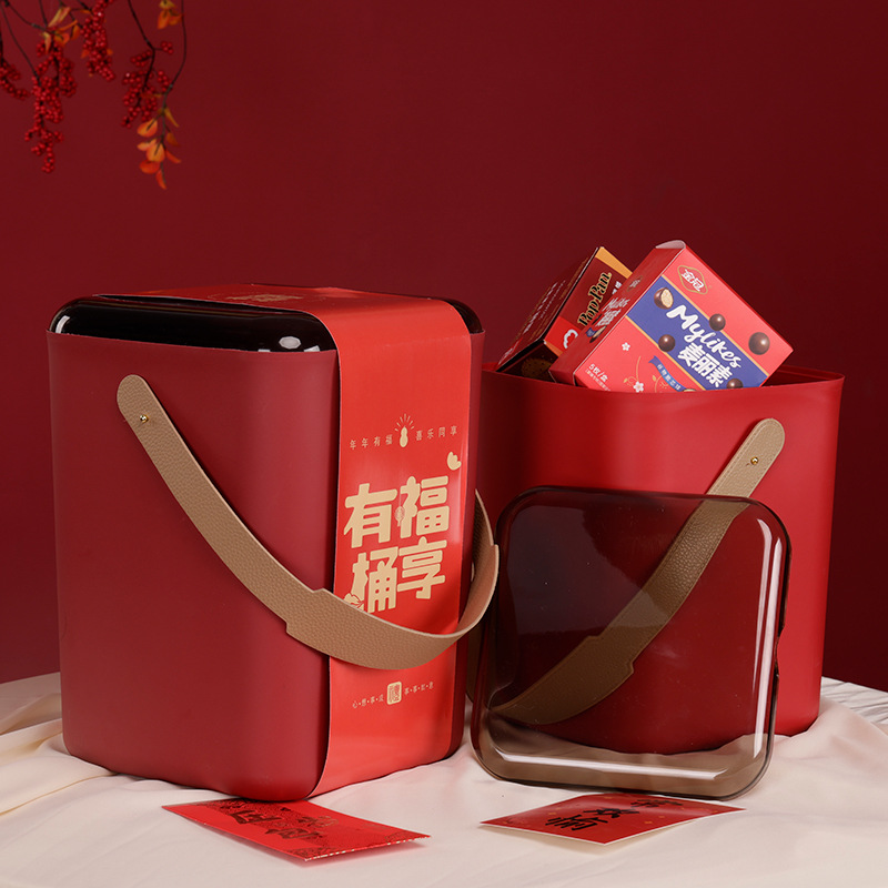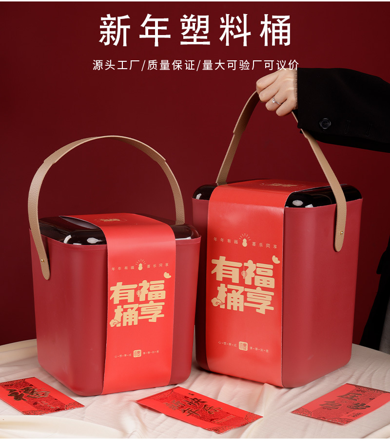 蛇年新年礼盒年货塑料抱抱桶高级感礼品盒收纳箱零食福桶包装盒子