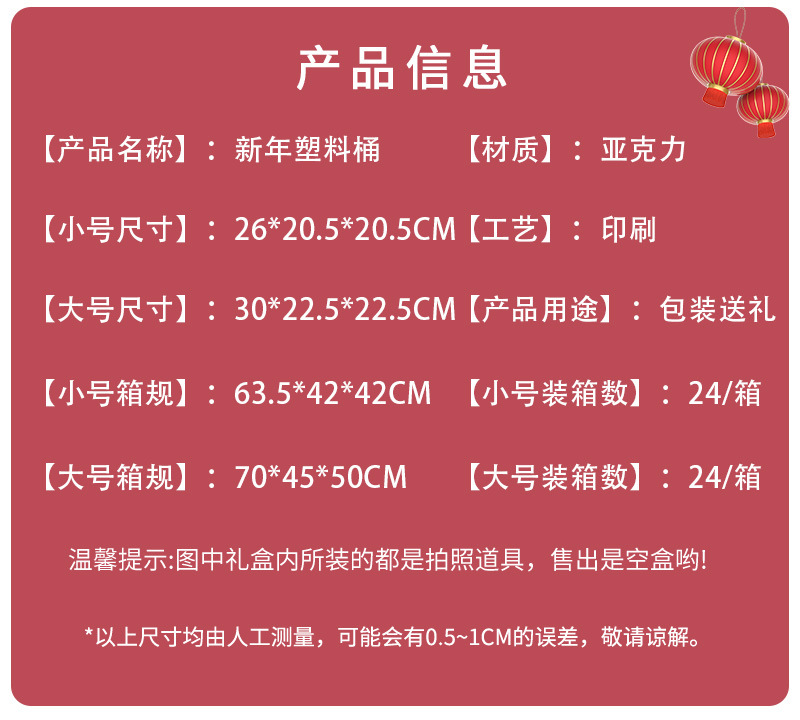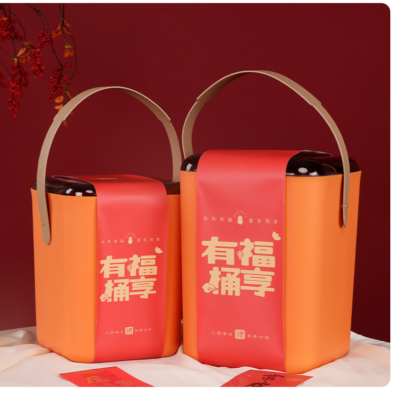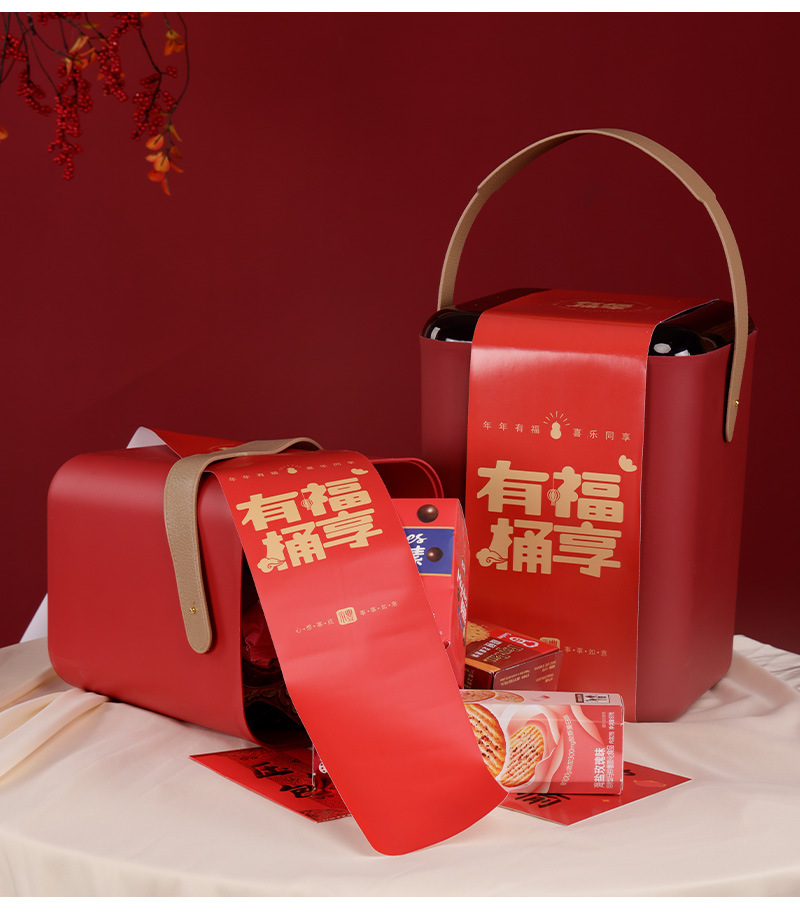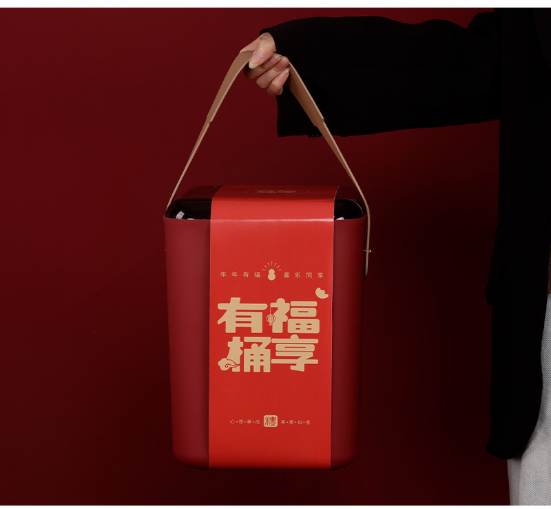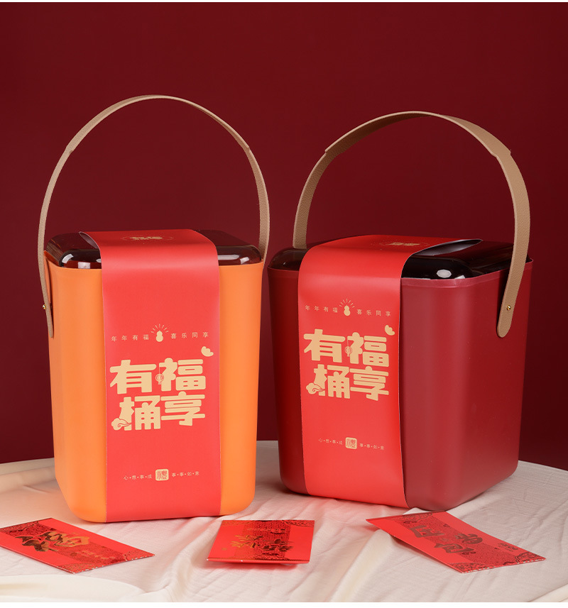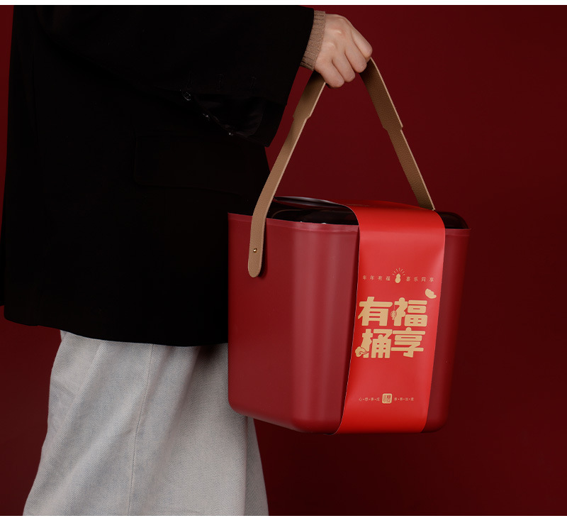 蛇年新年礼盒年货塑料抱抱桶高级感礼品盒收纳箱零食福桶包装盒子