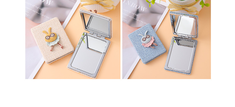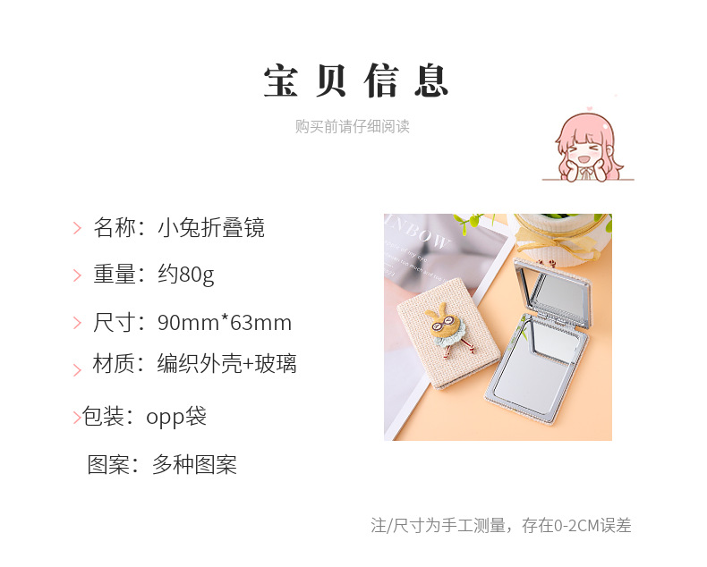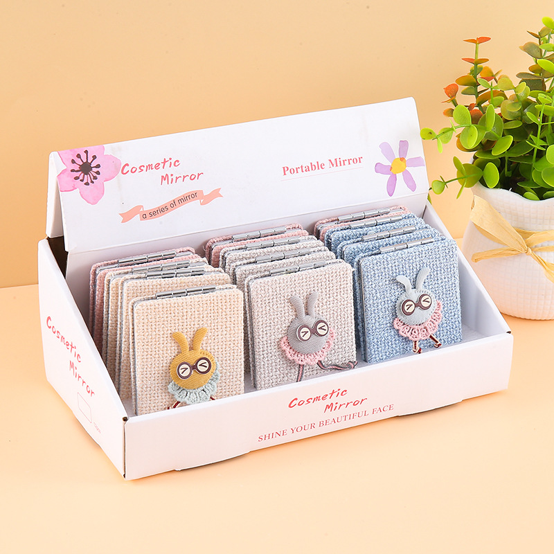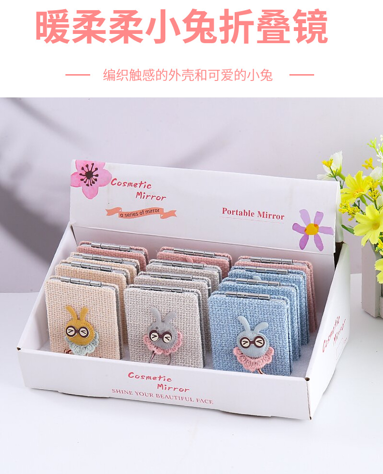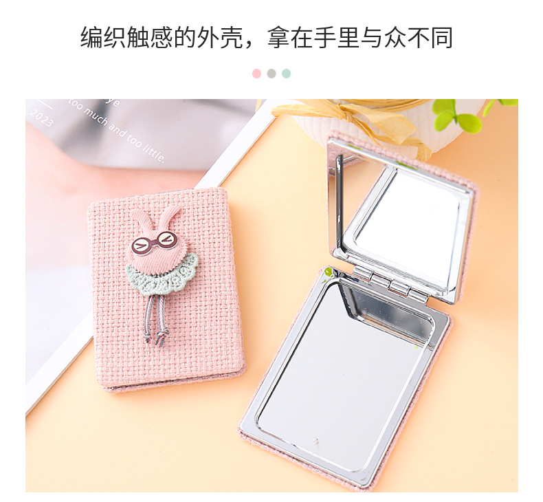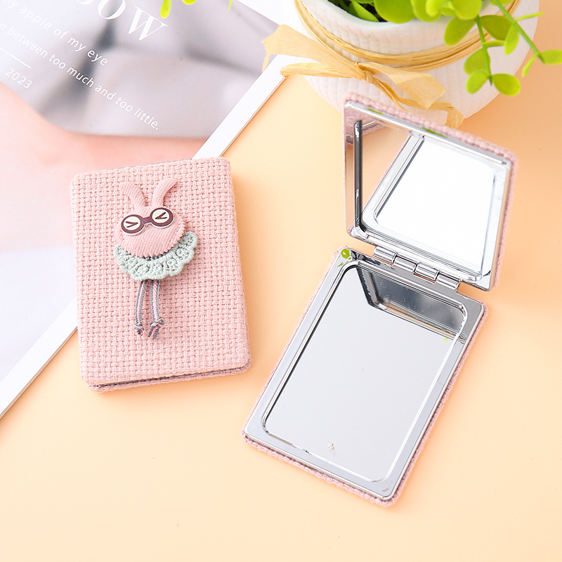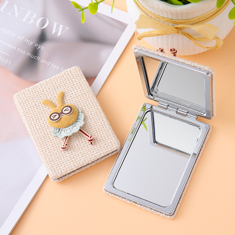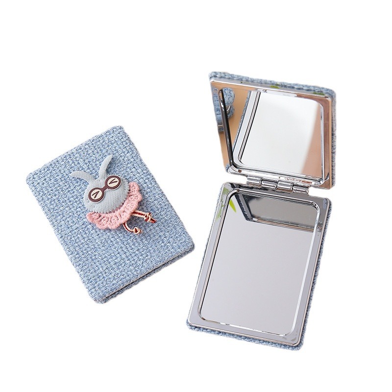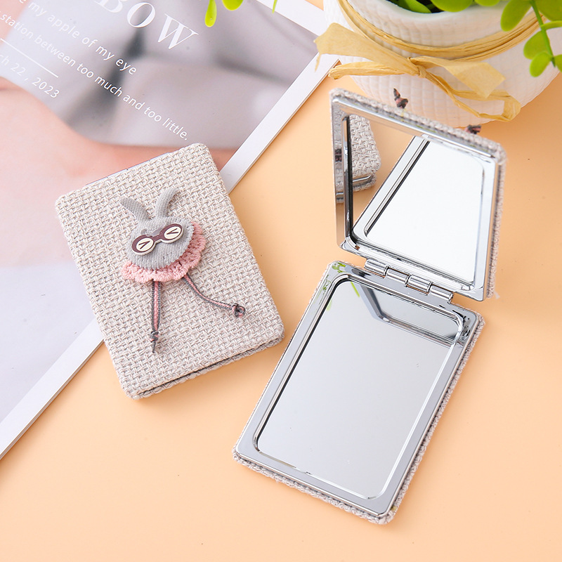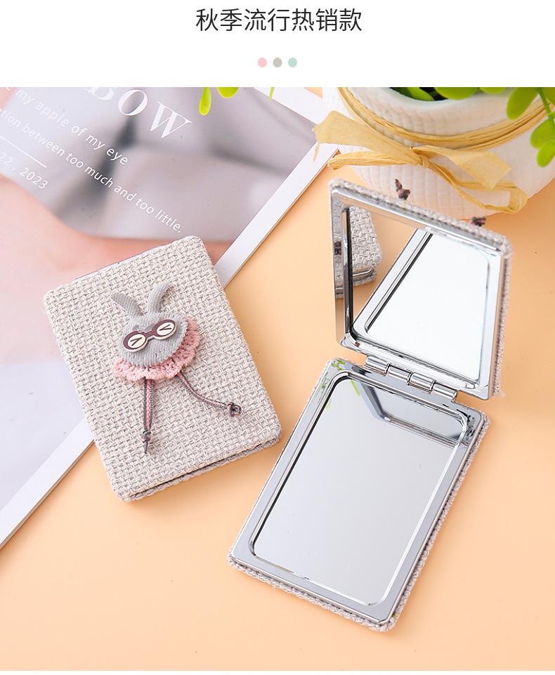卡通可爱布艺双面口袋镜学生随身高清化妆镜长方形小镜子礼品促销