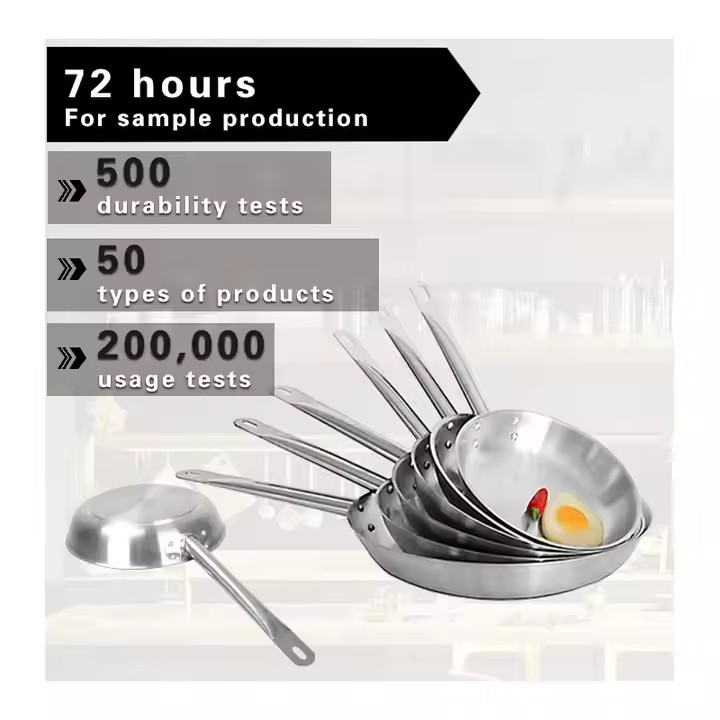 商用单柄不锈钢平底锅家用无涂层牛排煎盘西餐厅煎锅