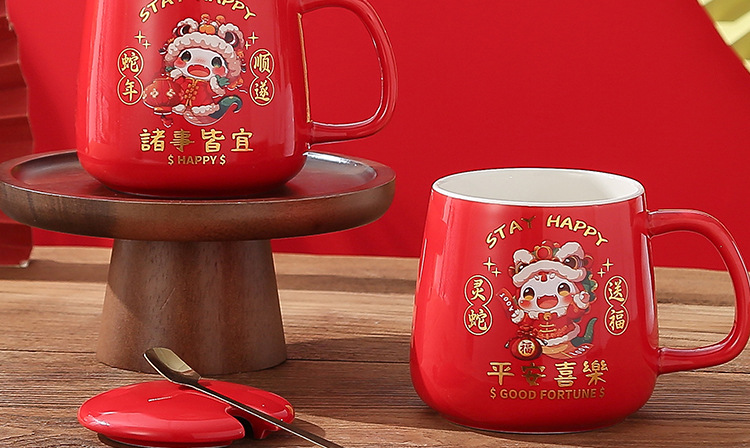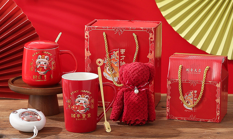 新年陶瓷杯礼盒装蛇年水杯套装伴手礼赠送礼品马克杯随手礼可刻字