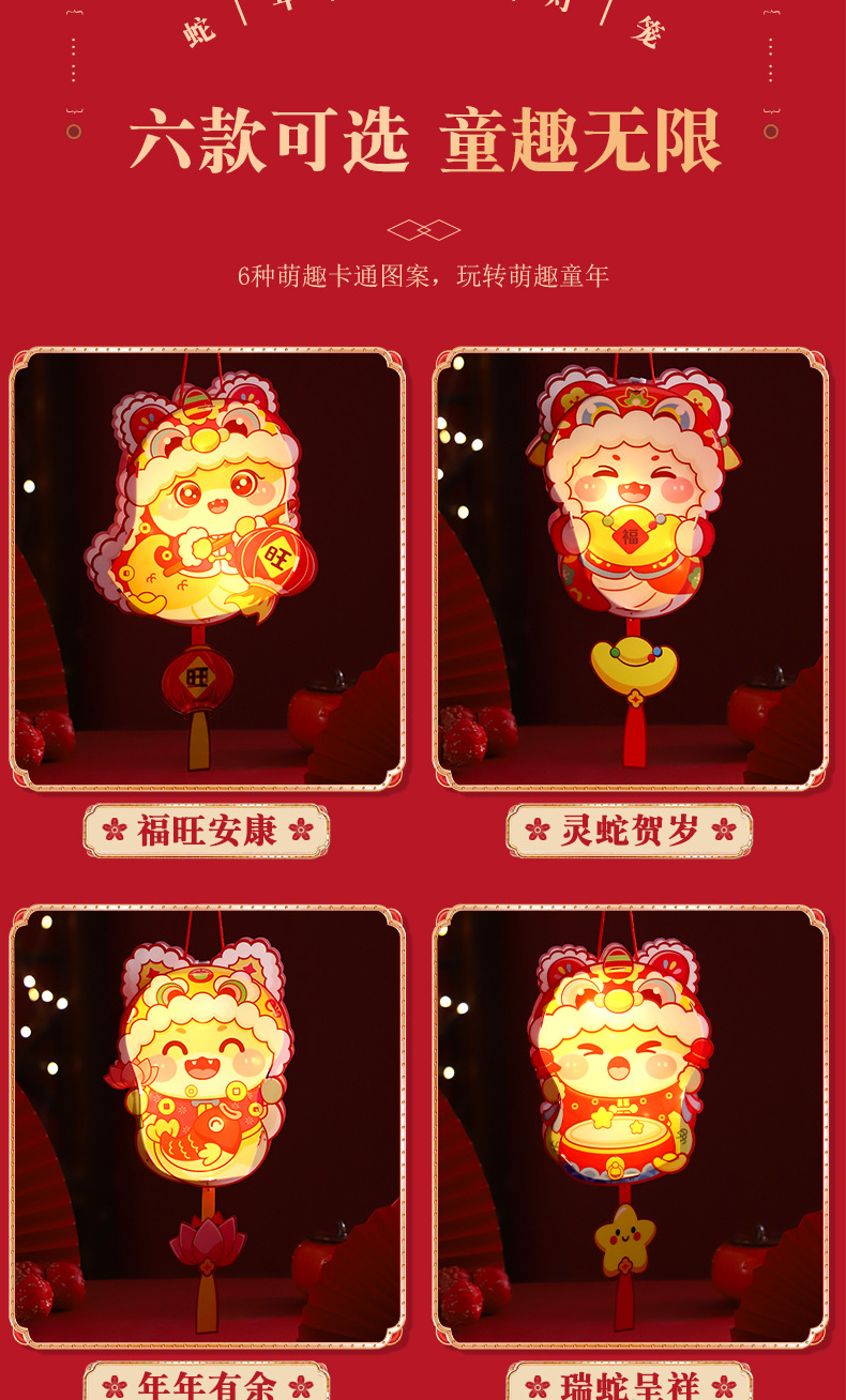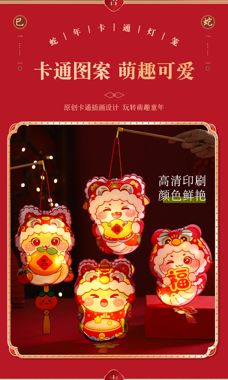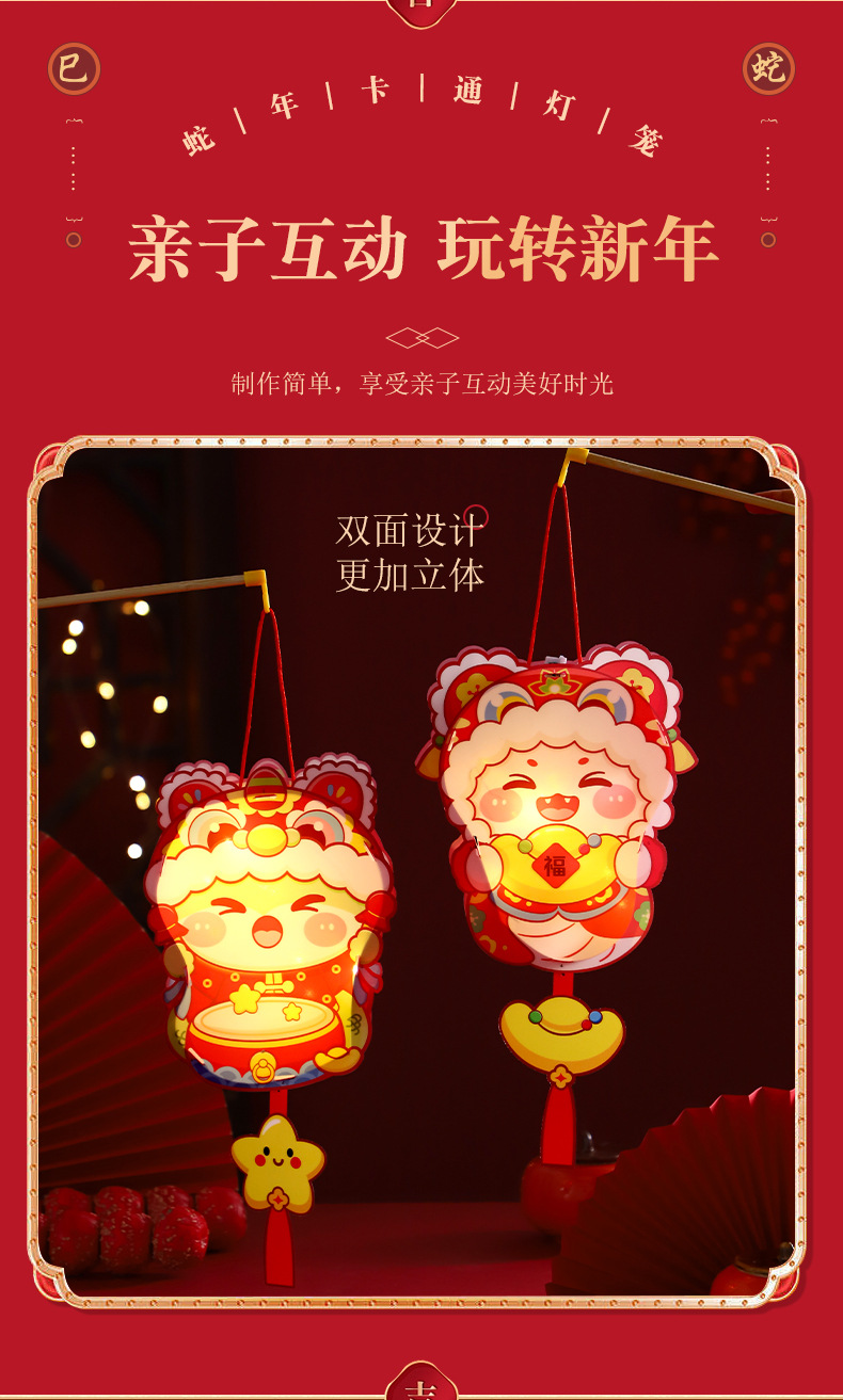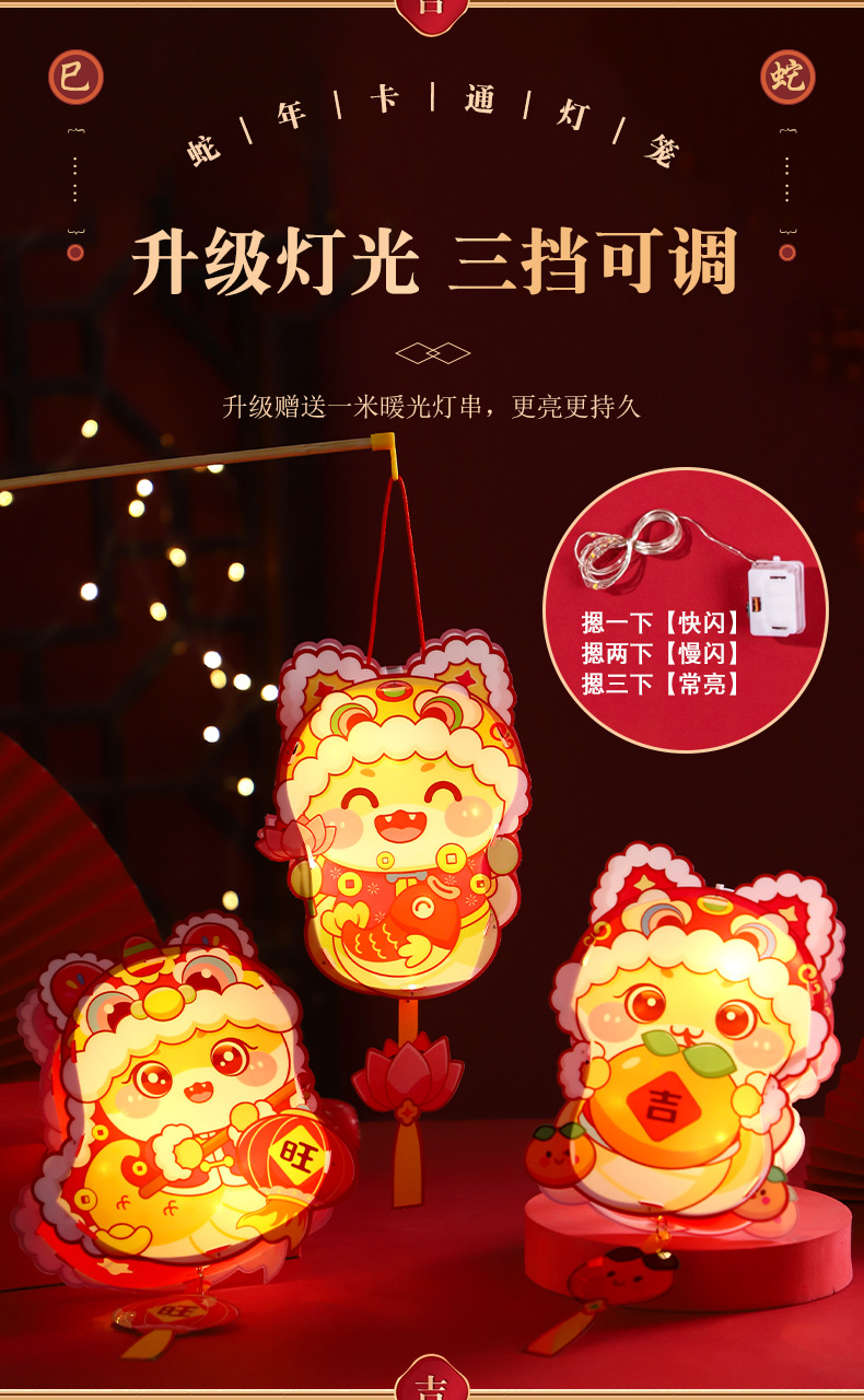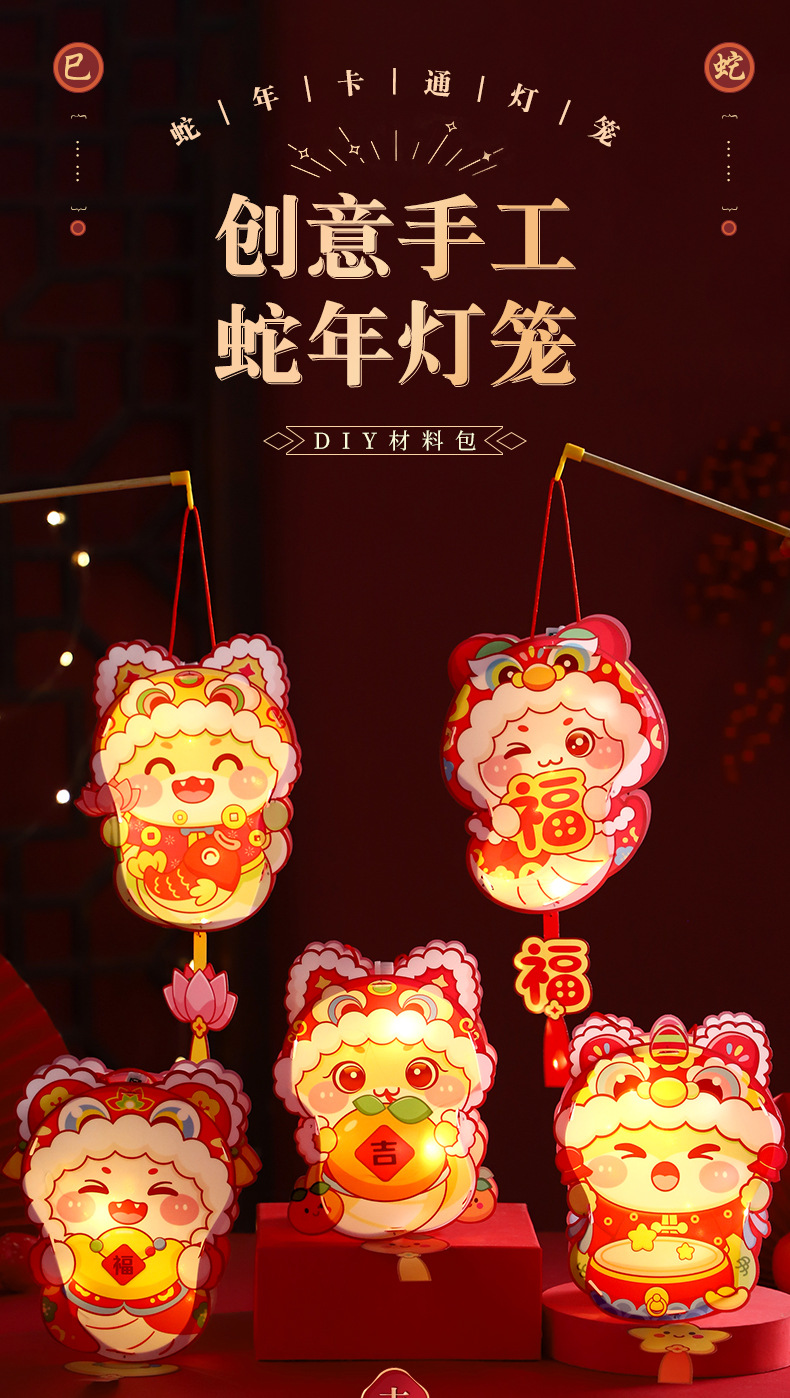 2025新款灯笼手工diy儿童手提蛇年花灯材料幼儿园新年卡通小灯笼