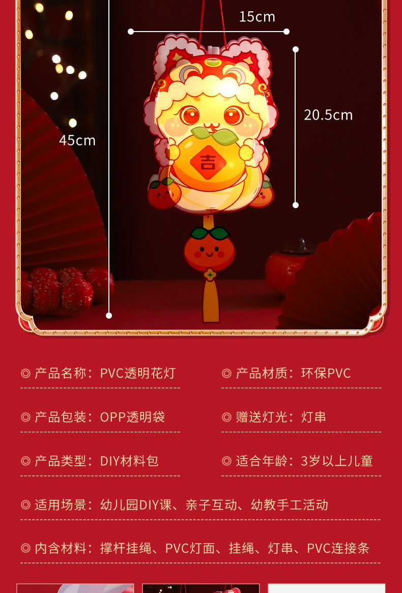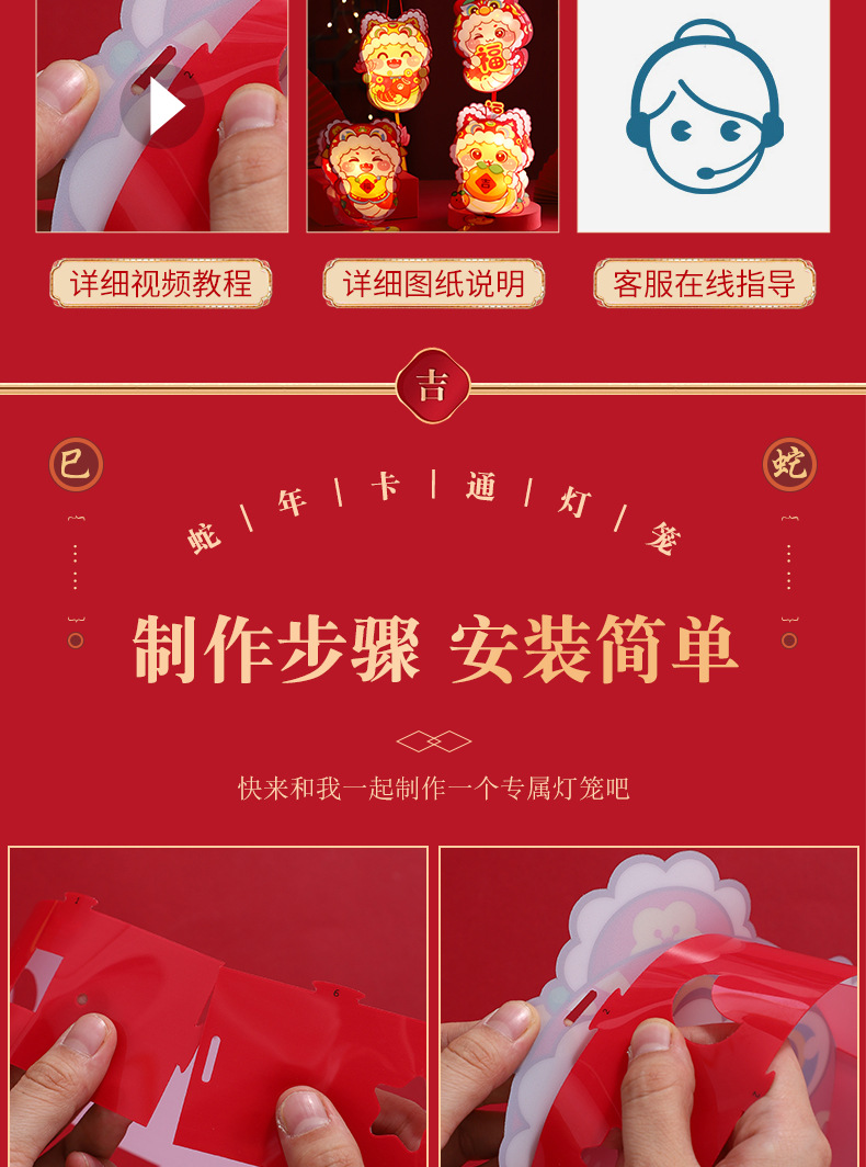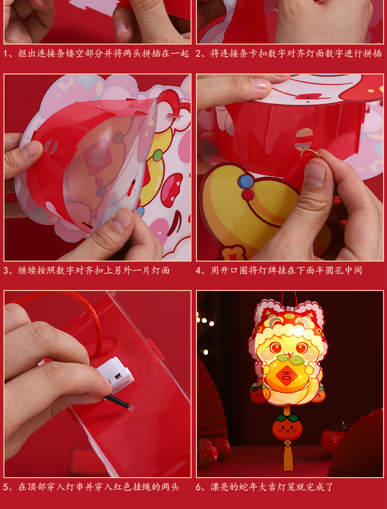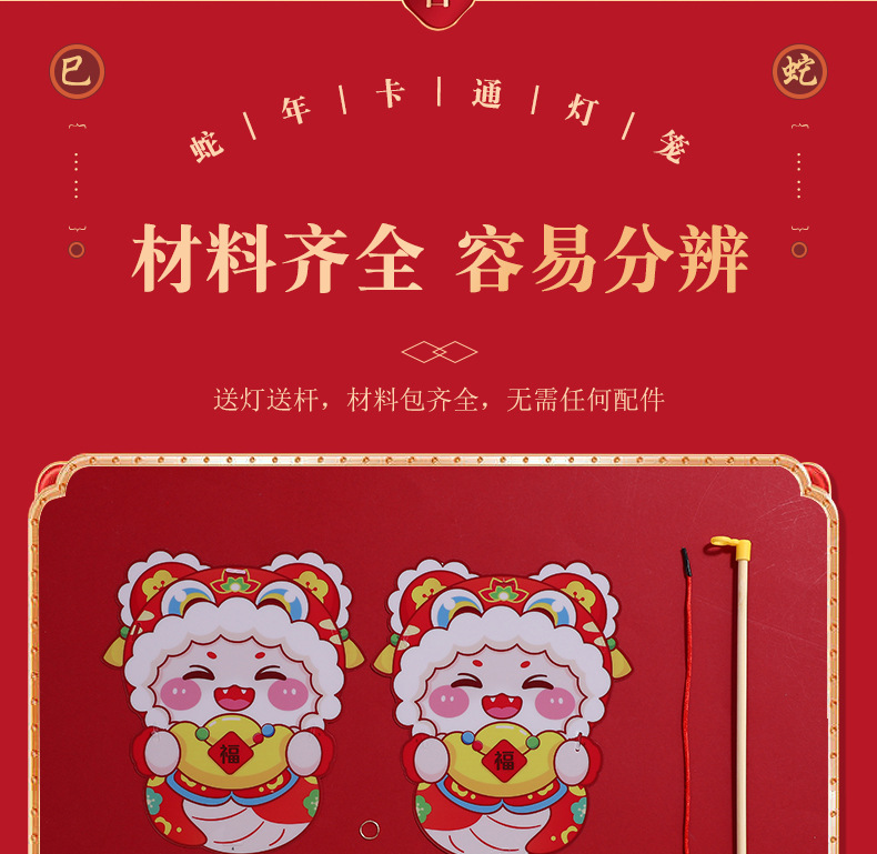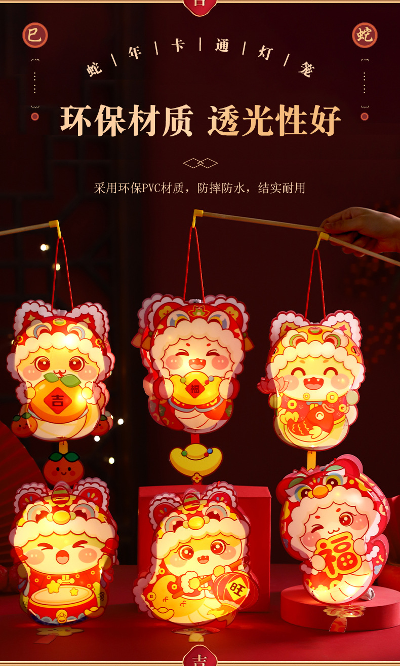 2025新款灯笼手工diy儿童手提蛇年花灯材料幼儿园新年卡通小灯笼