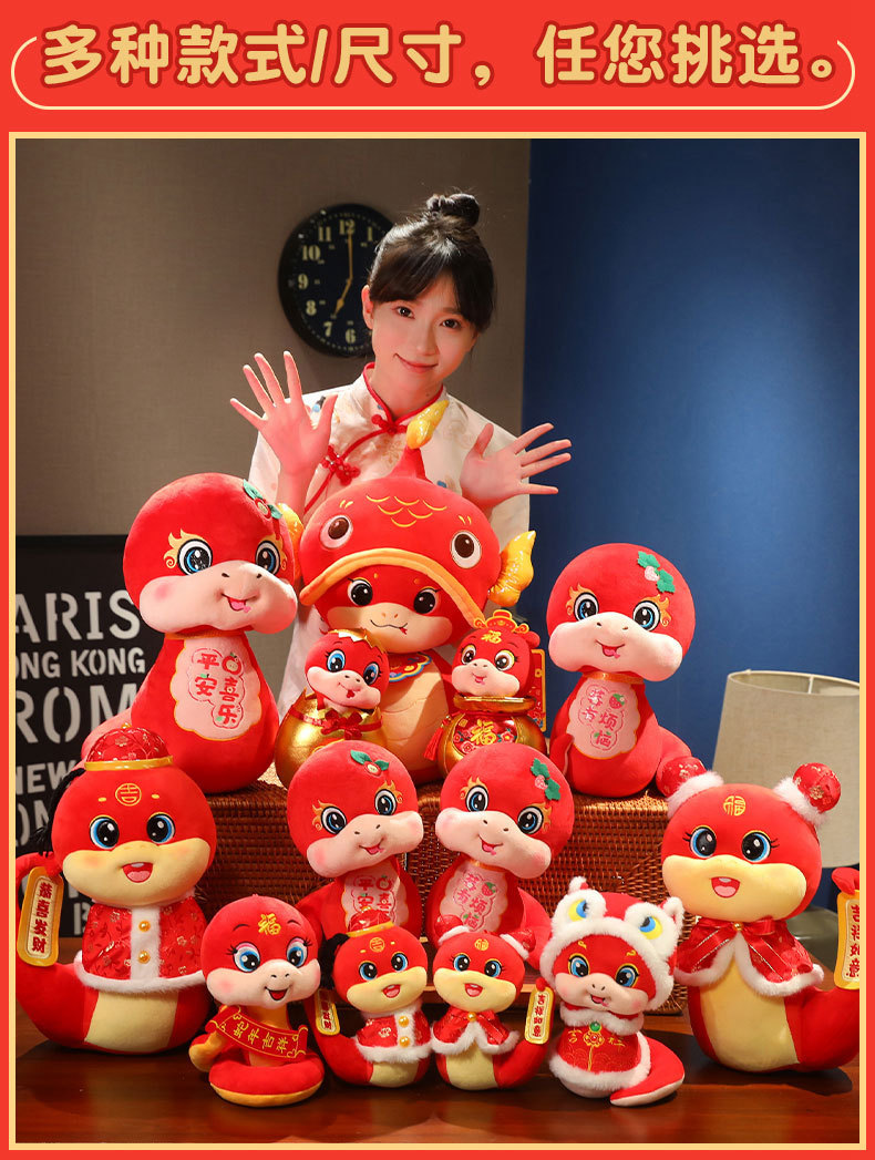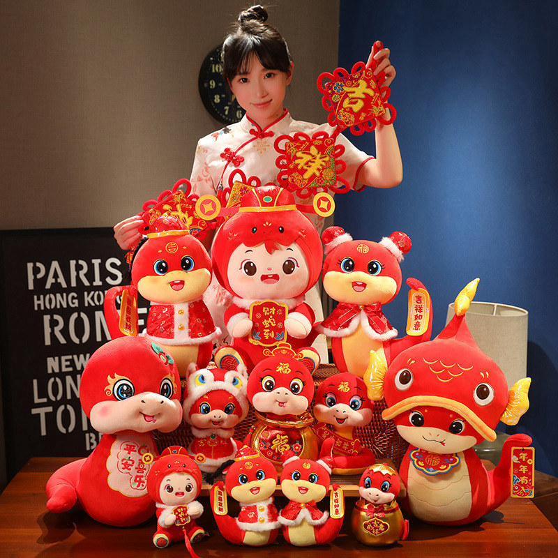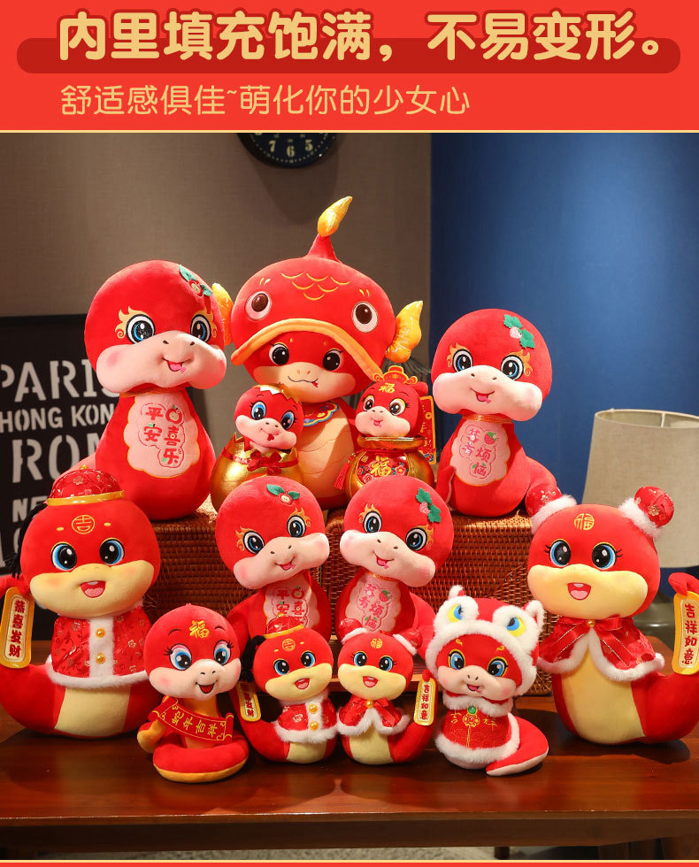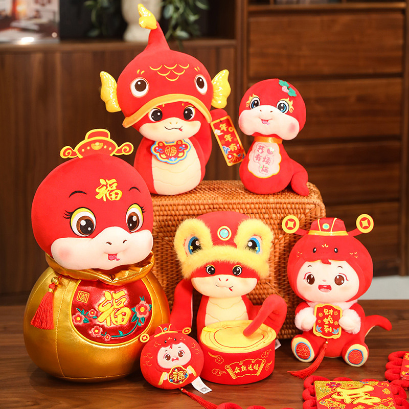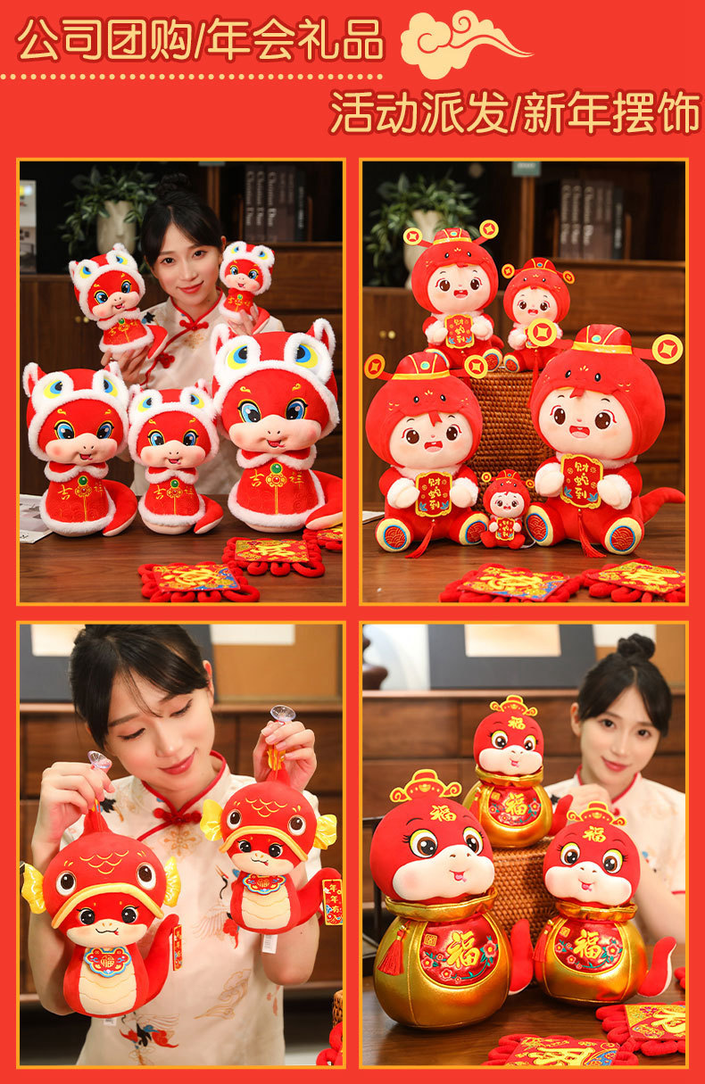 2025红色生肖蛇毛绒玩具蛇年吉祥物挂件挂饰公司年会活动礼品玩偶